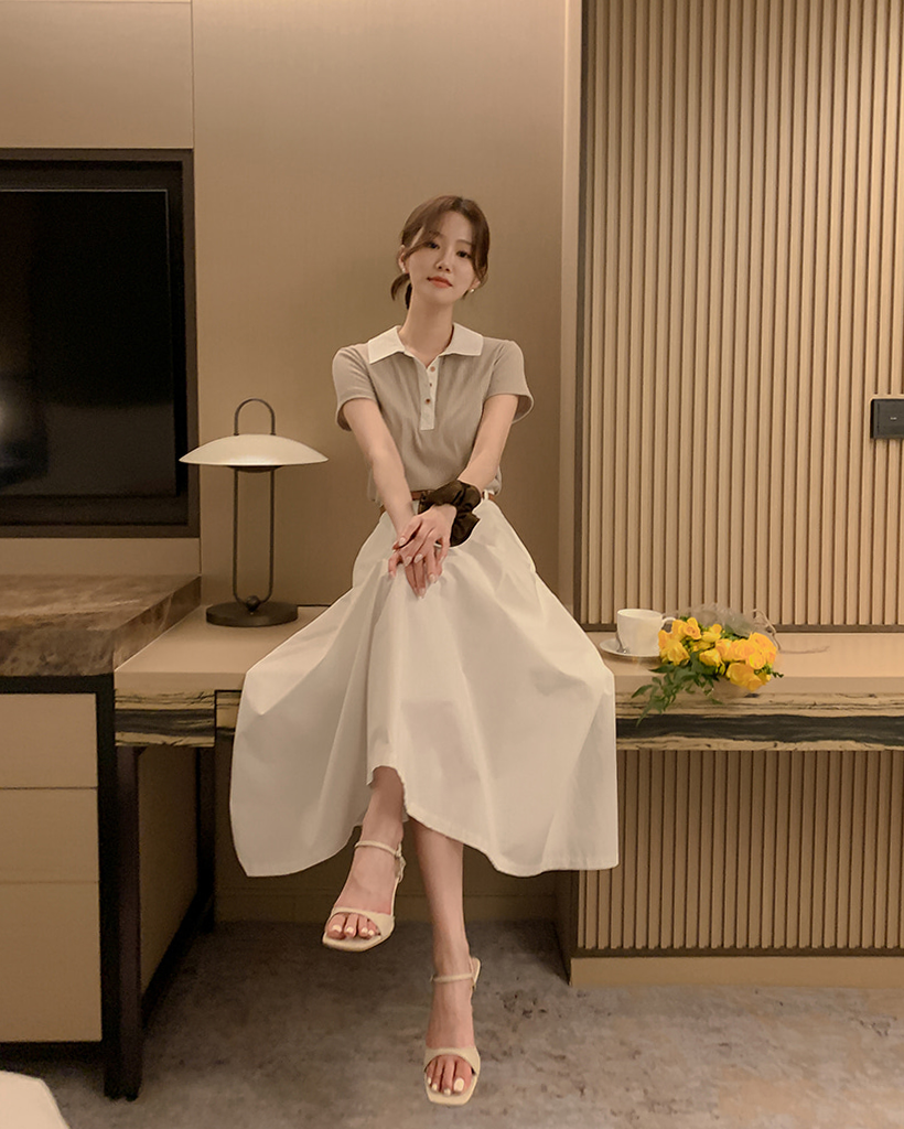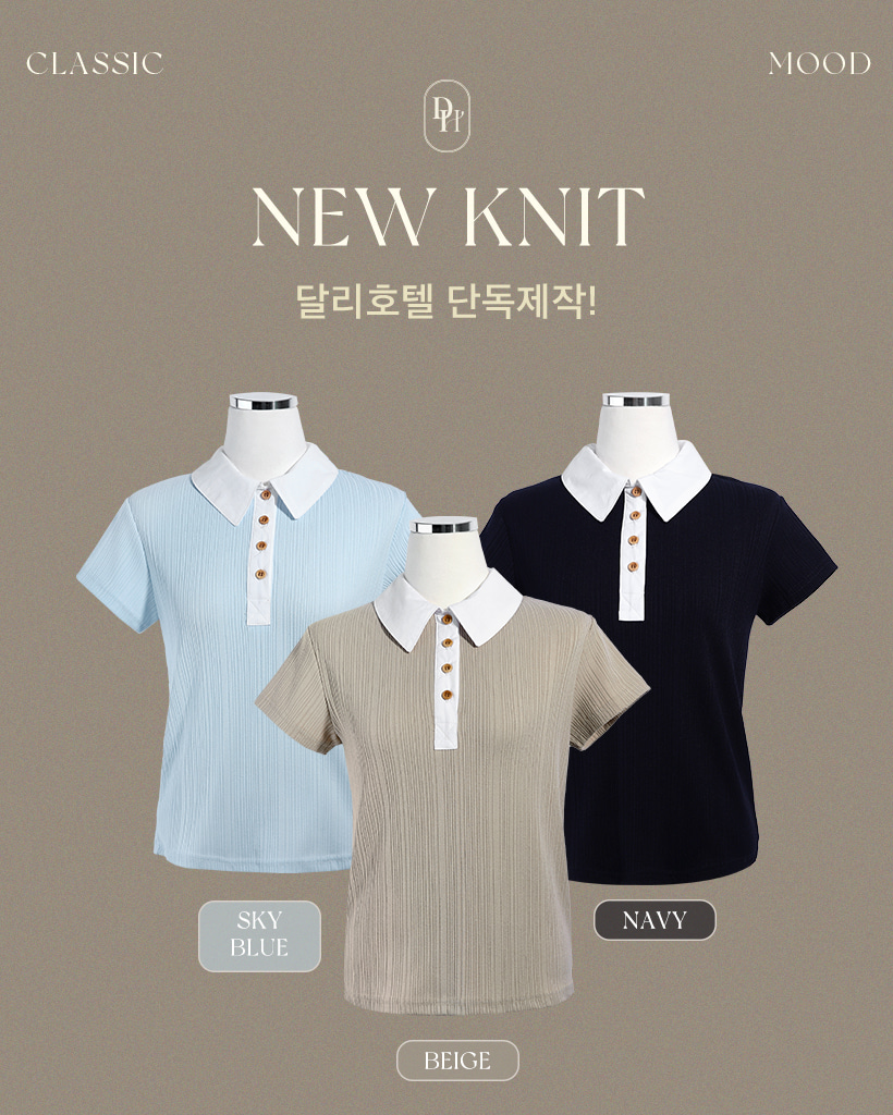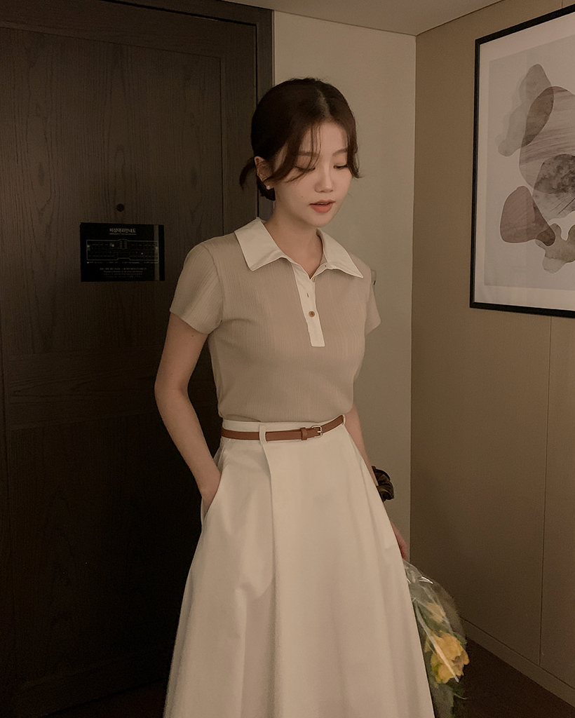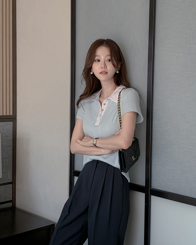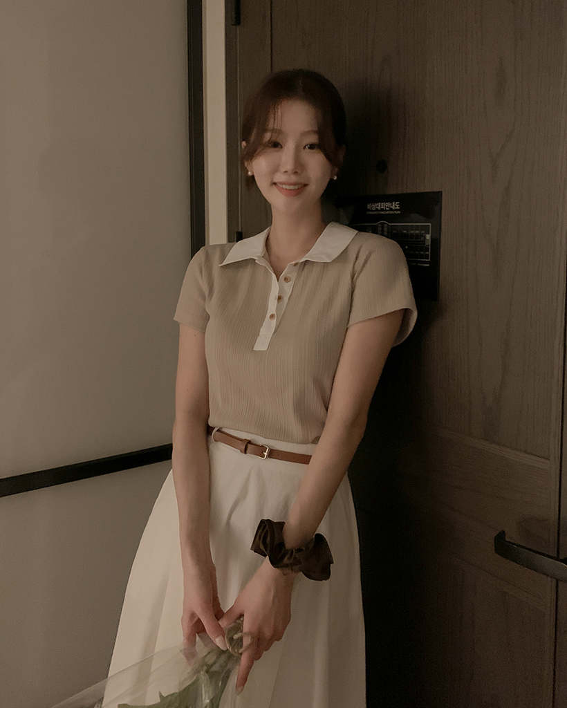 リブ半袖ニットポロシャツ