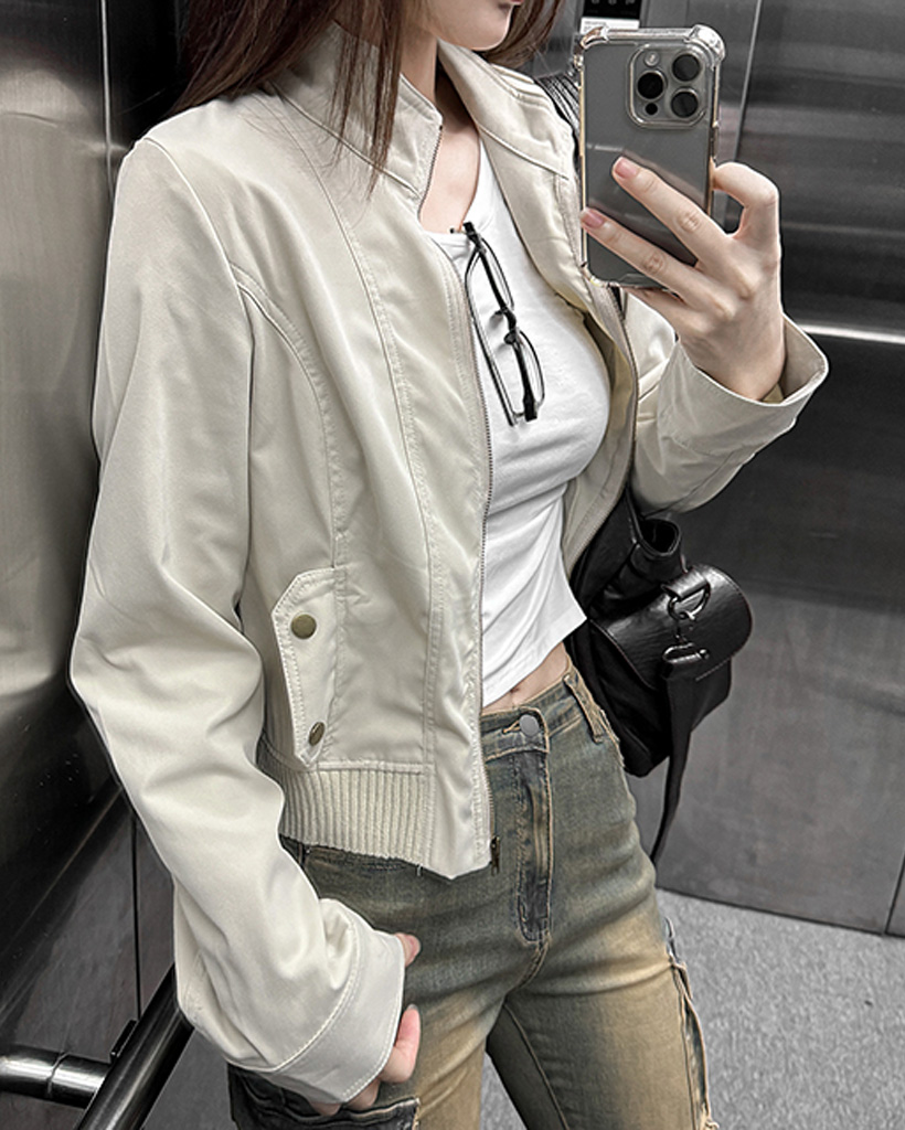 ハイネックスリムフィットスナップボタンジャケット