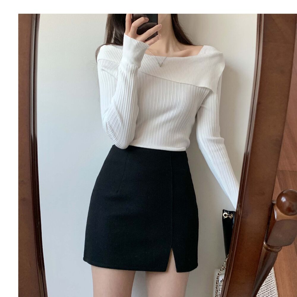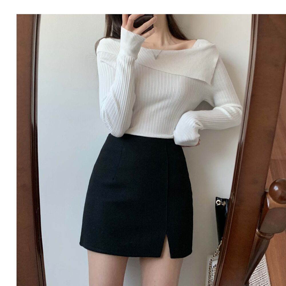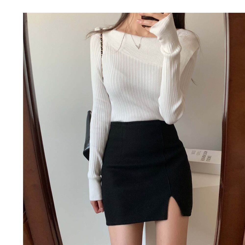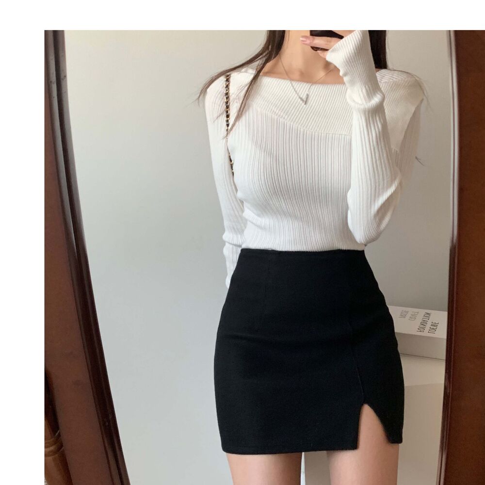 [デートコーデおすすめ] ハイウエストスリットミニスカート
