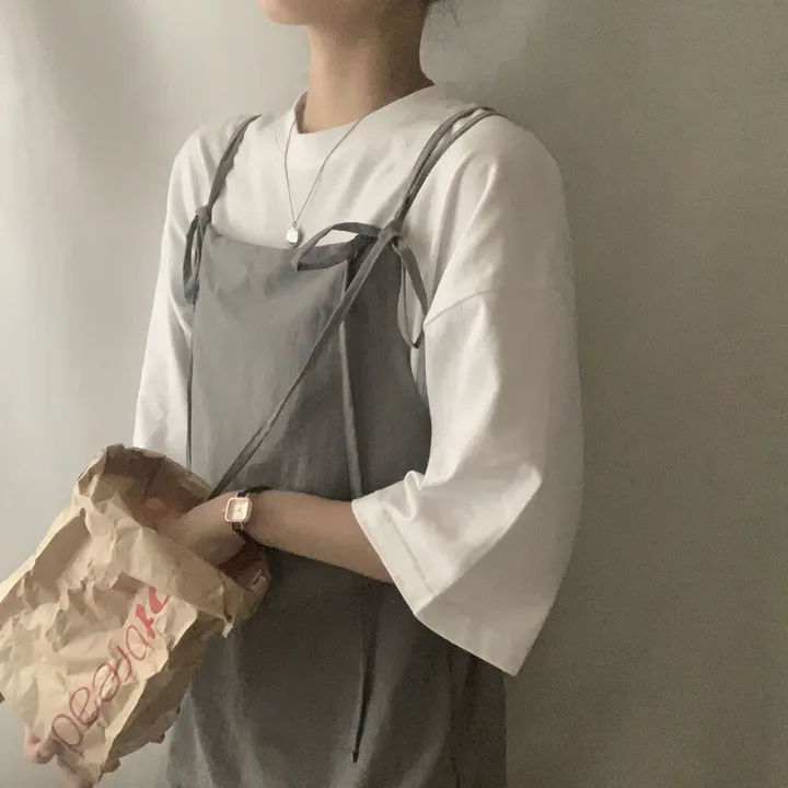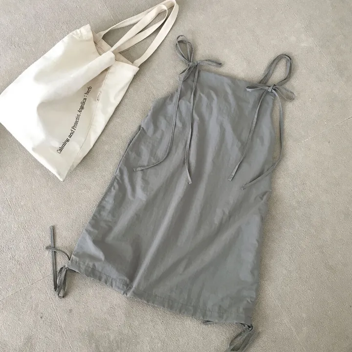 レイヤードナイロンシャーリングリボンビスチェミニワンピース