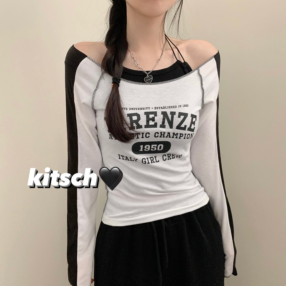 y2kラグランバイカラーボートネック長袖Tシャツ(5color)