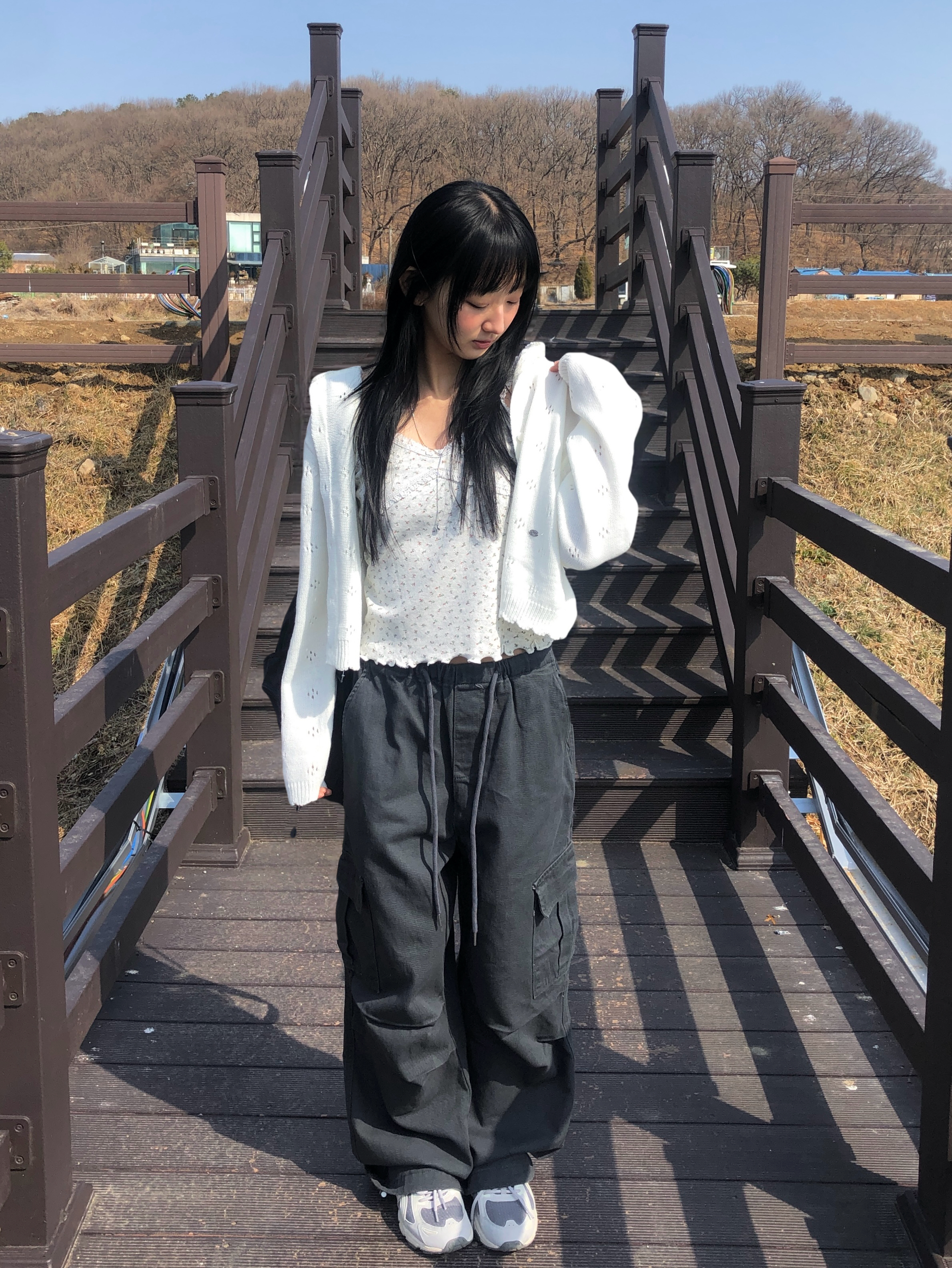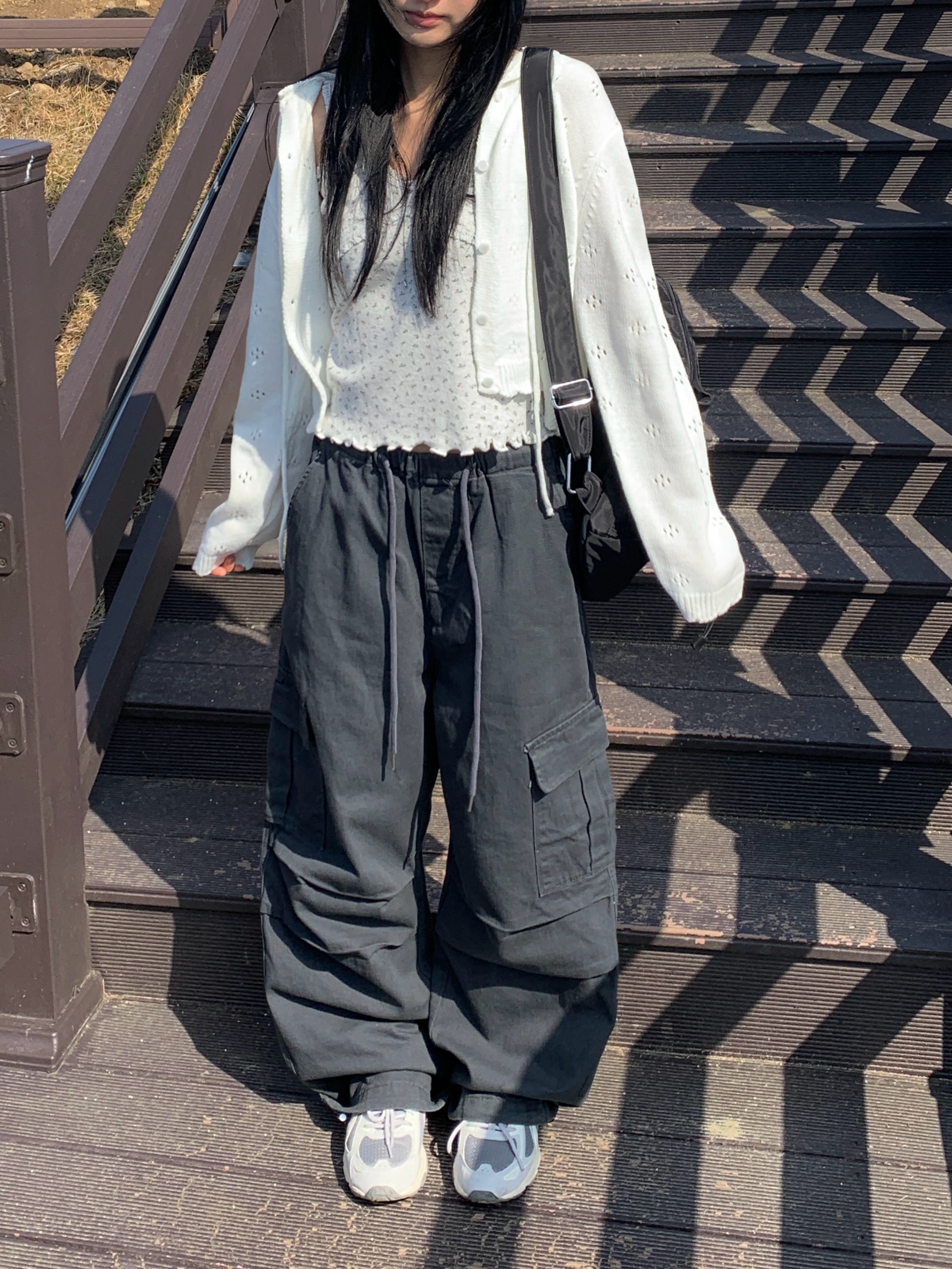 ウエストゴムダーツカーゴストレートワイドパンツ