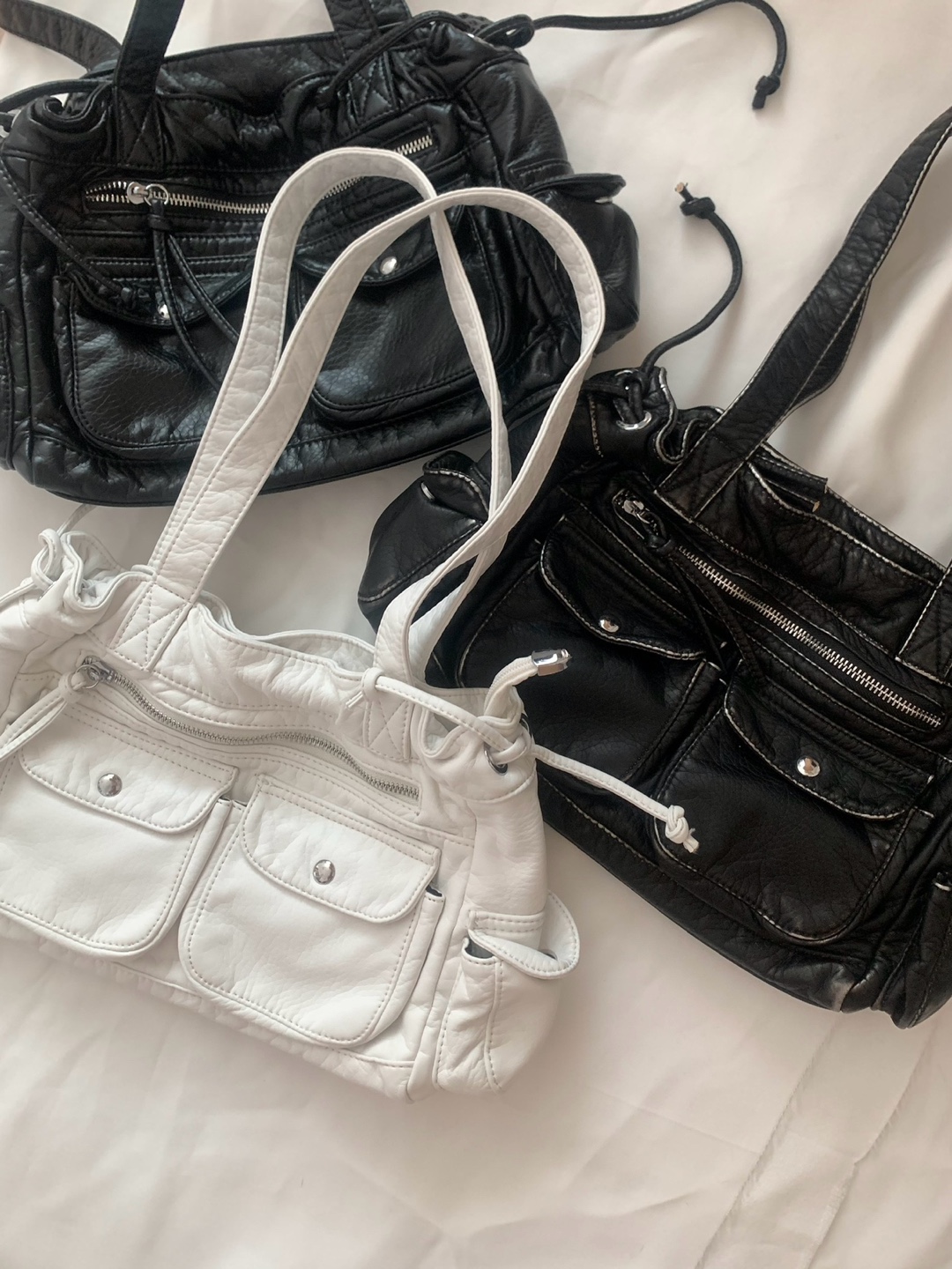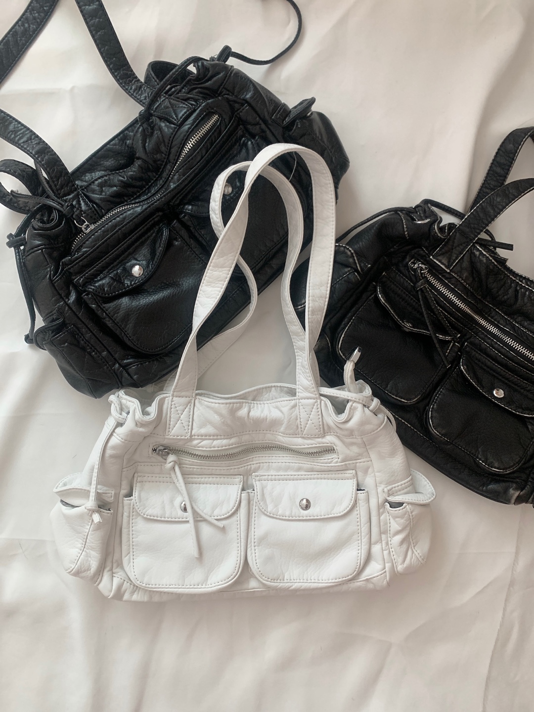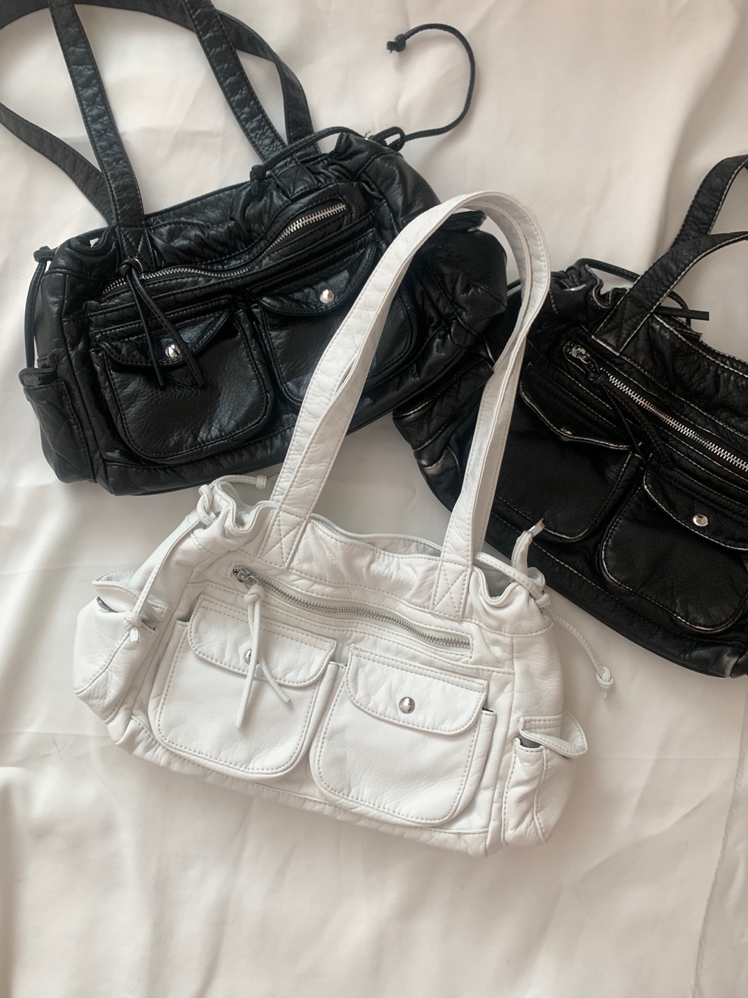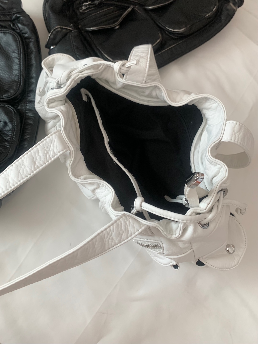 ダブルジップアップポケットレザーストリングショルダーバッグ