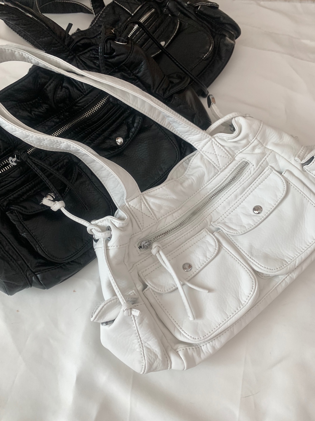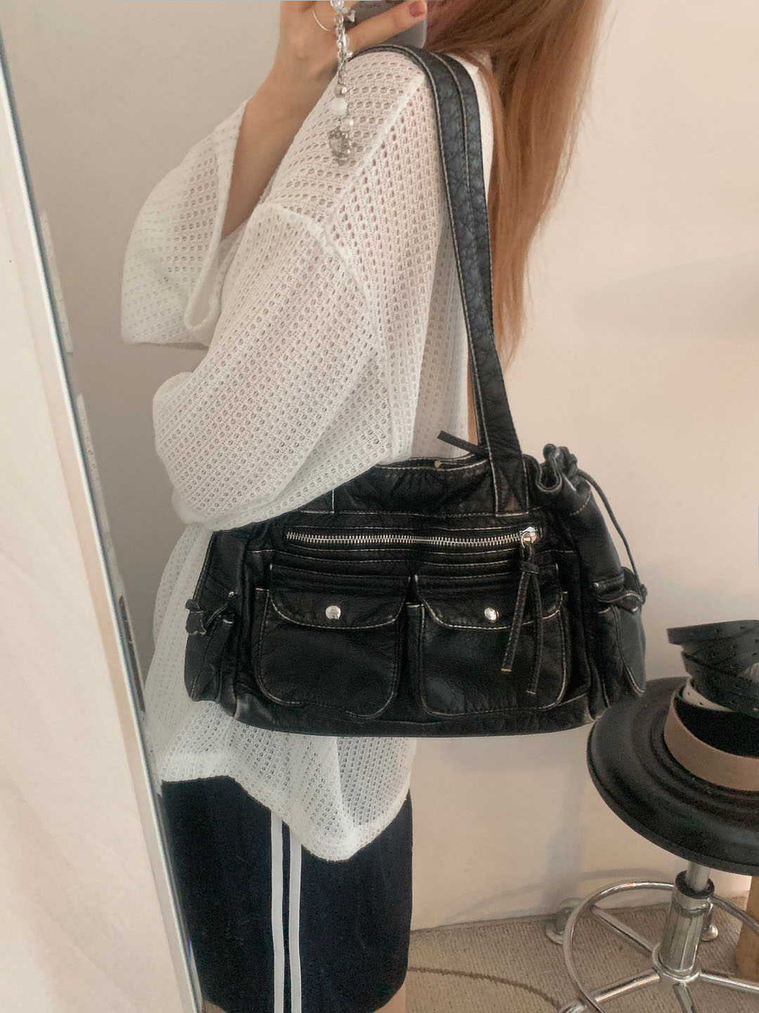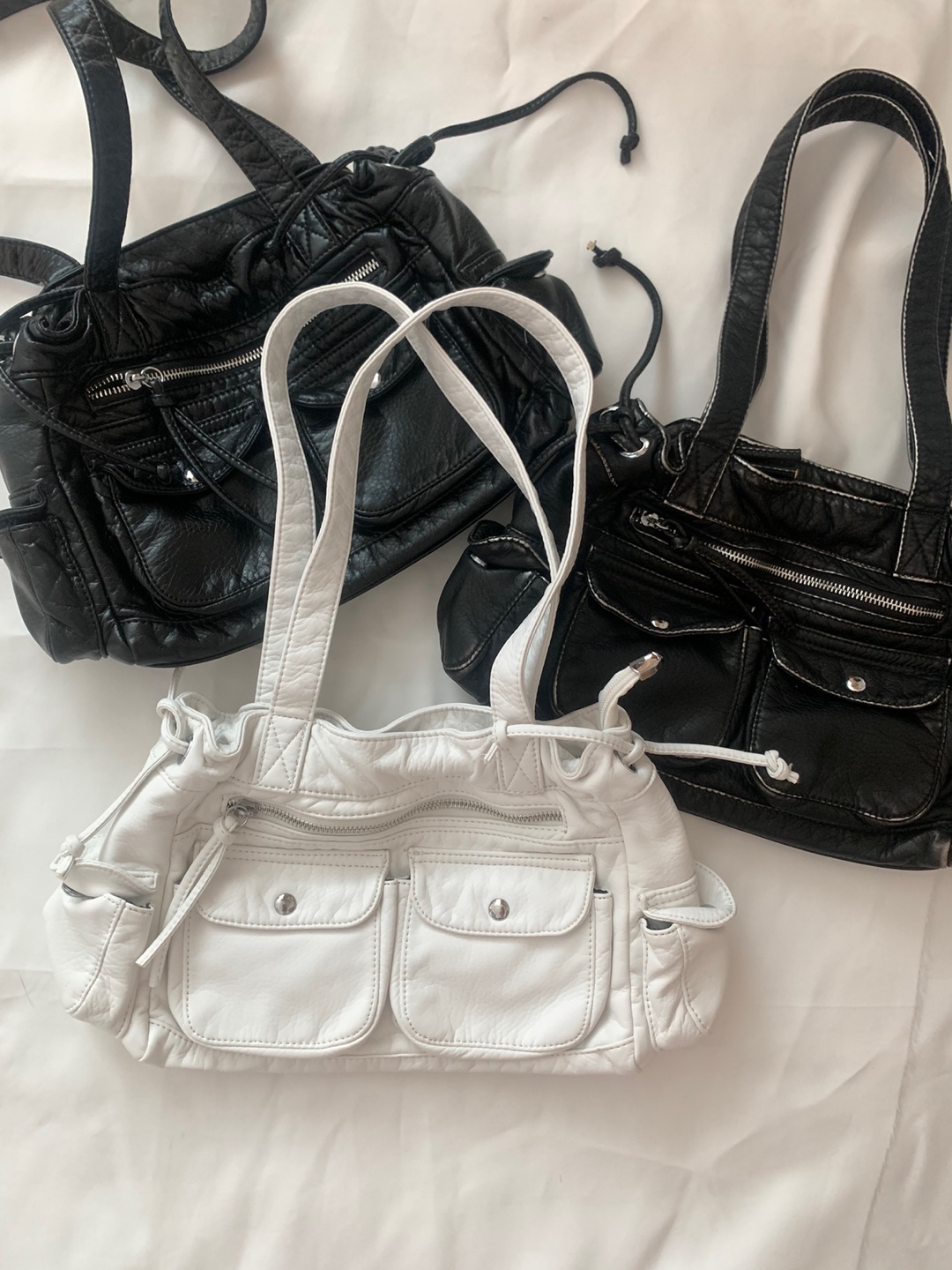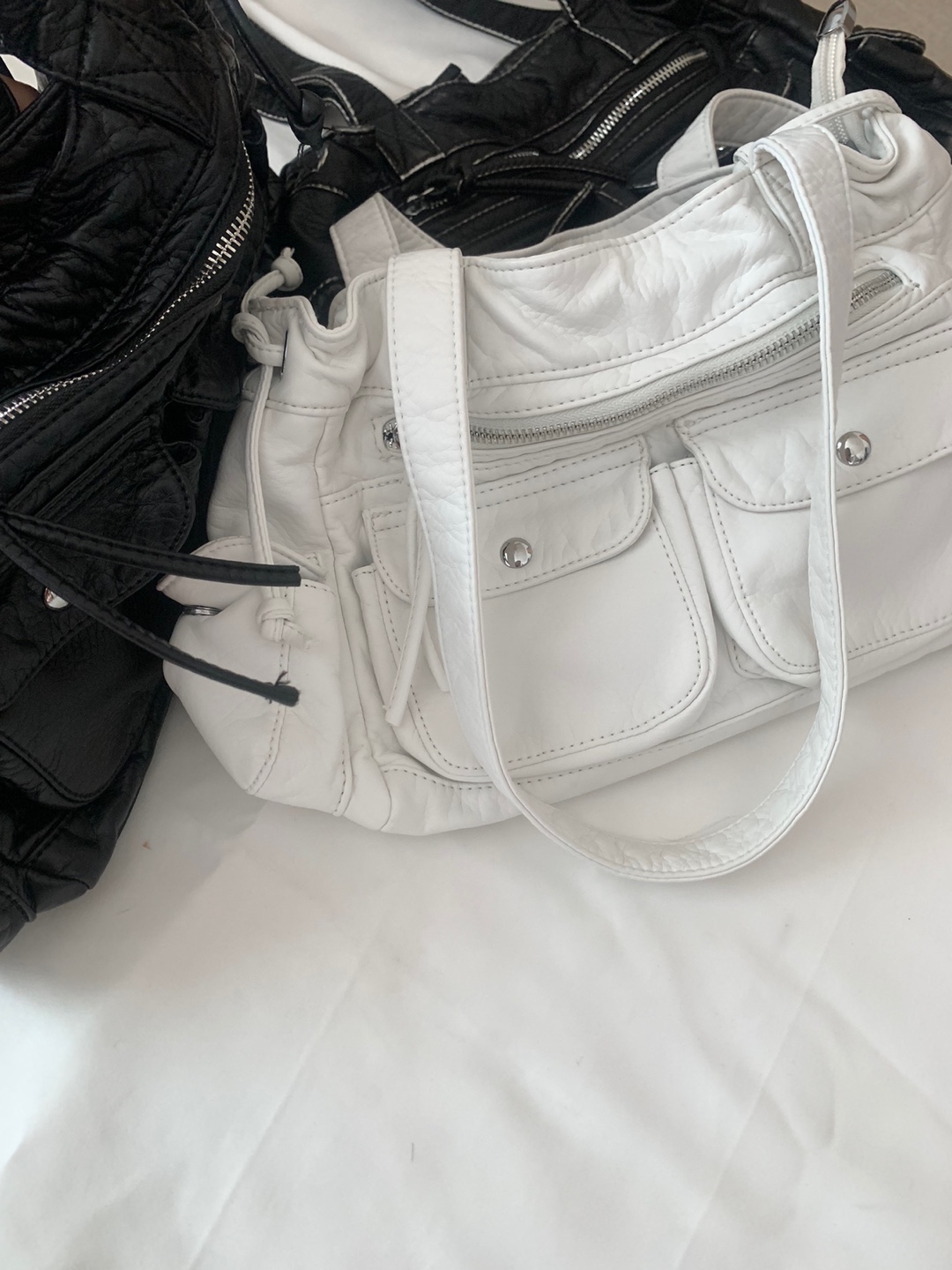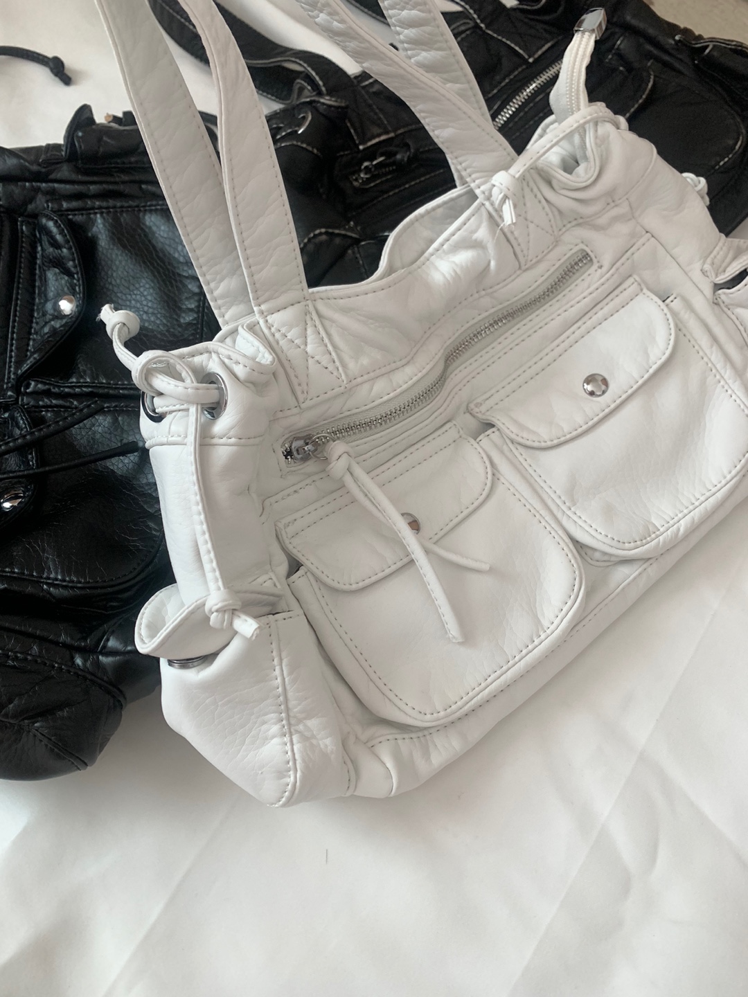 ダブルジップアップポケットレザーストリングショルダーバッグ