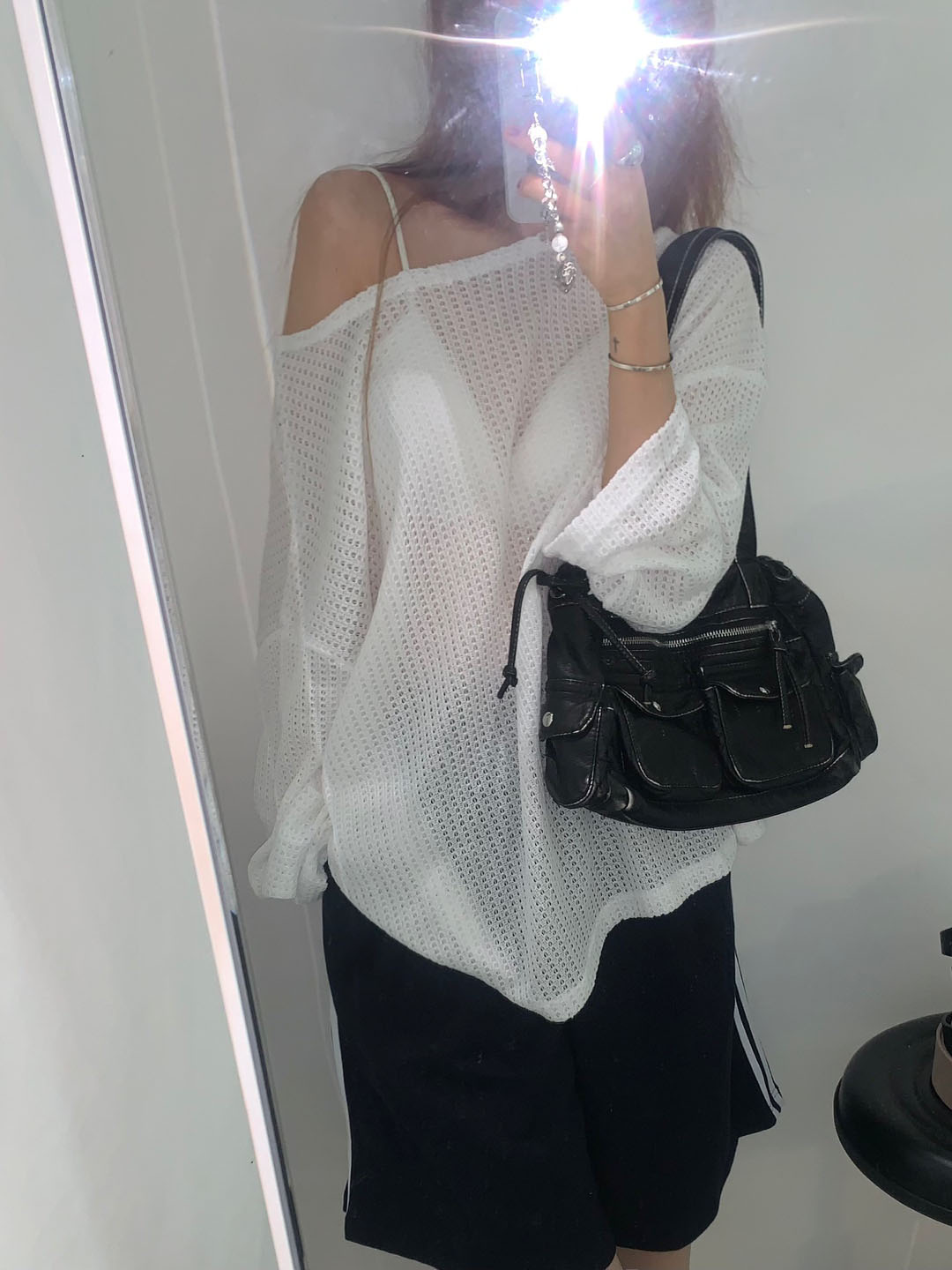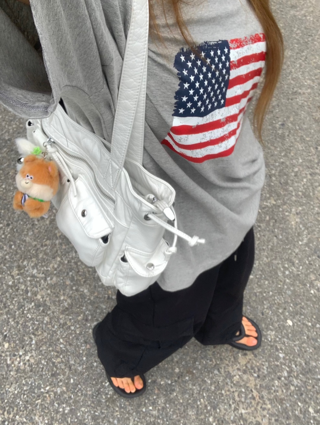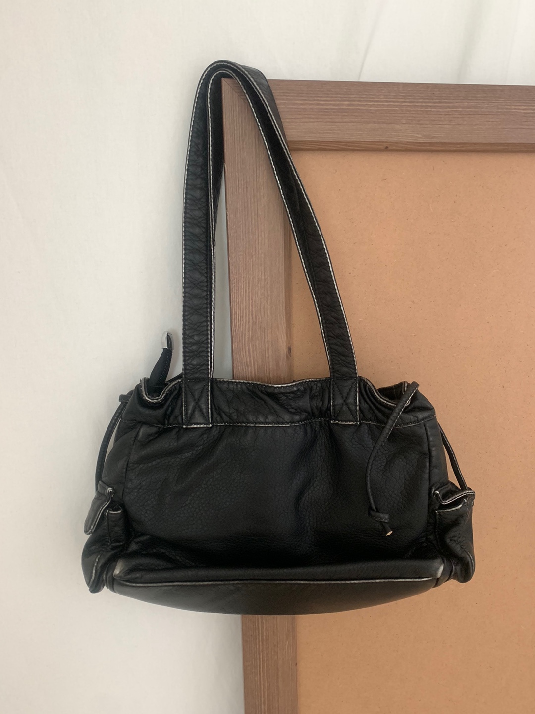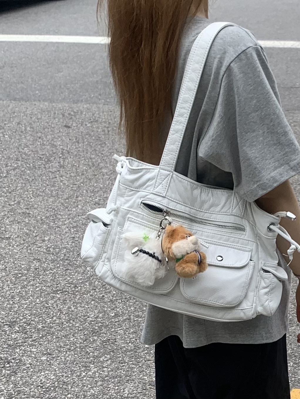 ダブルジップアップポケットレザーストリングショルダーバッグ