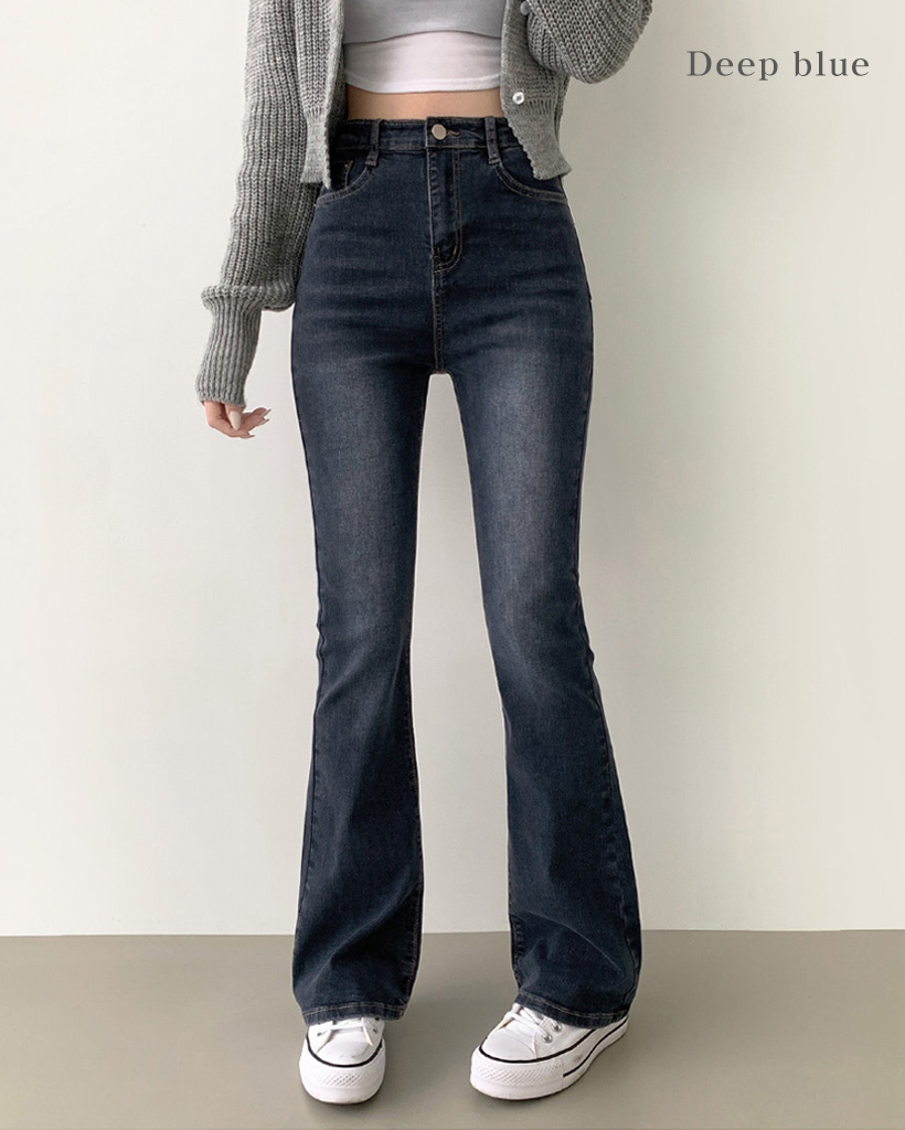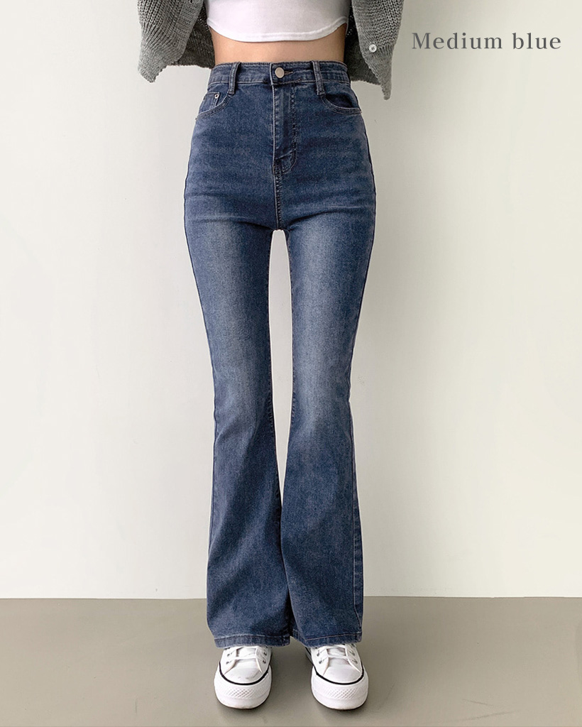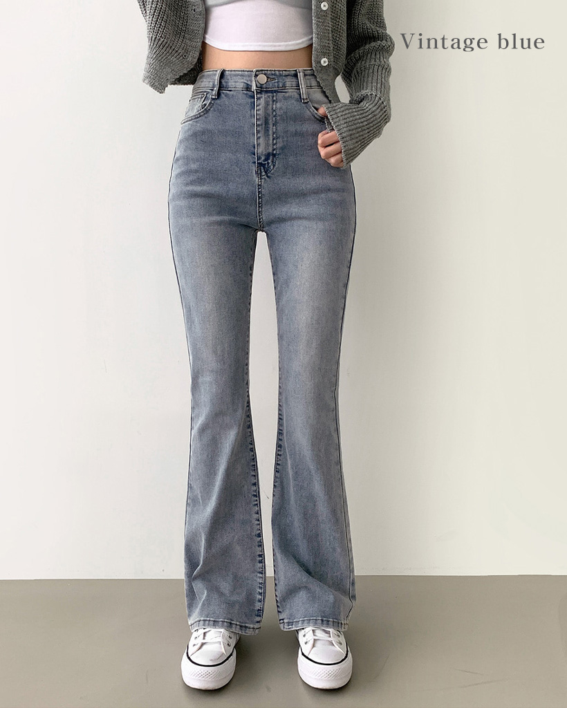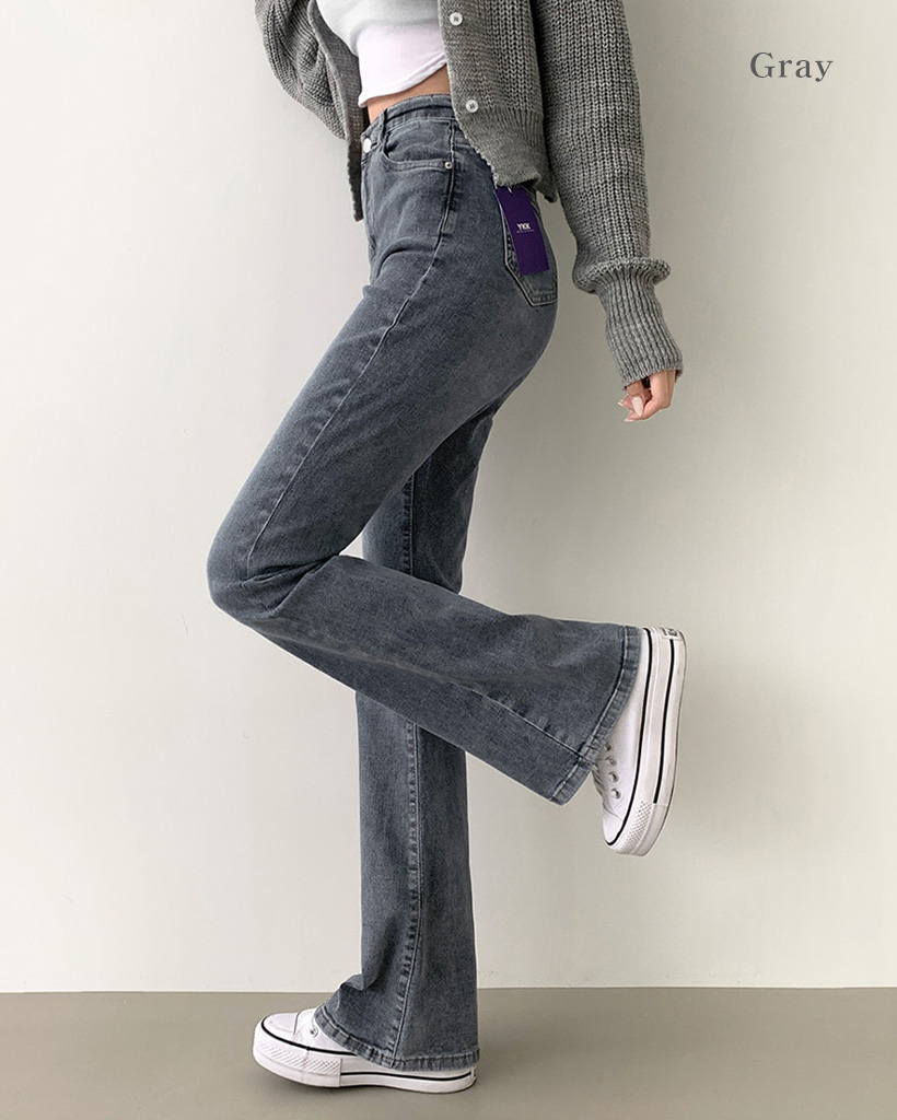 [選べる着丈] ゴムブーツカットデニムパンツ