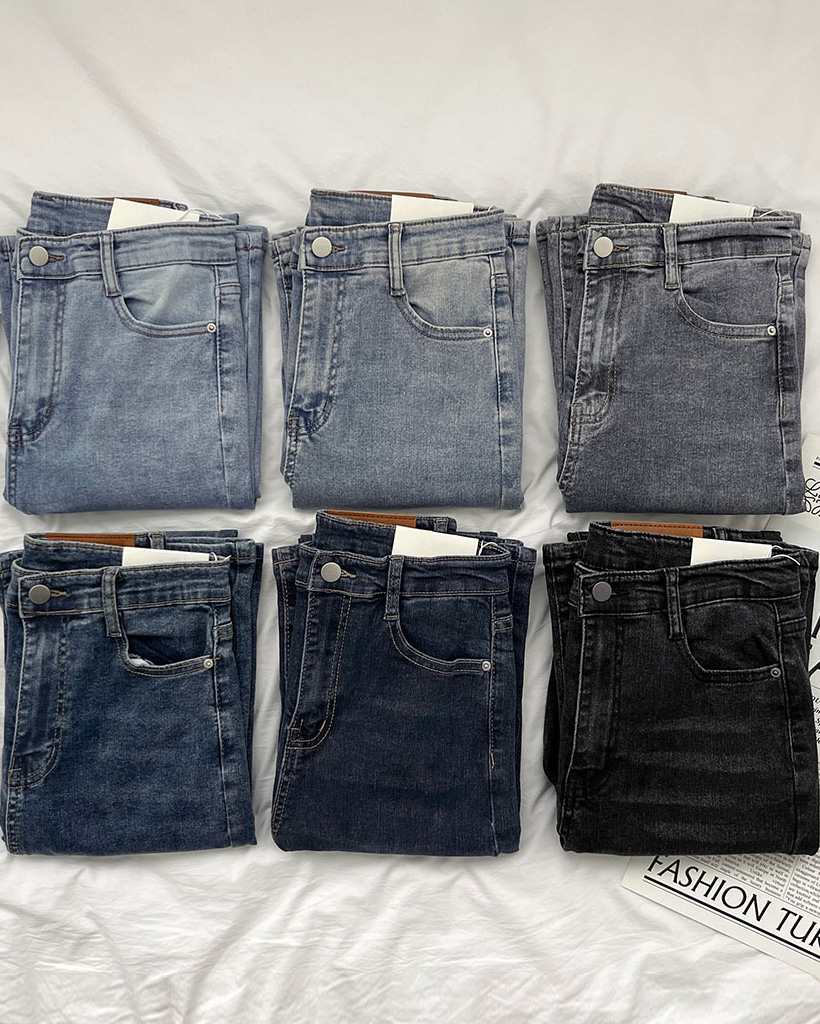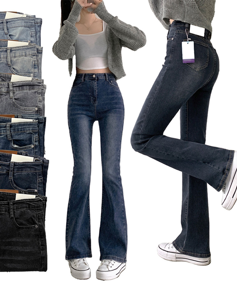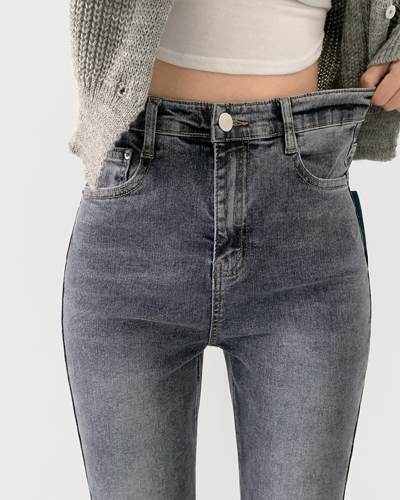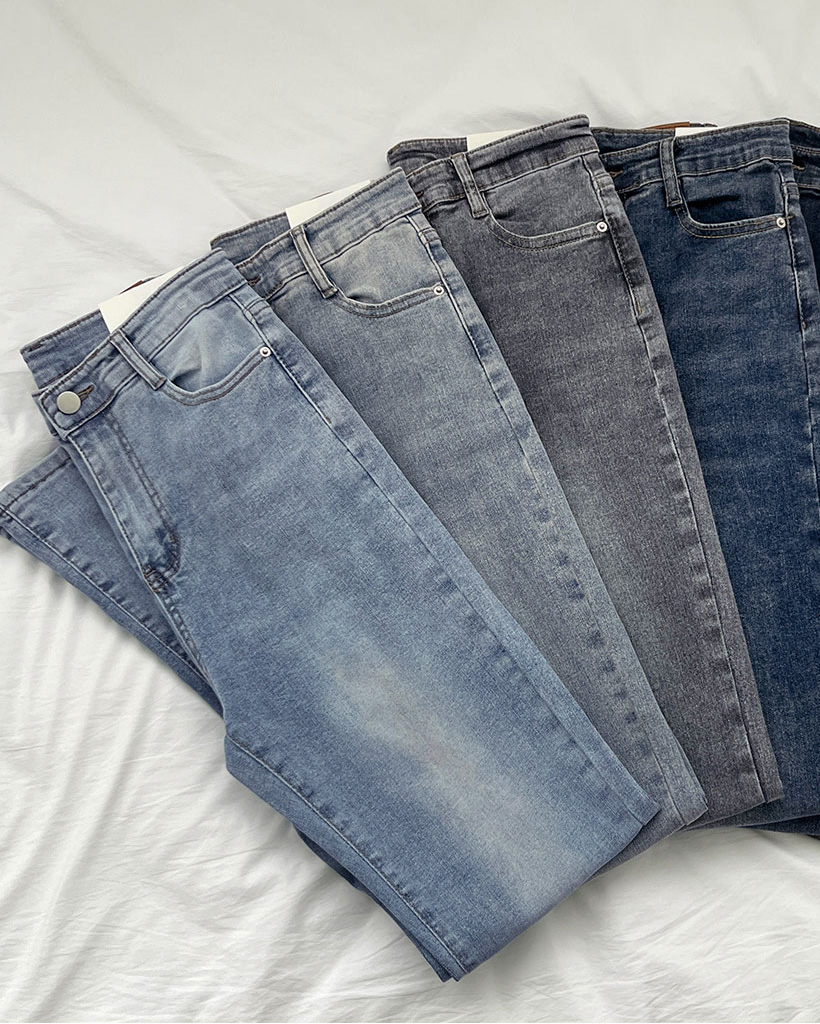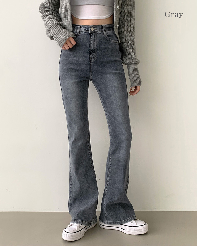 [選べる着丈] ゴムブーツカットデニムパンツ