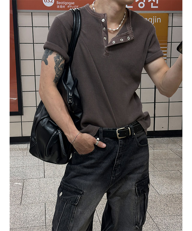 [S/S] Pigment crop muscle henry neck t-shirts(4color)