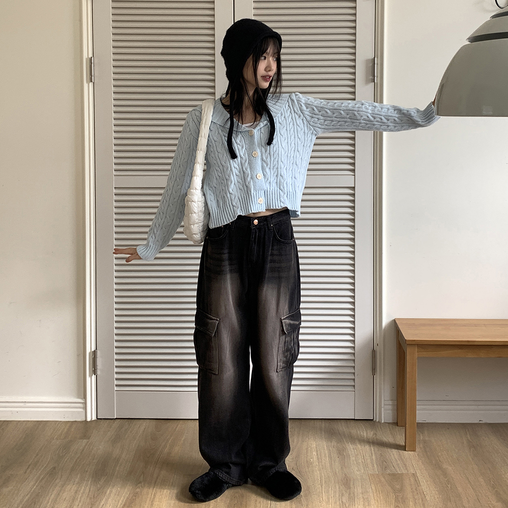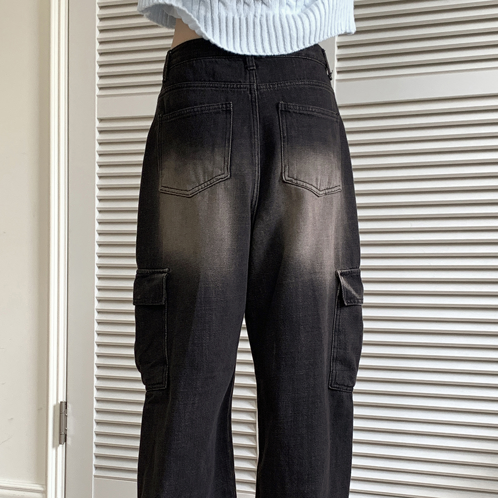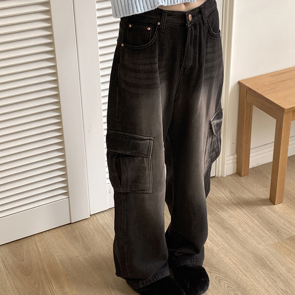 ブラウンウォッシュワイドカーゴデニムパンツ