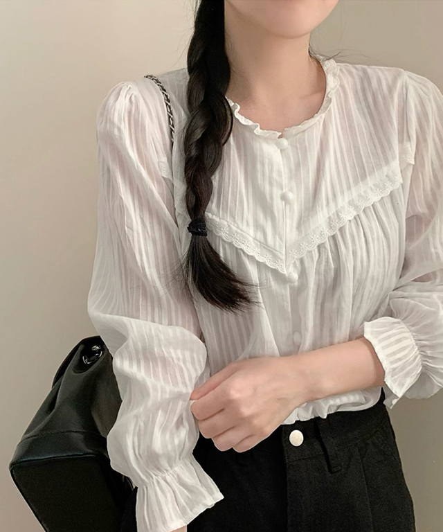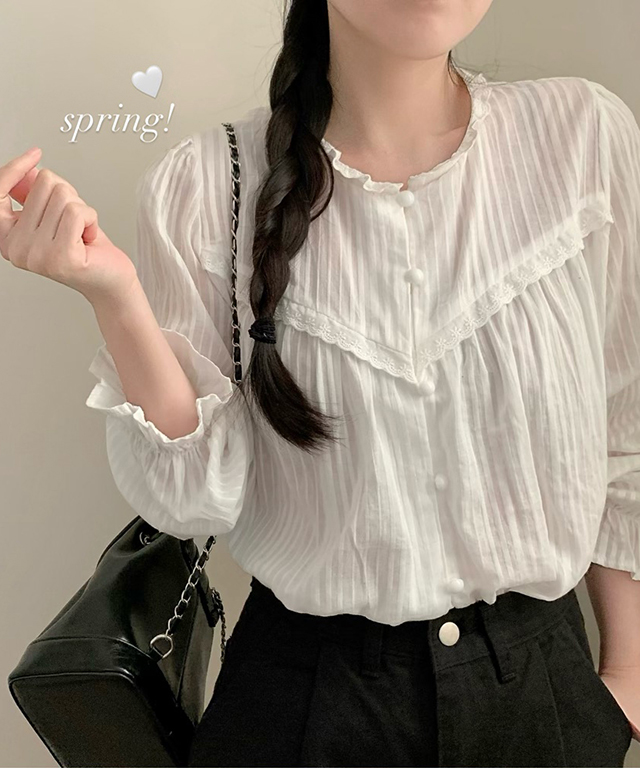 レースクルーネックブラウス