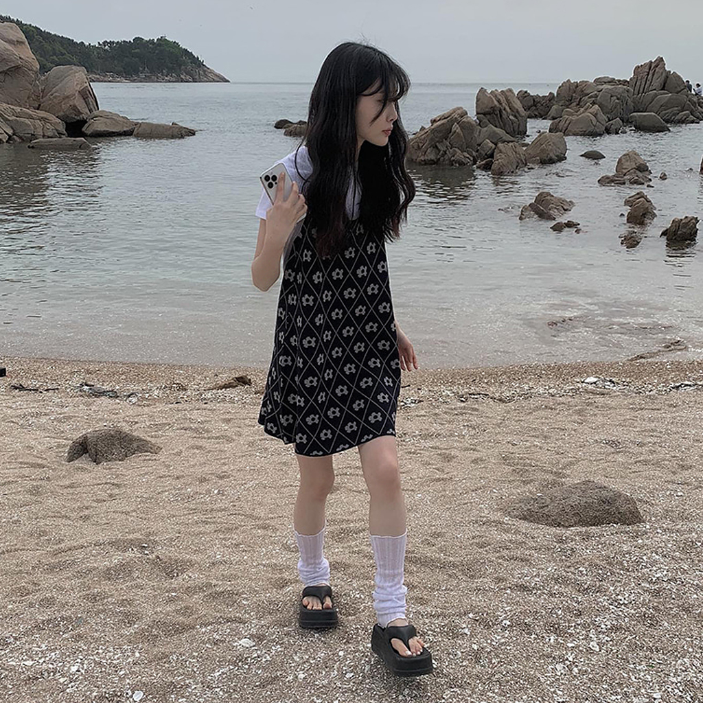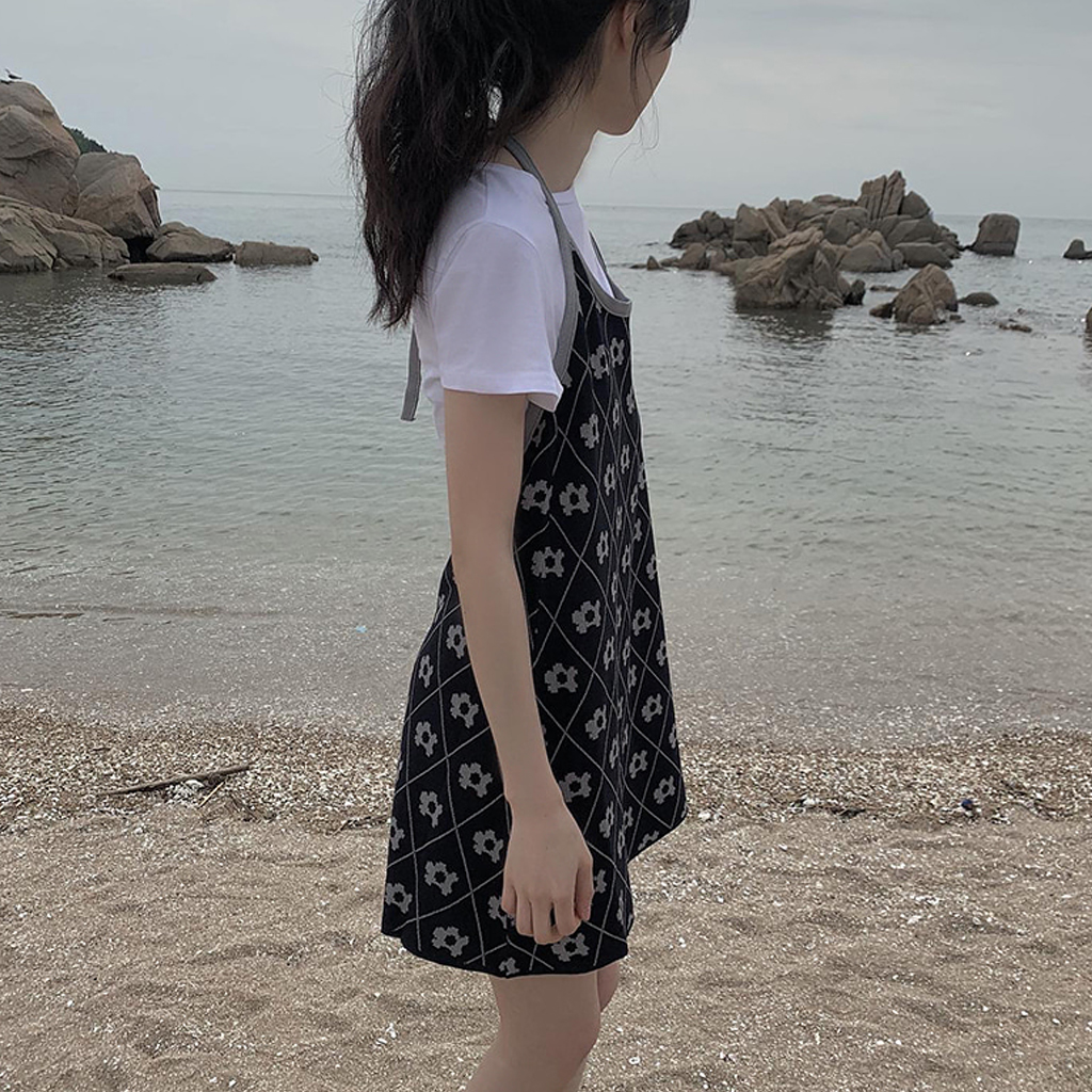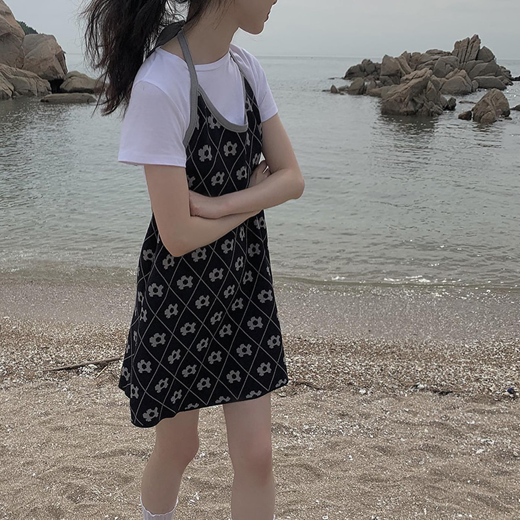 [original]デージー柄バックスリットホルターキャミミニワンピース
