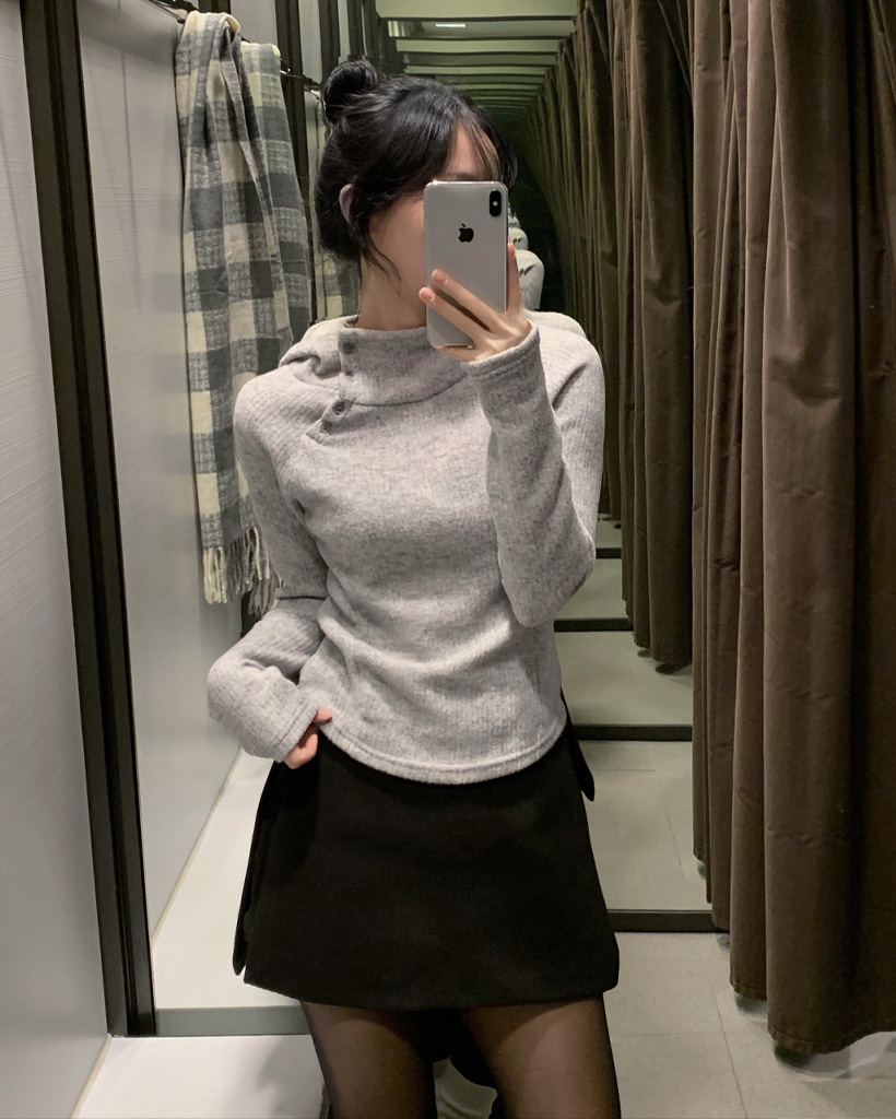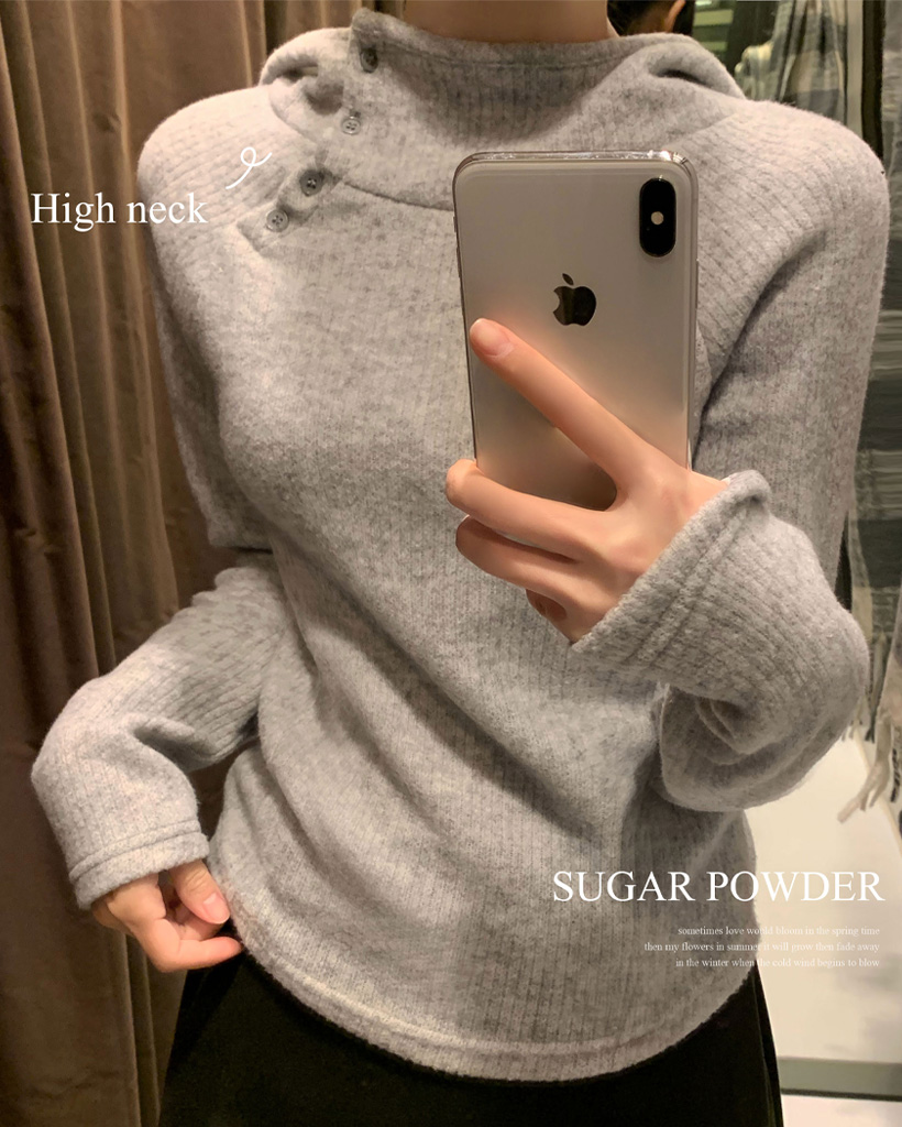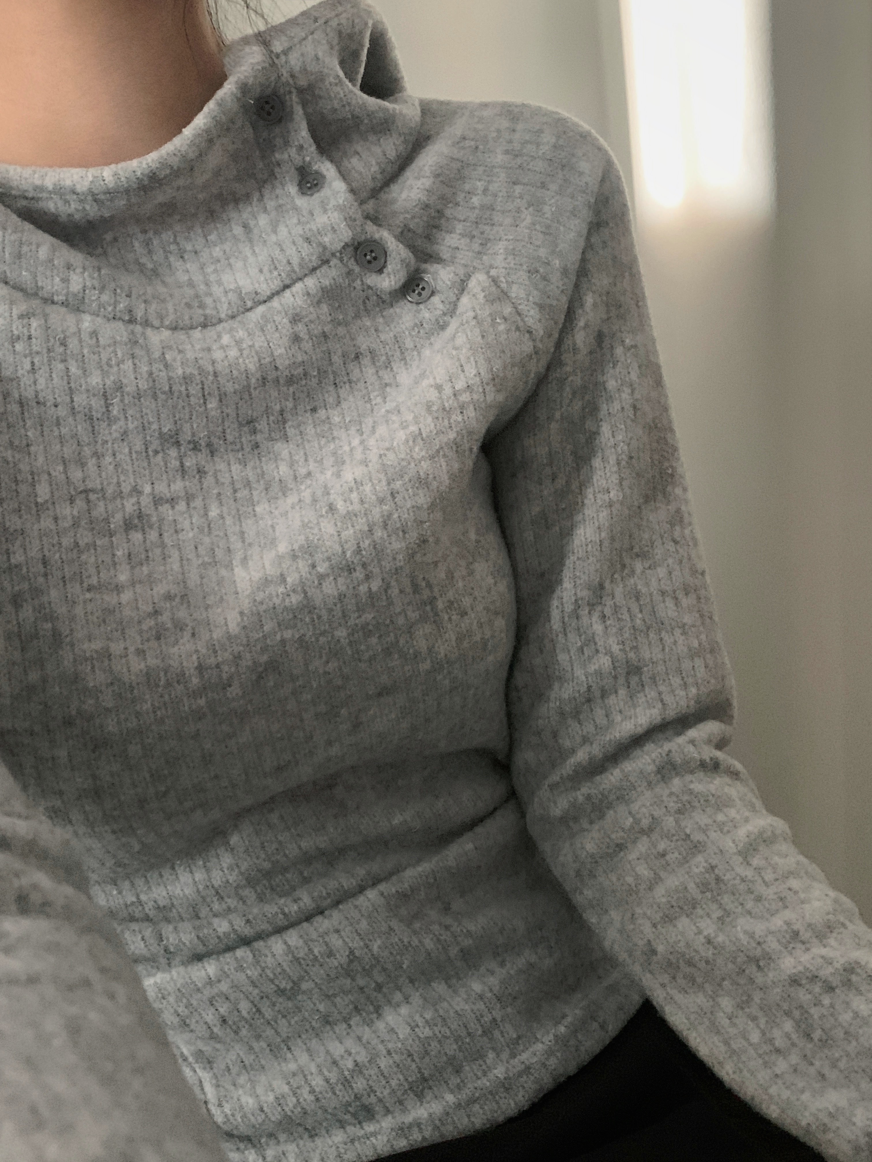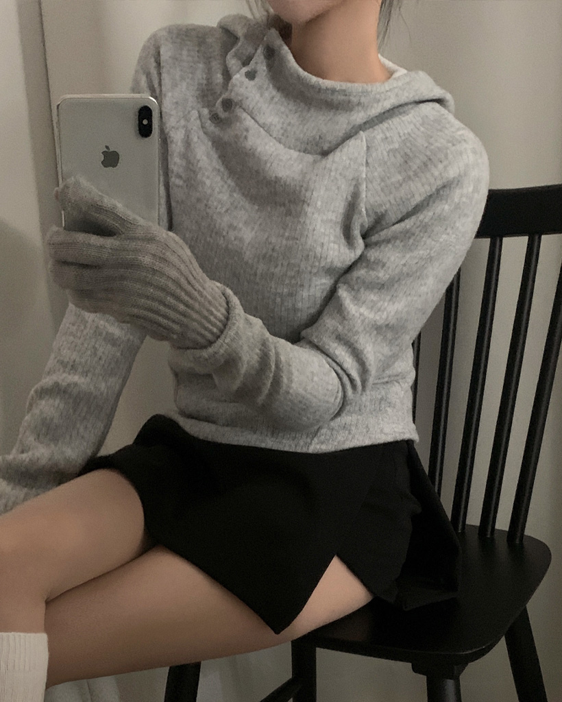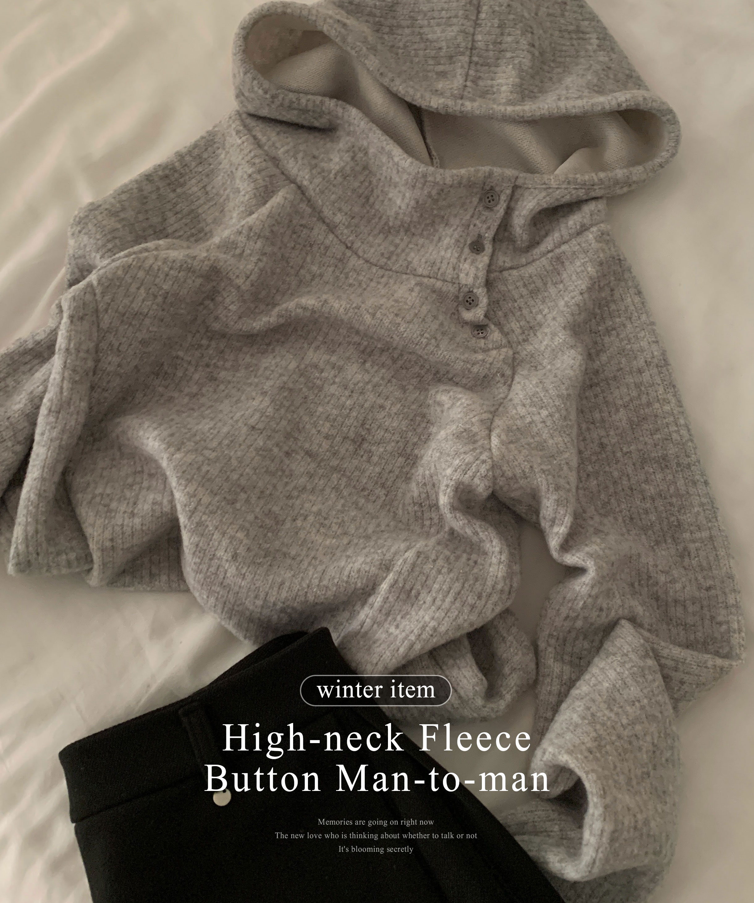 (3 color) ボタン付き リブ フリース パーカー
