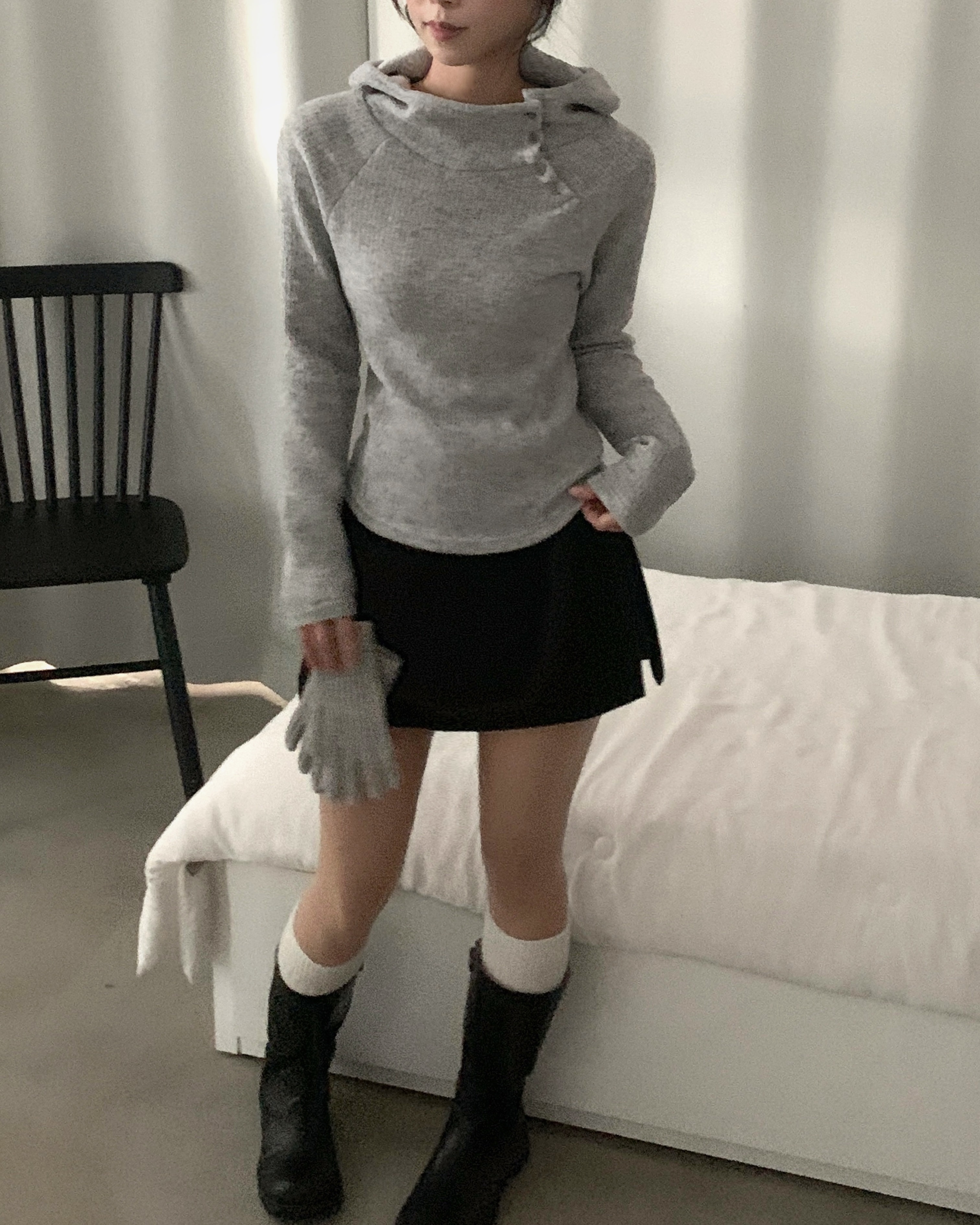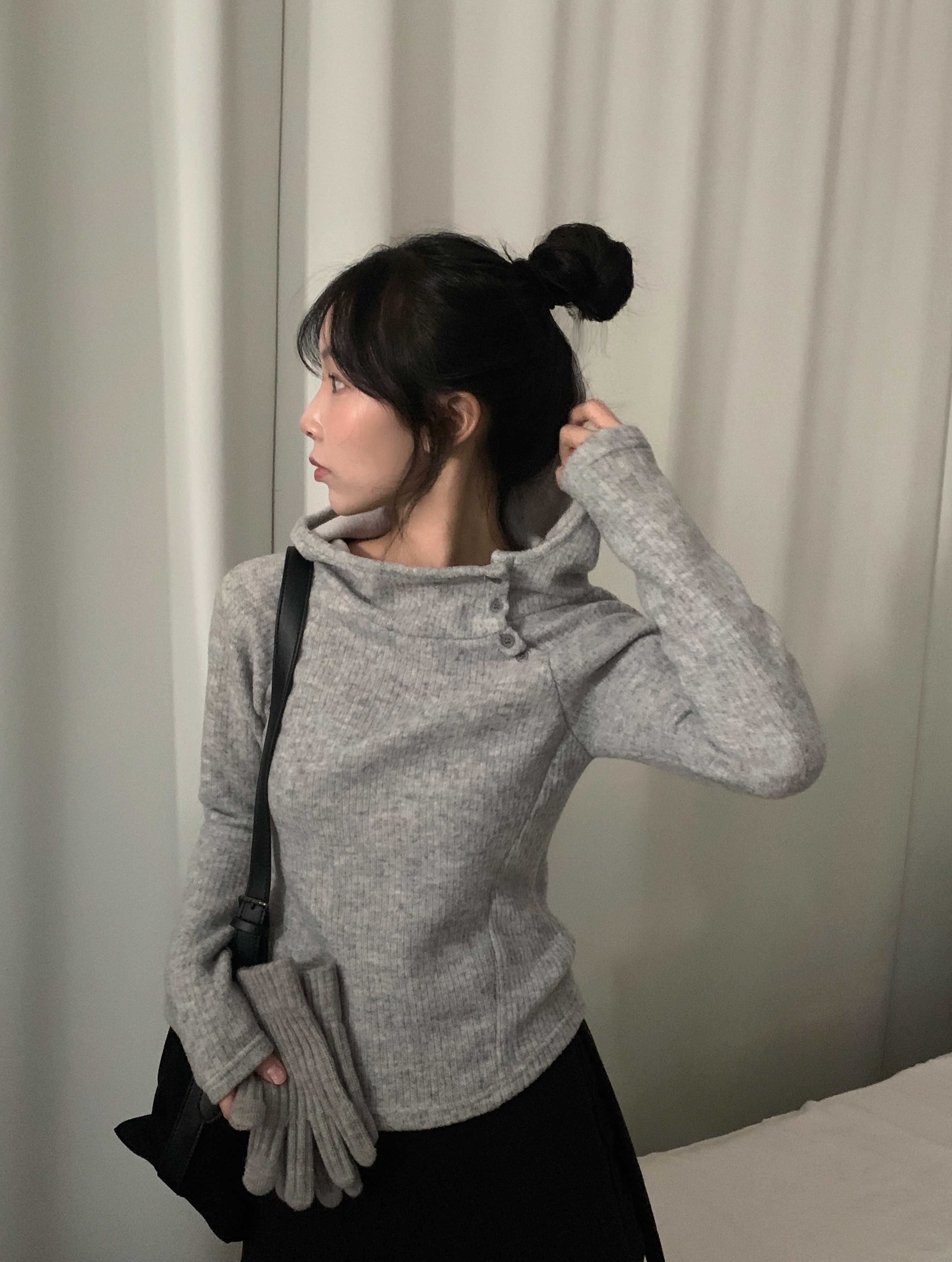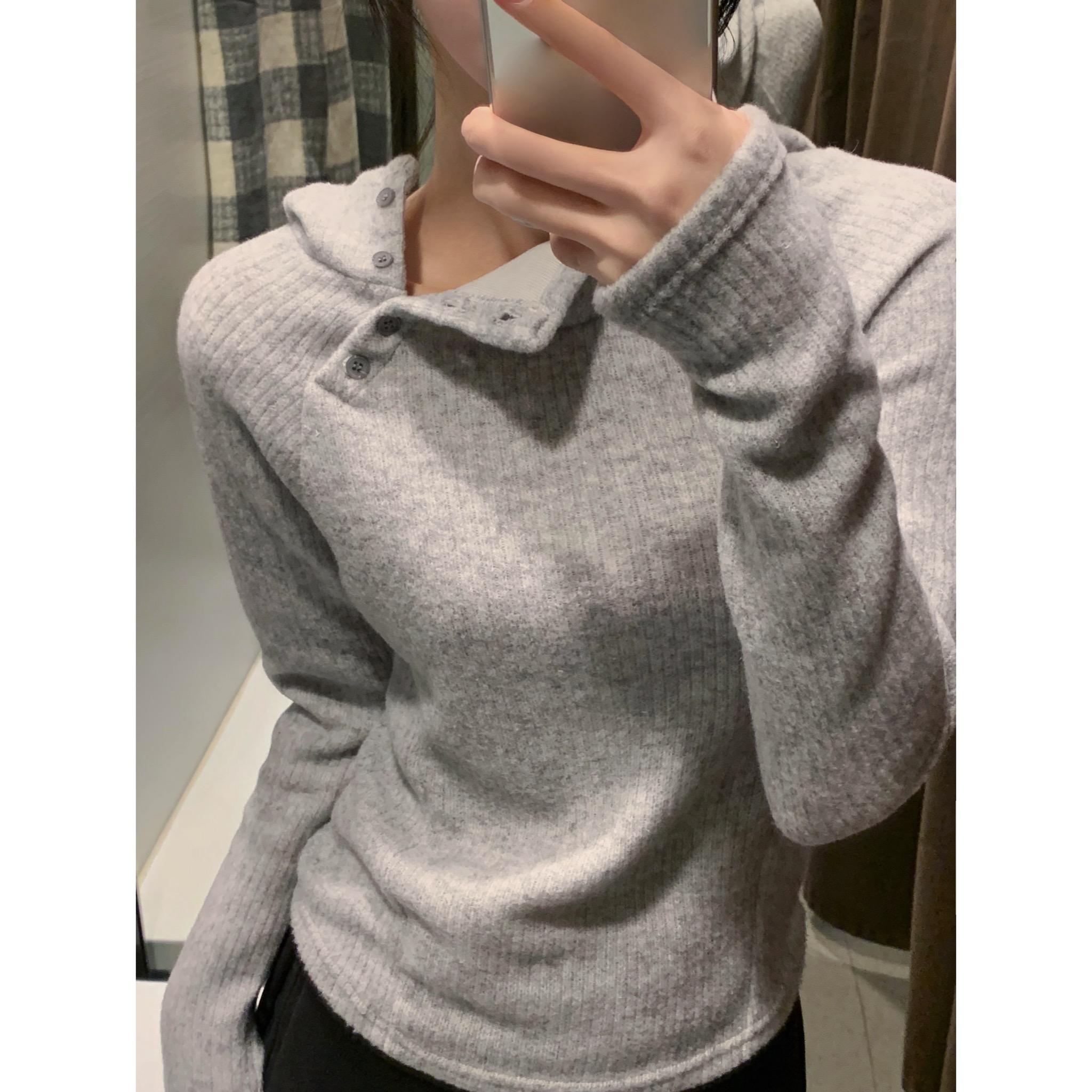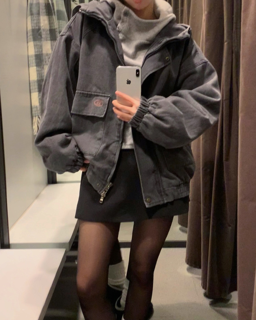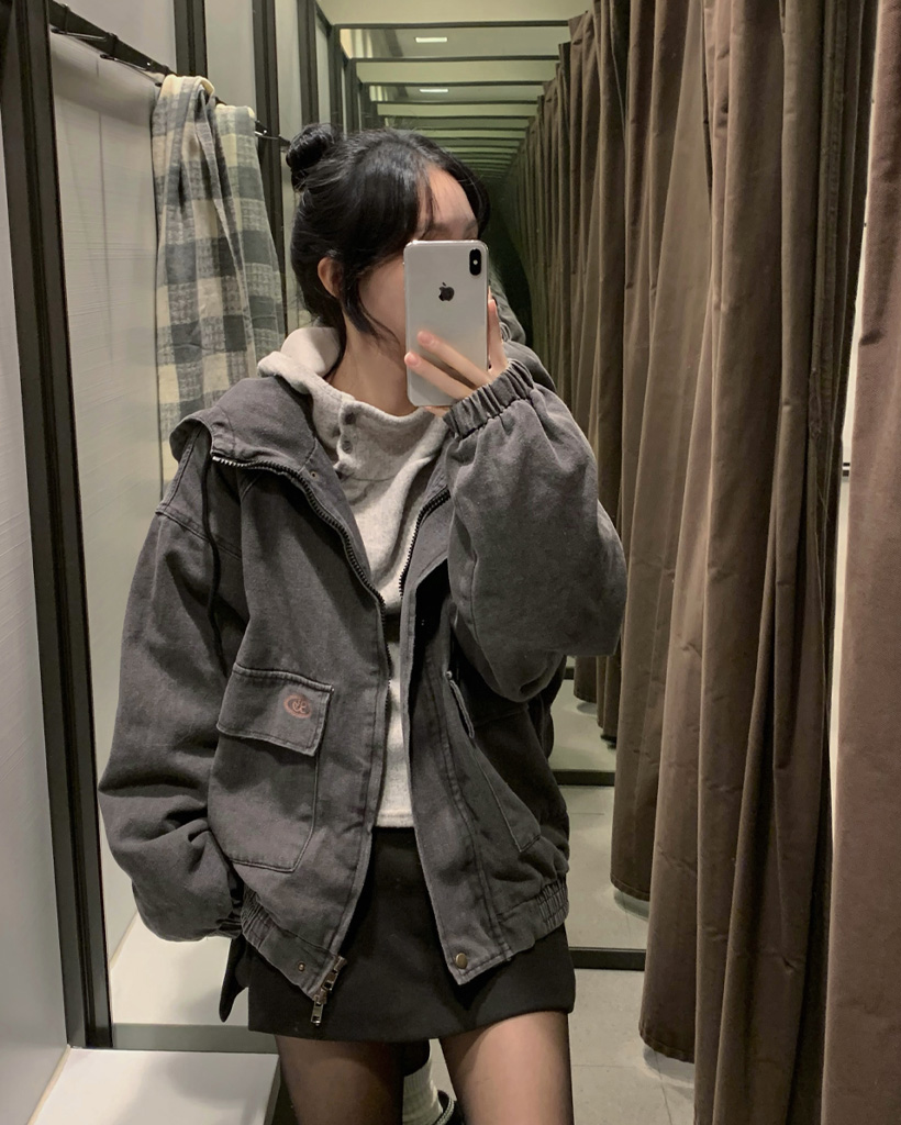 (3 color) ボタン付き リブ フリース パーカー