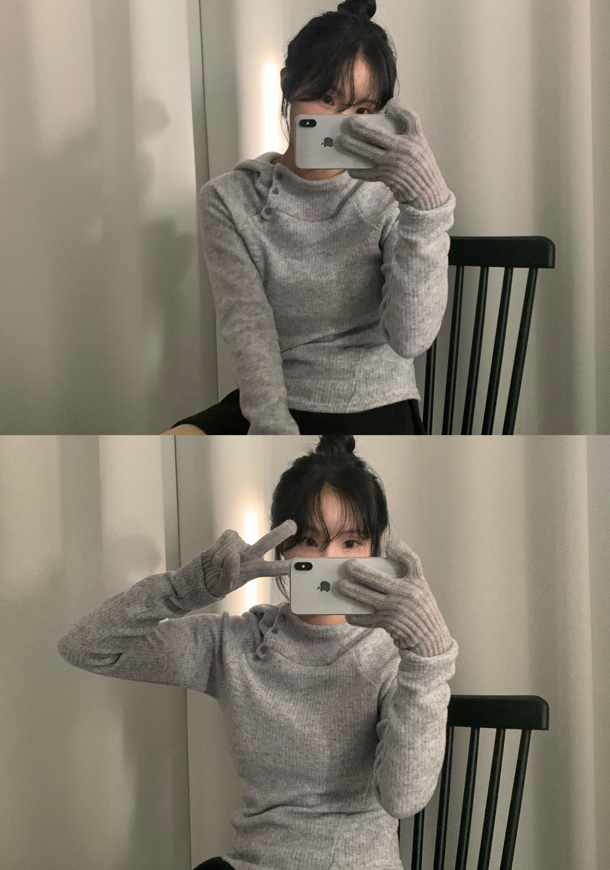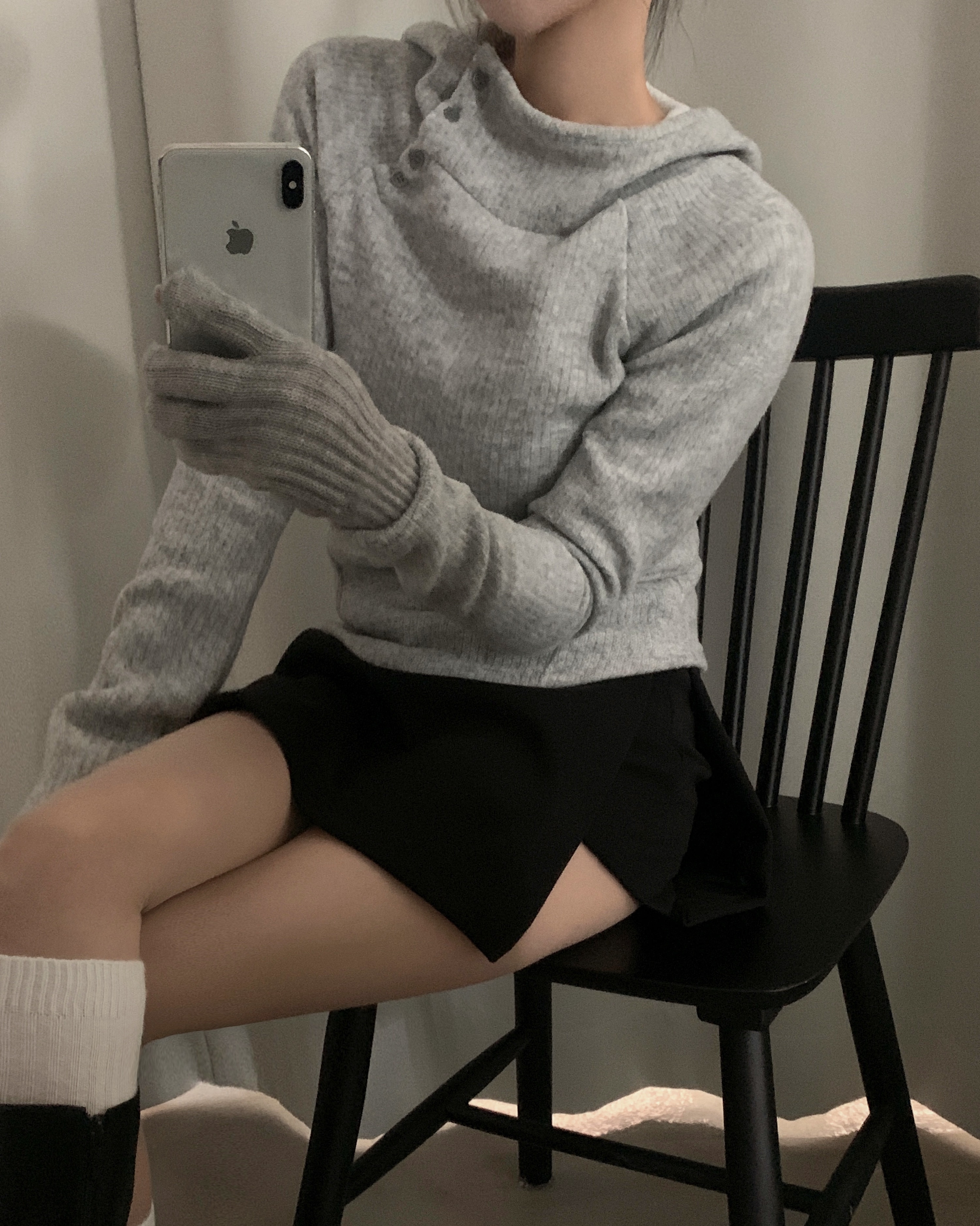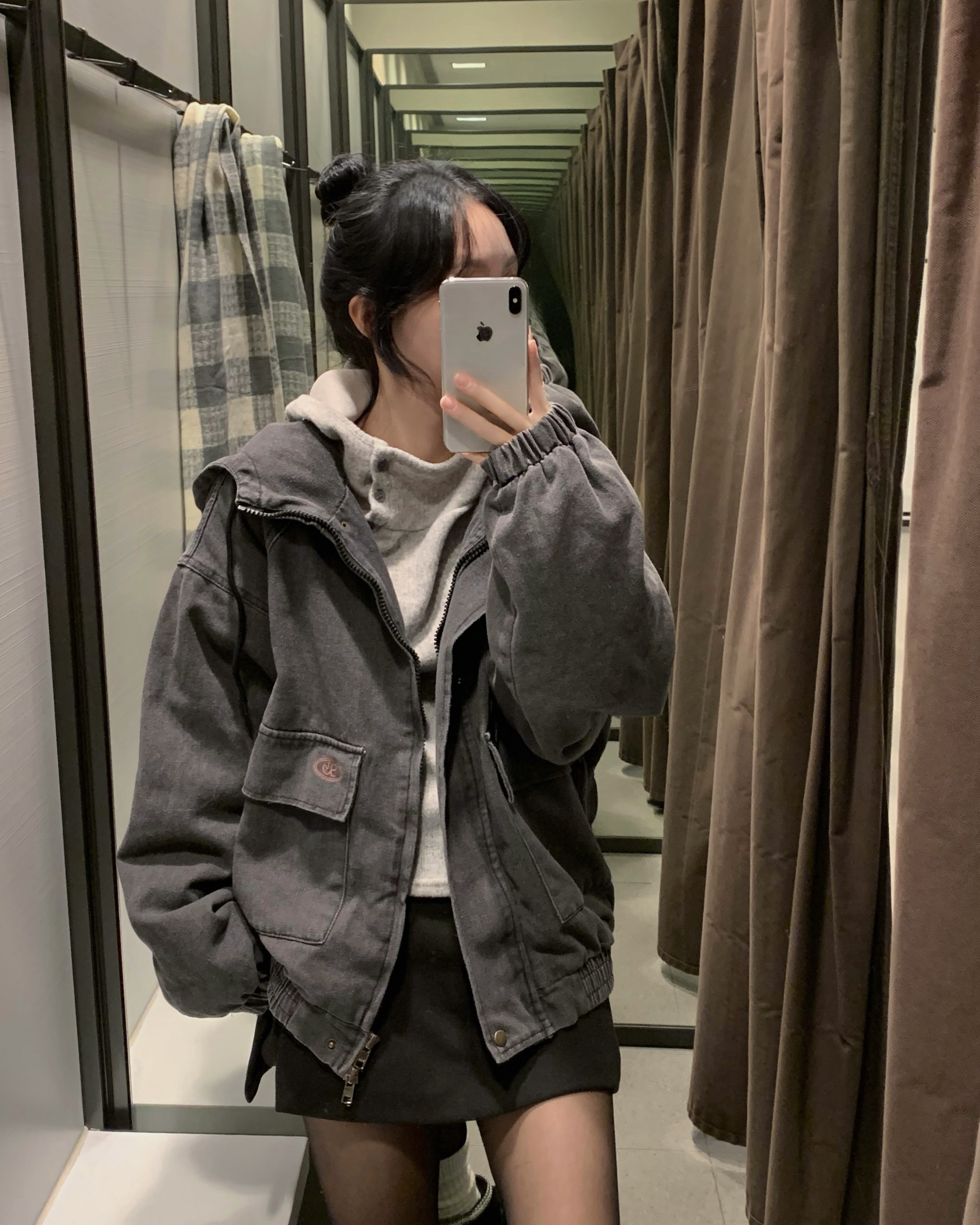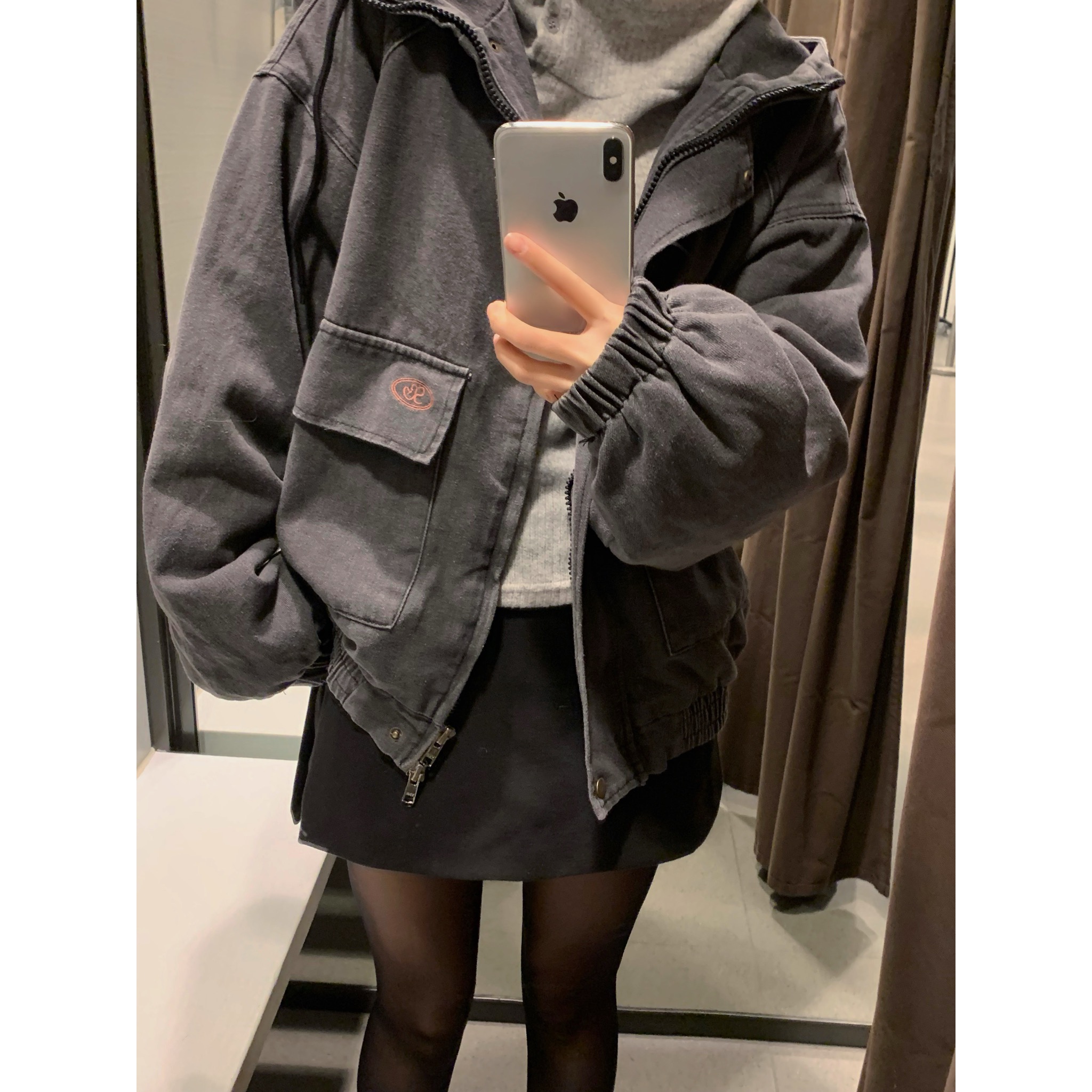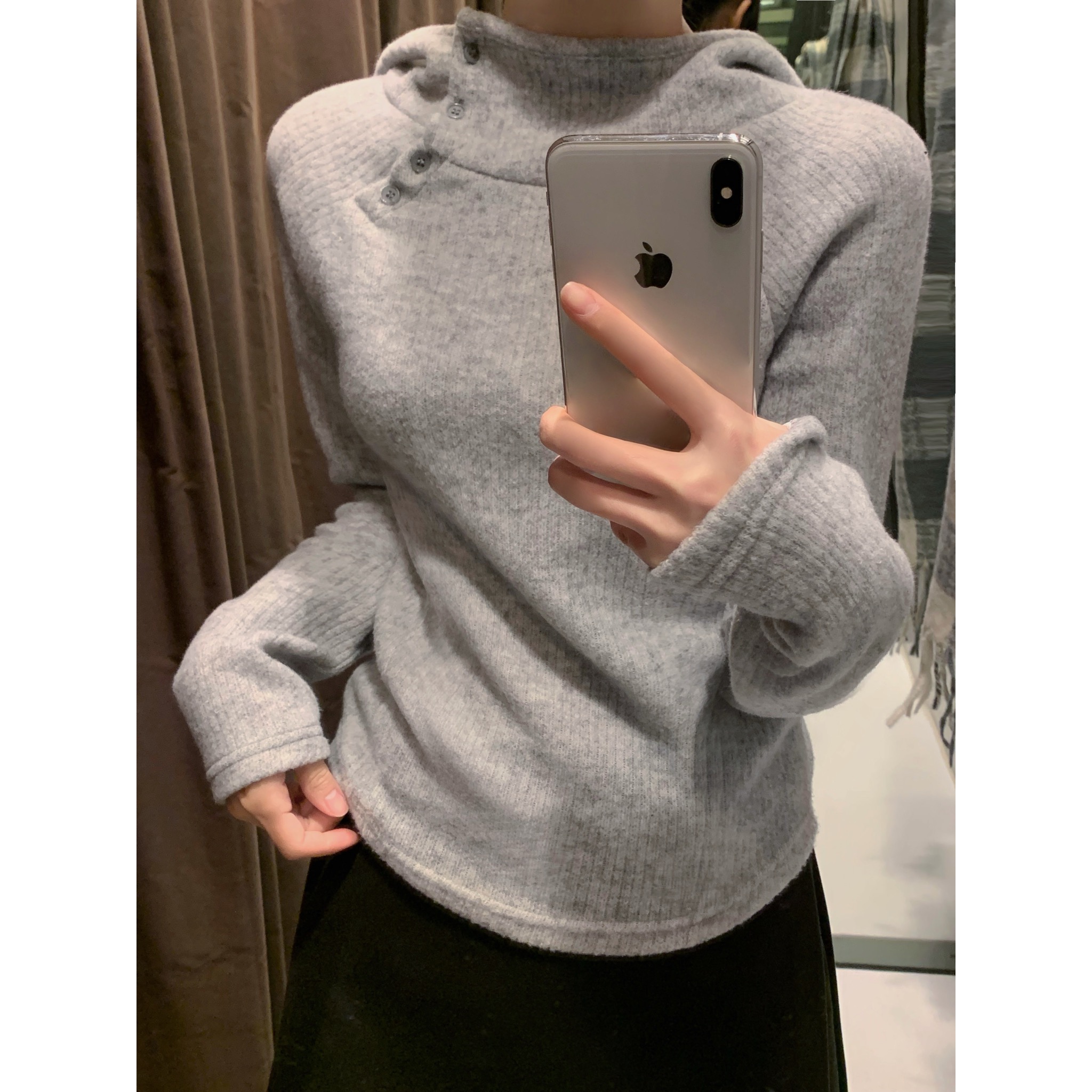 (3 color) ボタン付き リブ フリース パーカー