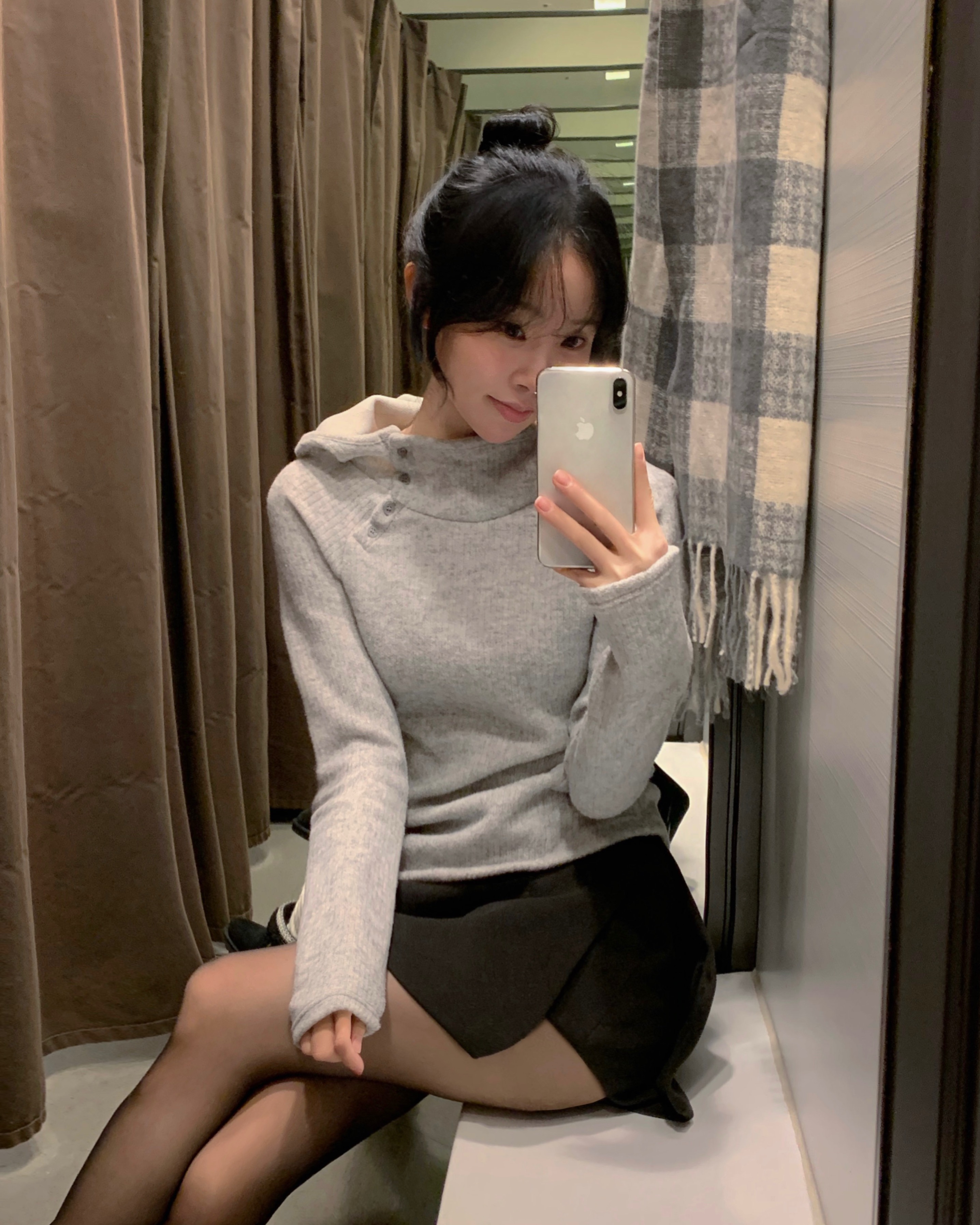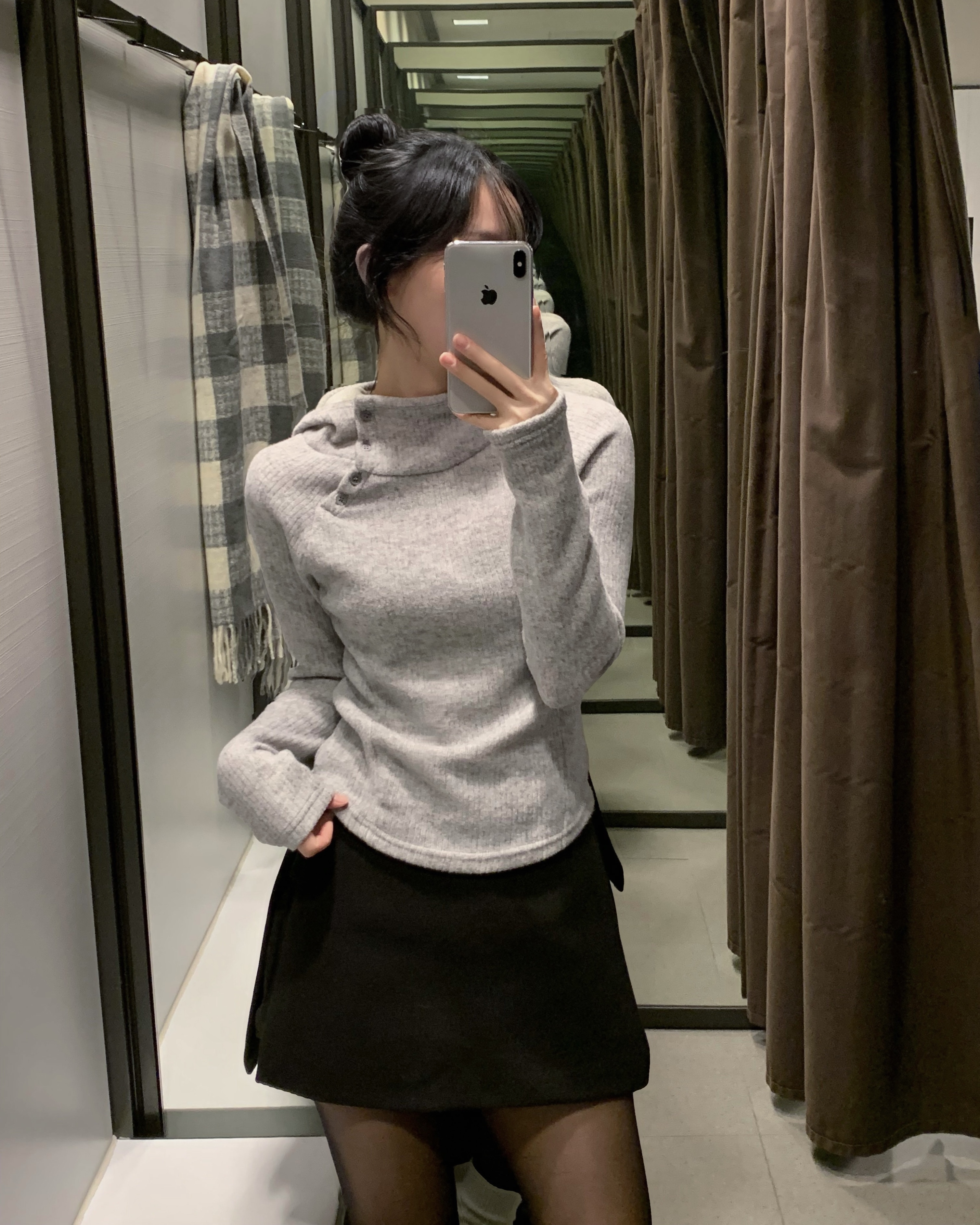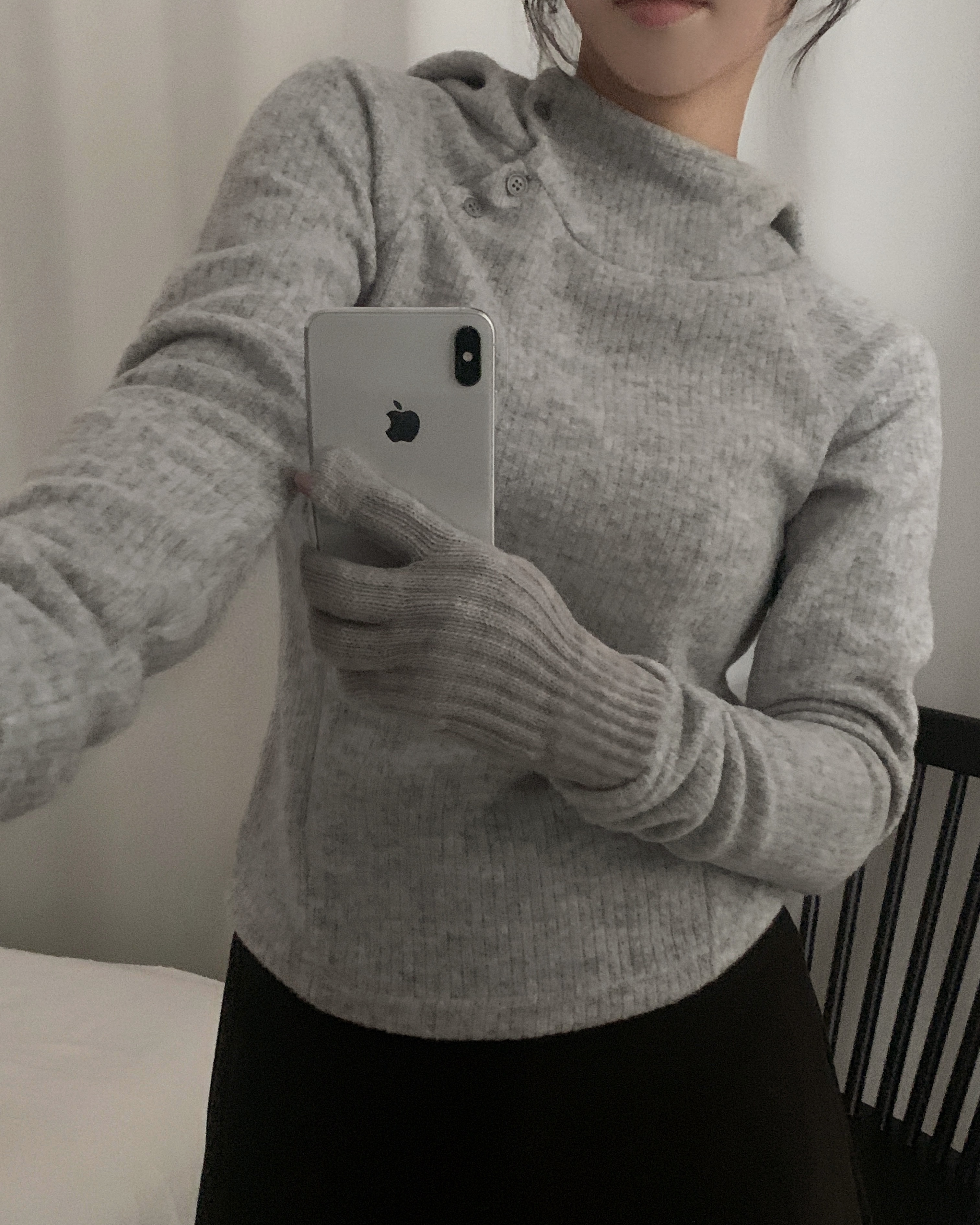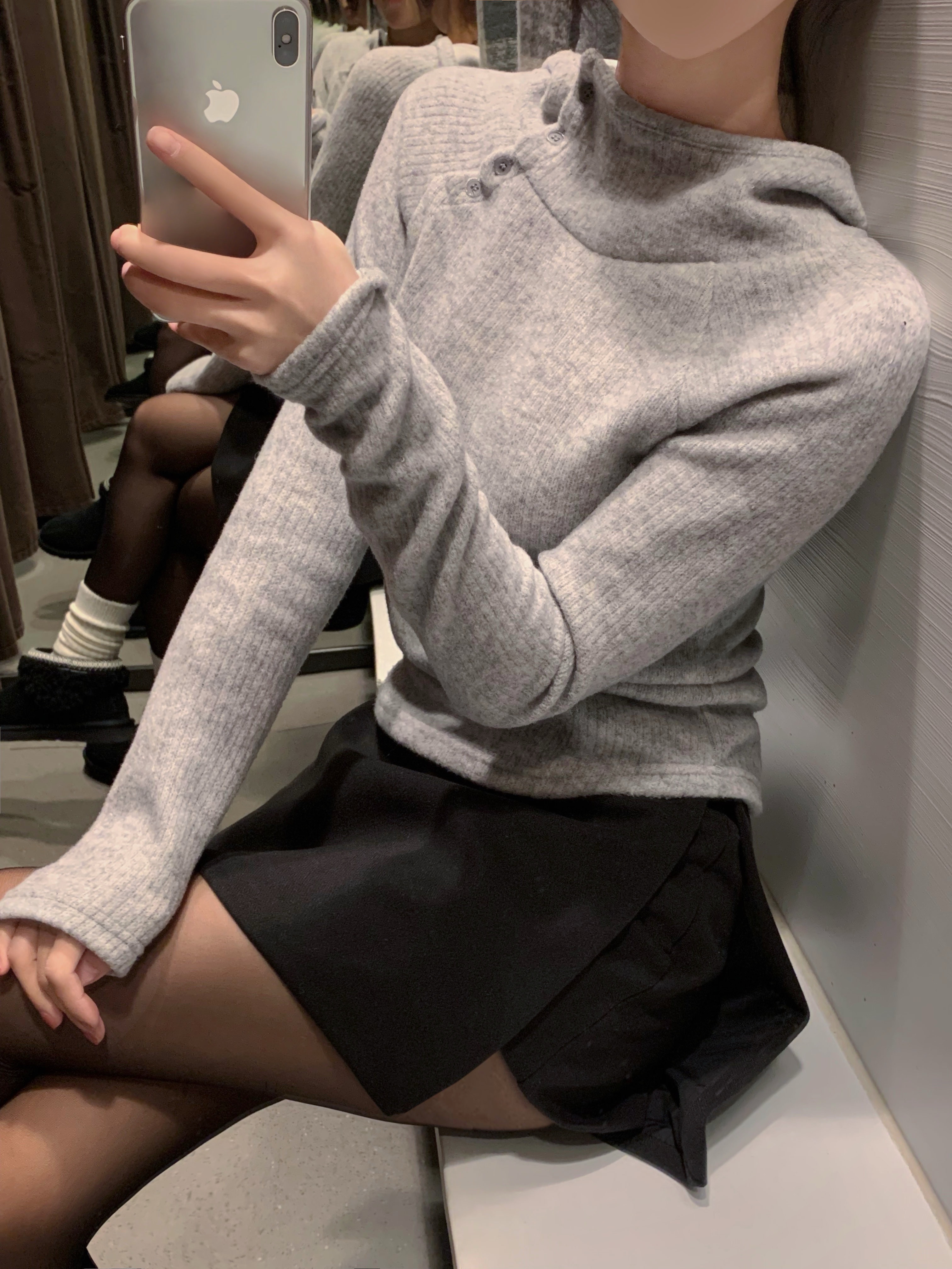 (3 color) ボタン付き リブ フリース パーカー