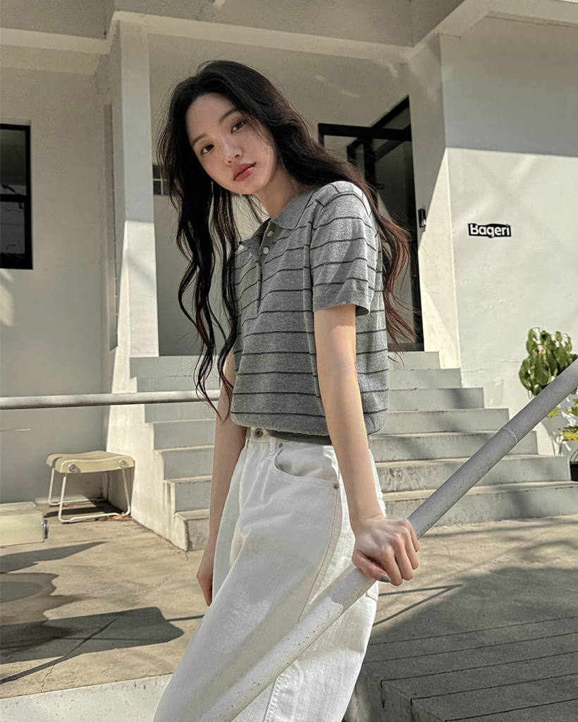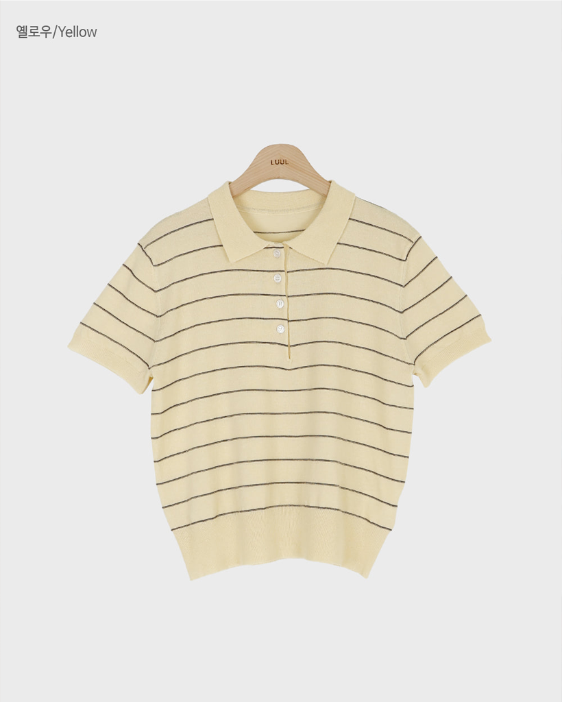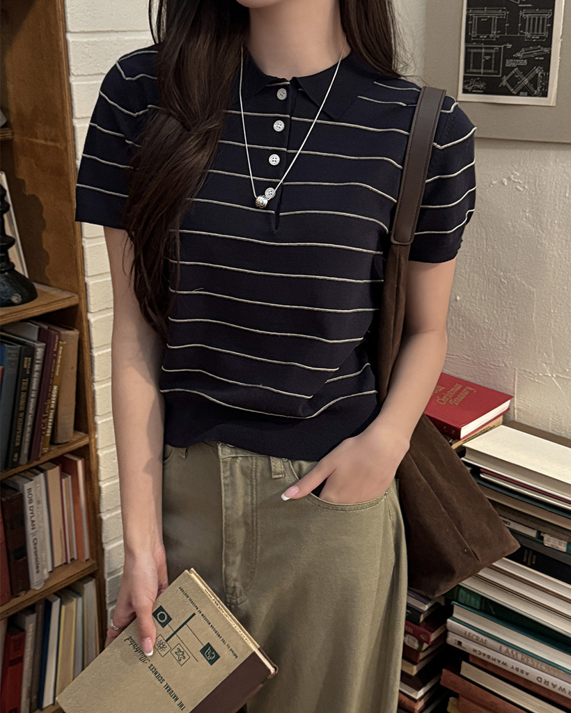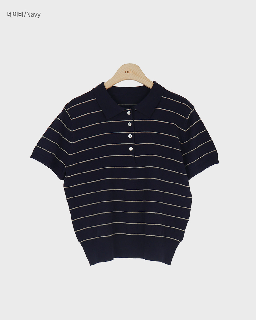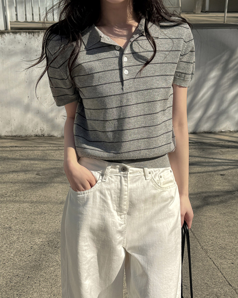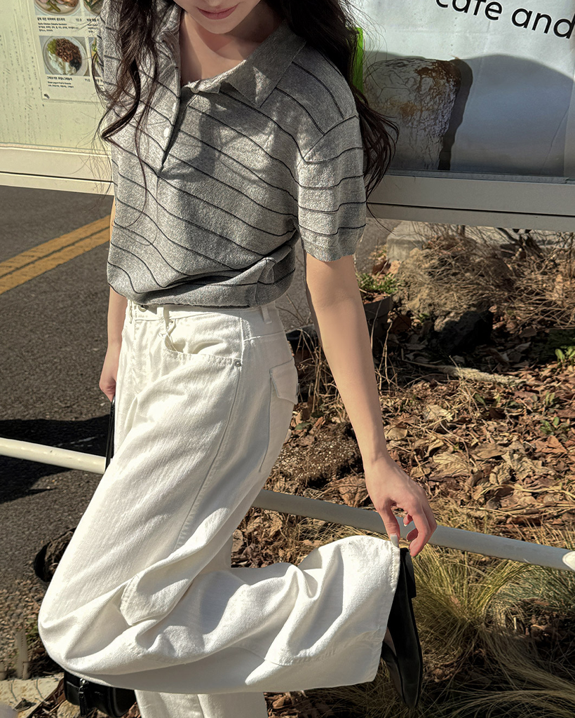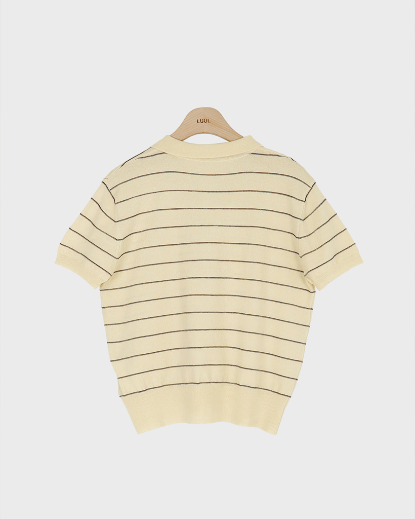 [original] リネン ボーダー 襟付き 半袖 ニット
