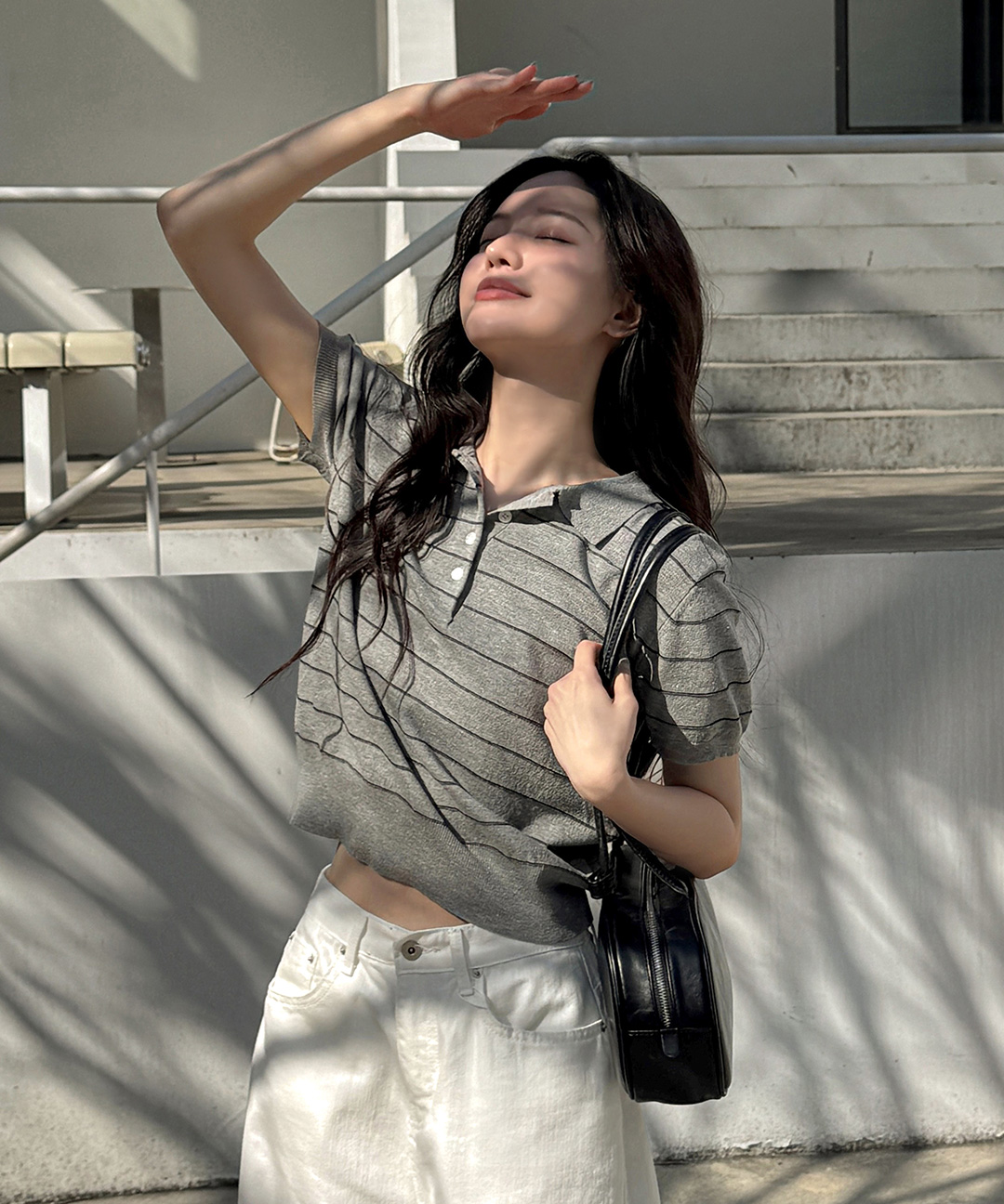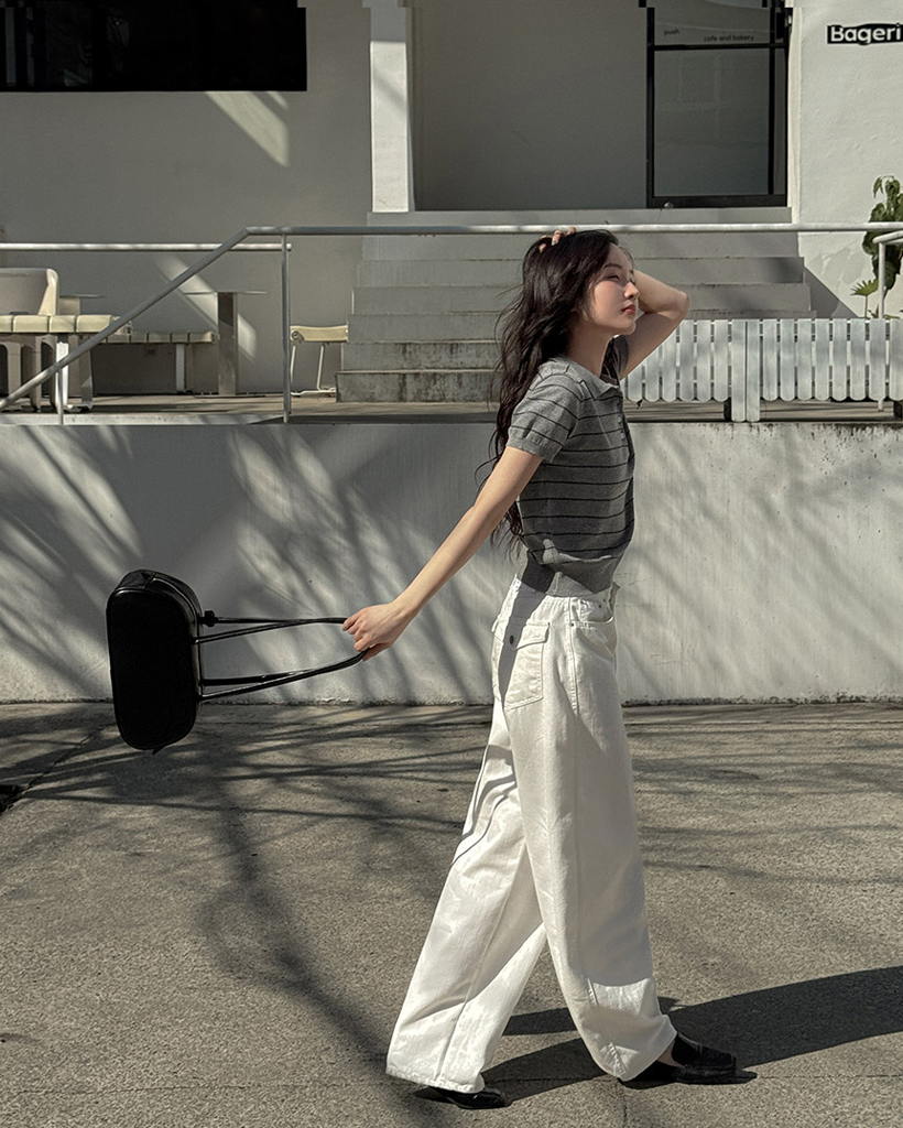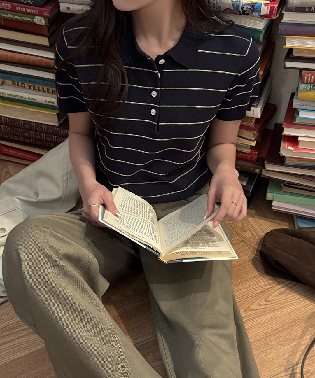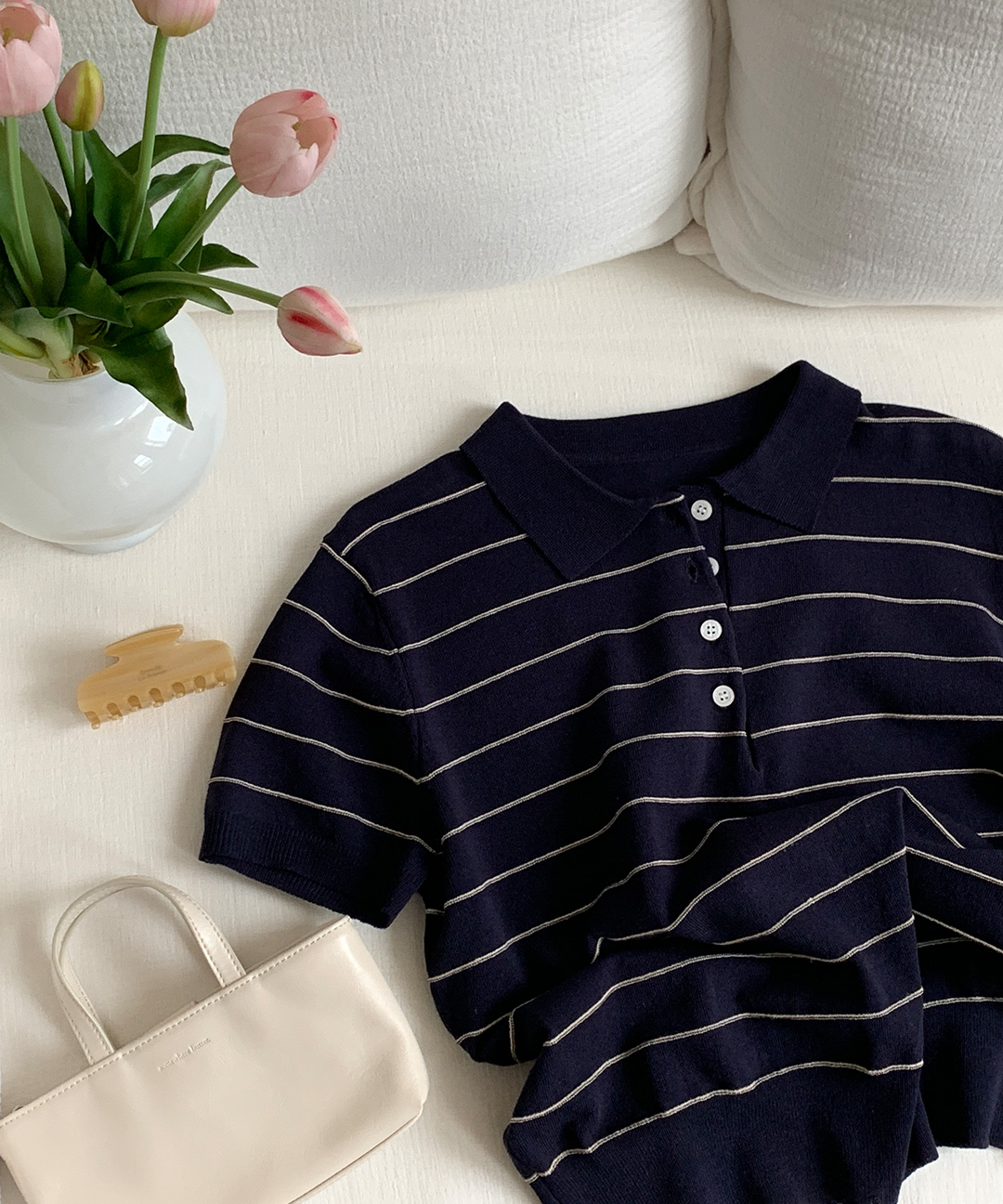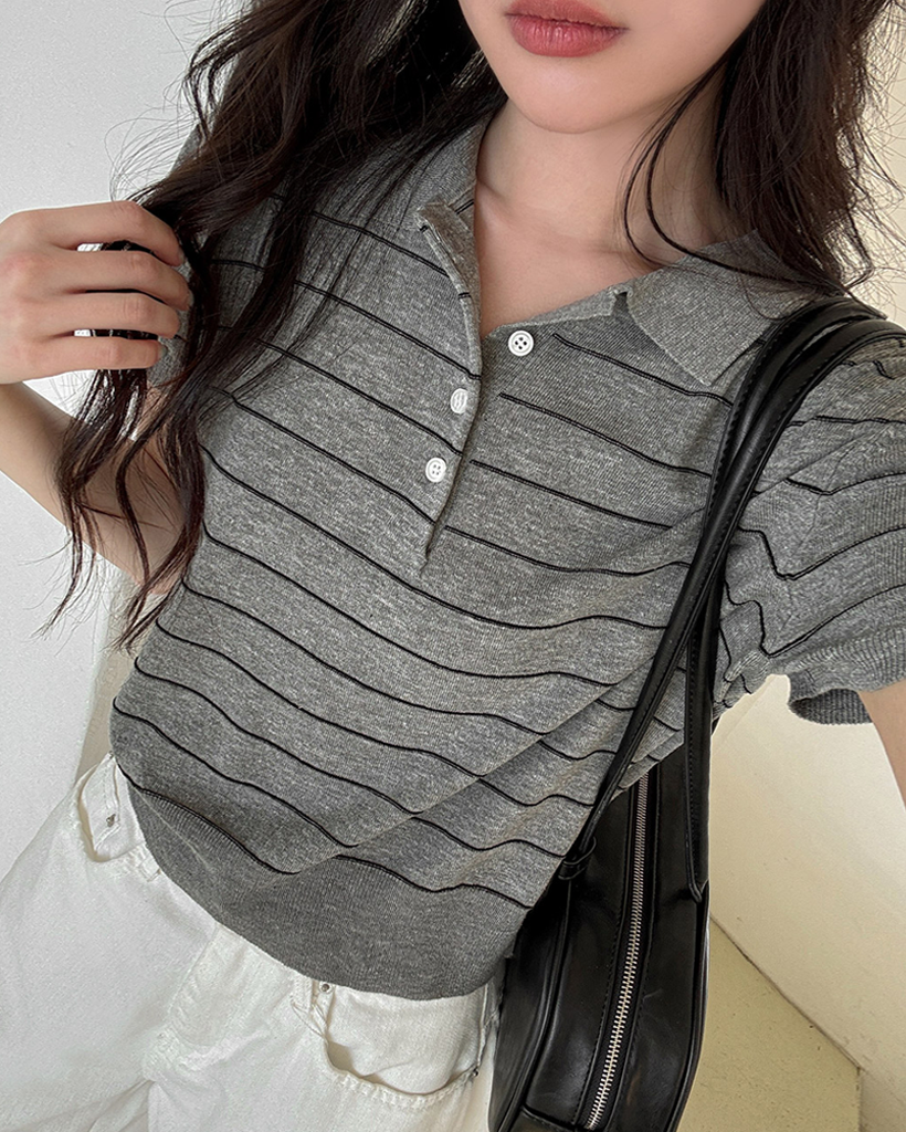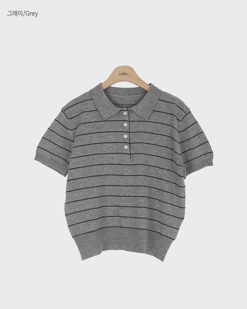 [original] リネン ボーダー 襟付き 半袖 ニット