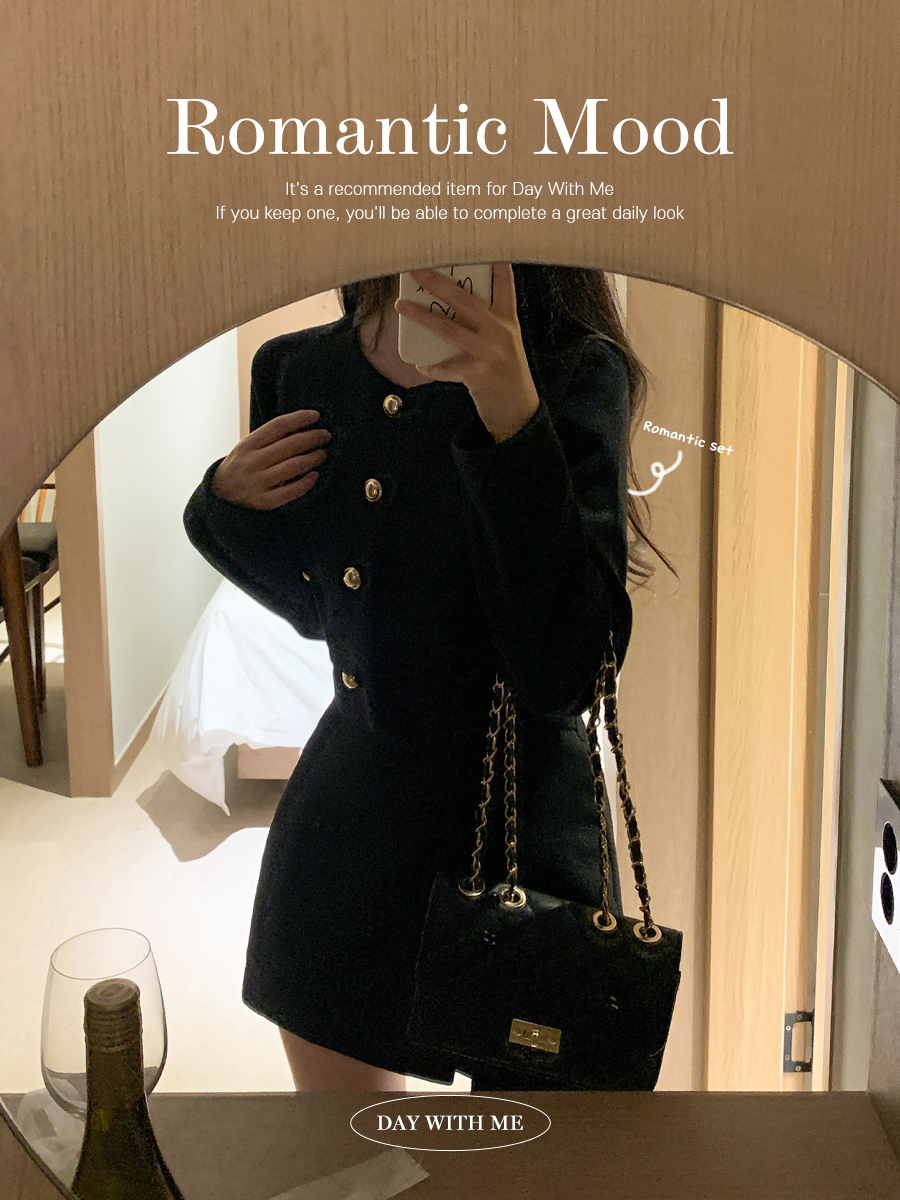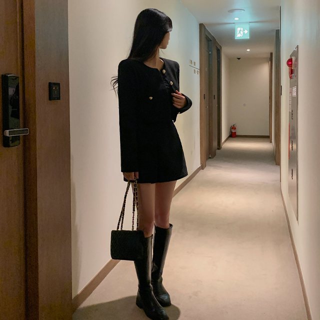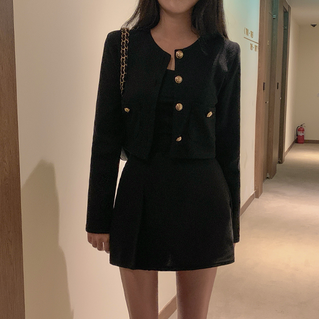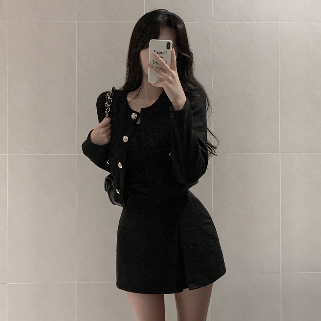 [2ピース]ラウンドジャケット&ミニスリットスカート