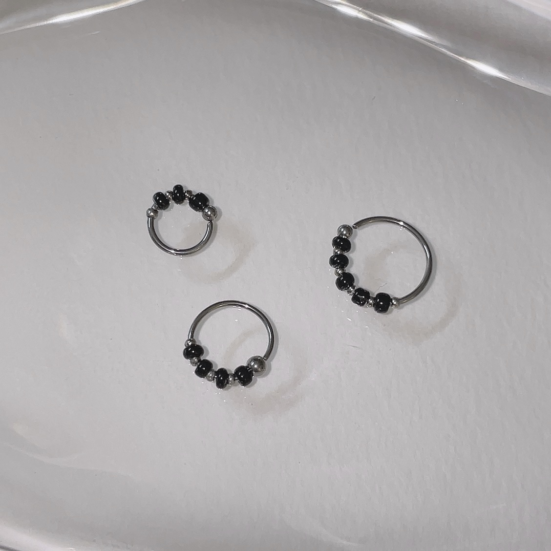 サージカルステンレスビーズリングピアス(5color/3sizes)