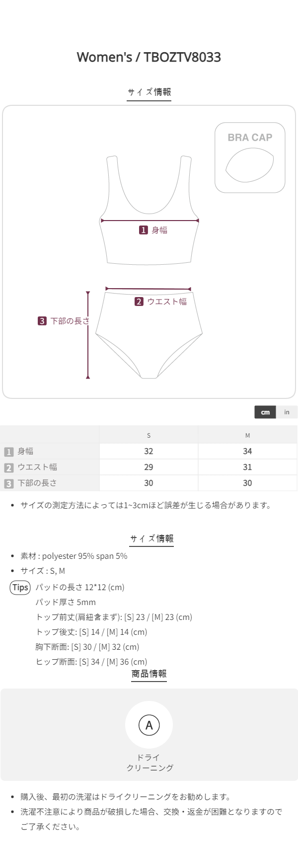 [カップ付き] ハイウエストビキニ水着(S,M)
