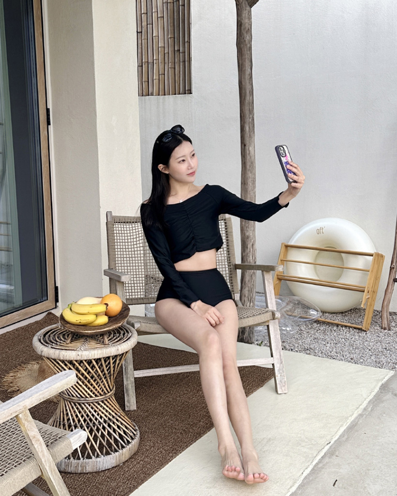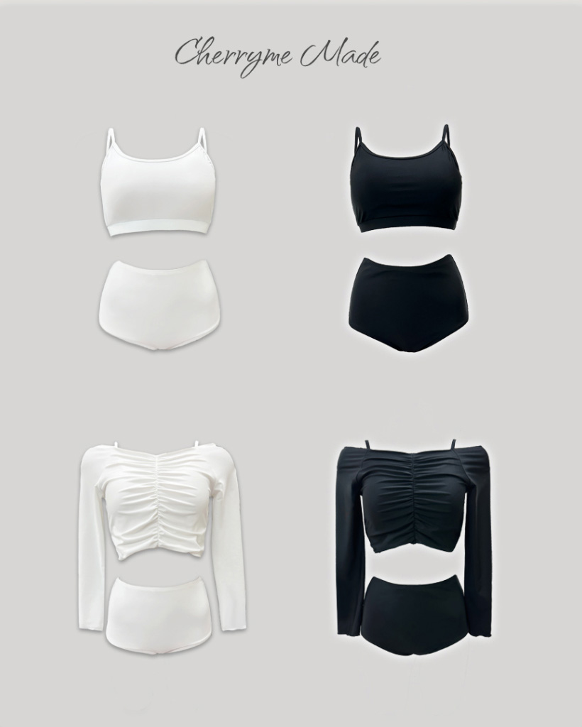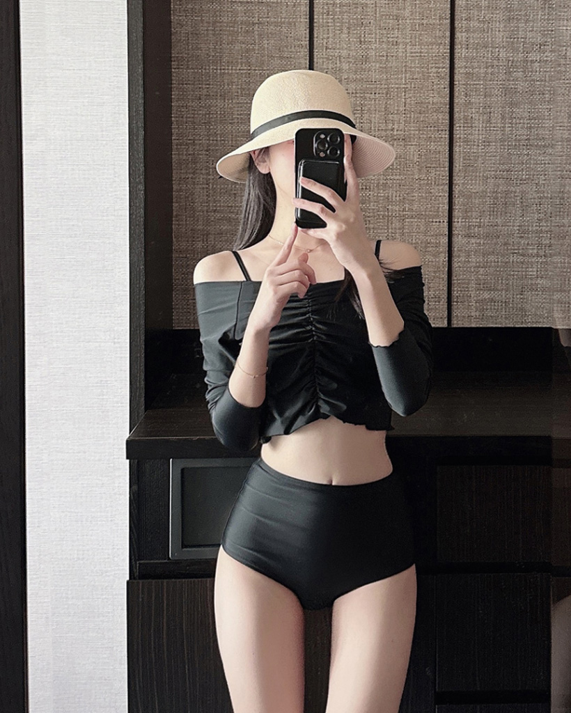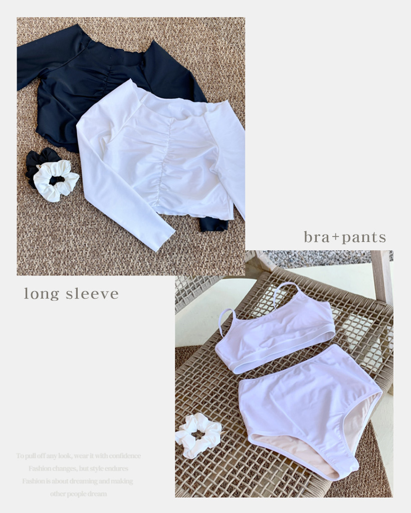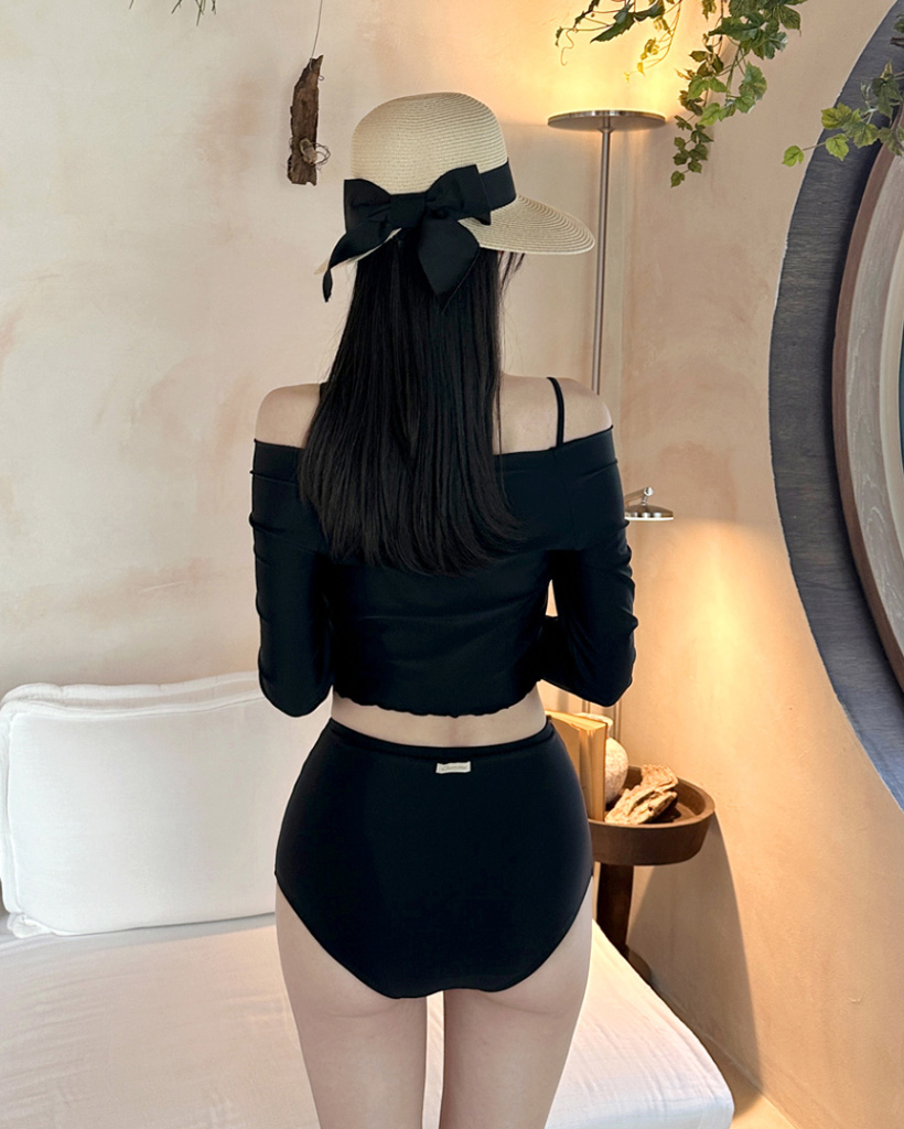 [3PS]シンプル長袖クロップド+ハイウエストビキニSET