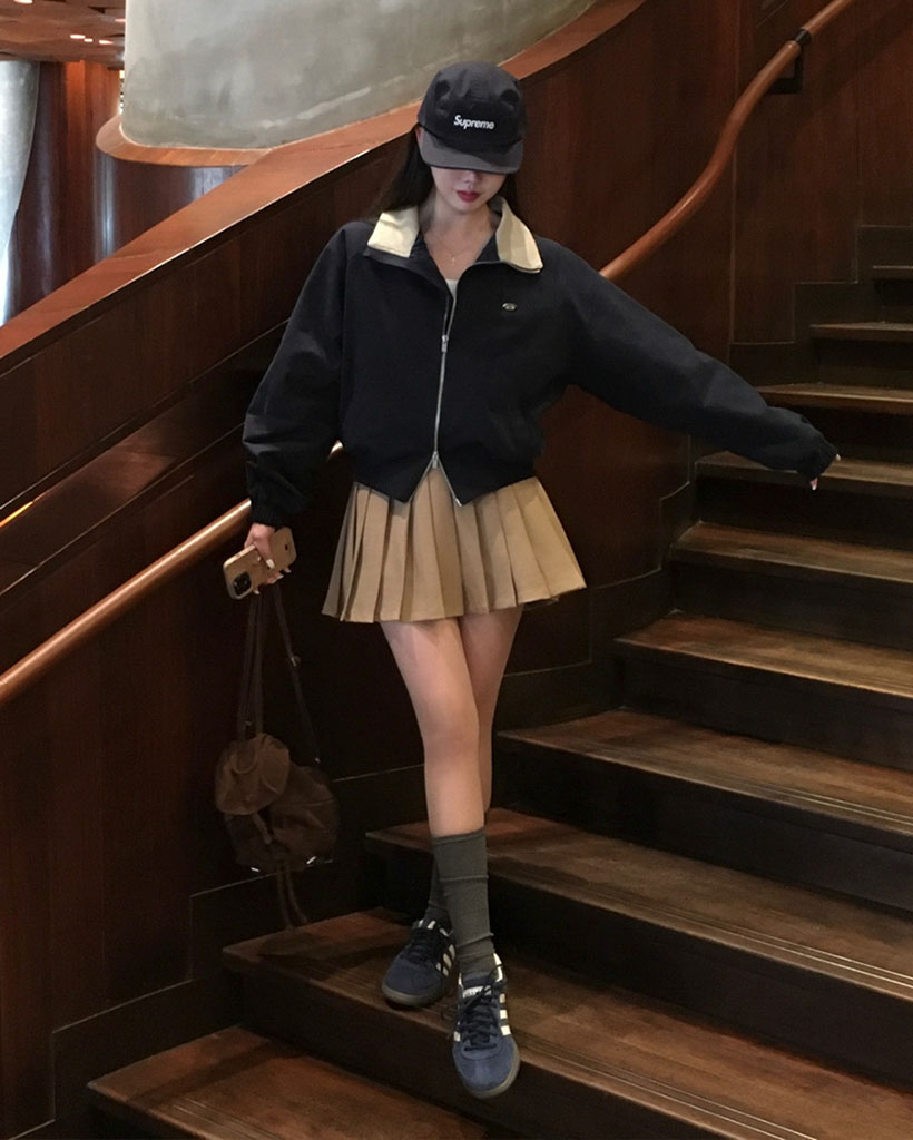 (ORIGINAL) プレッピー、ペンダントバンプリーツスカート