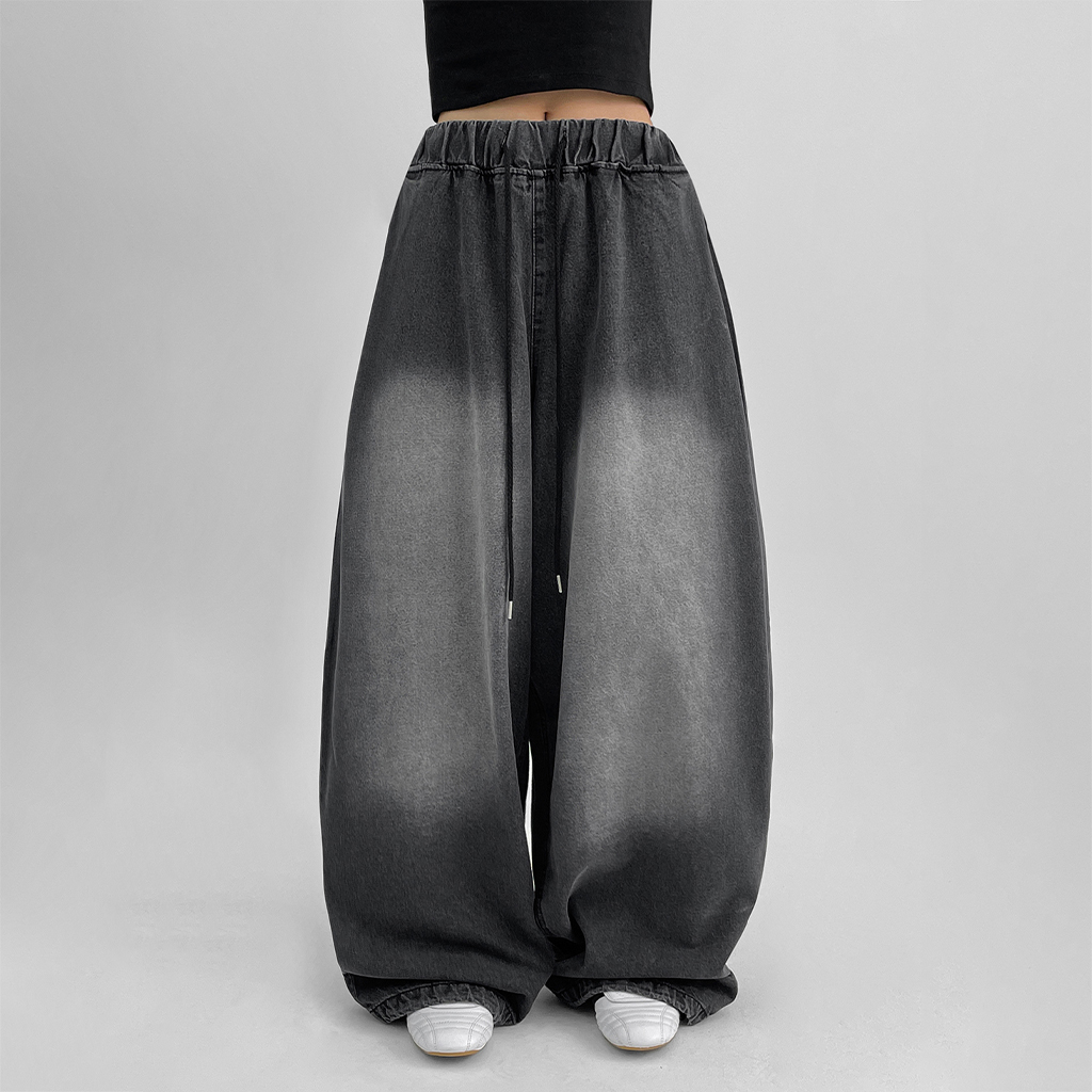 (UNISEX) モンケン ワイド バルーン デニムパンツ