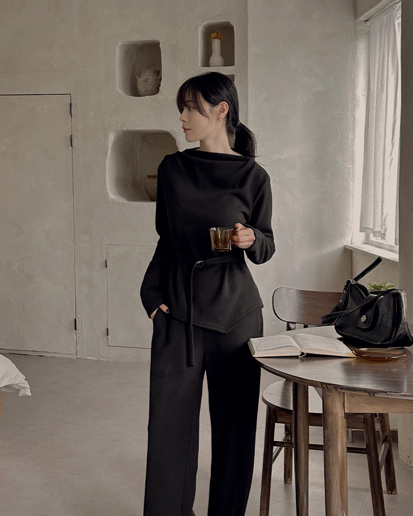 ツーピ―スのミニマルなデザインで