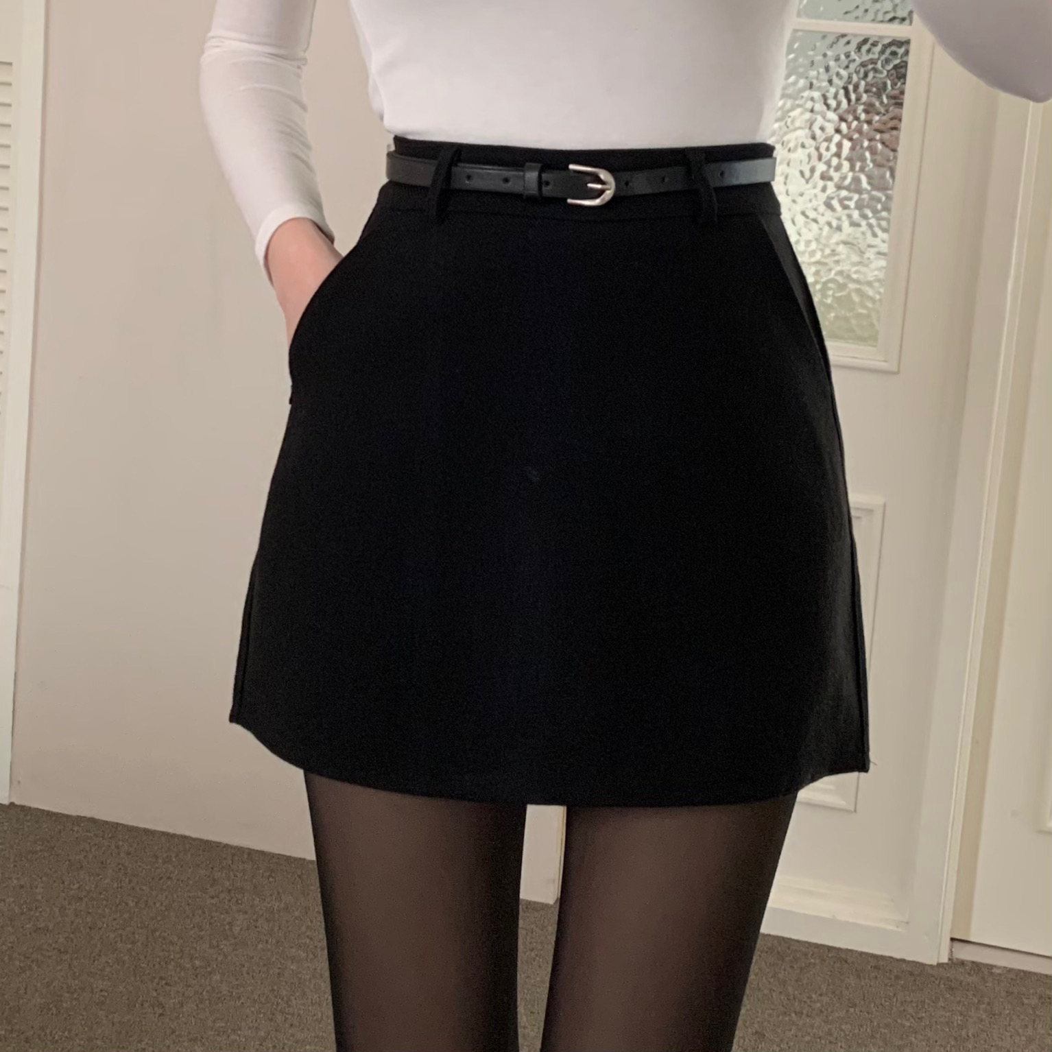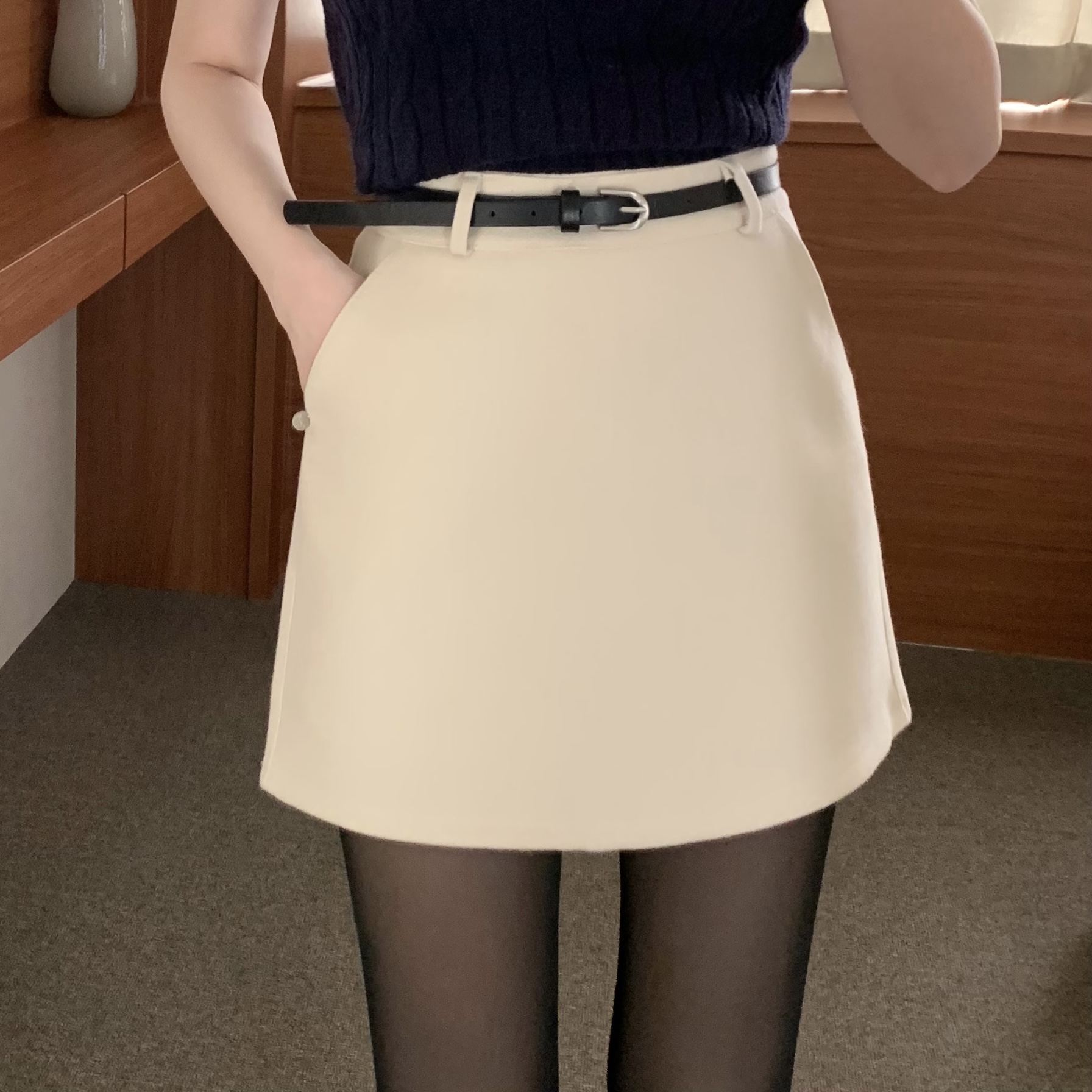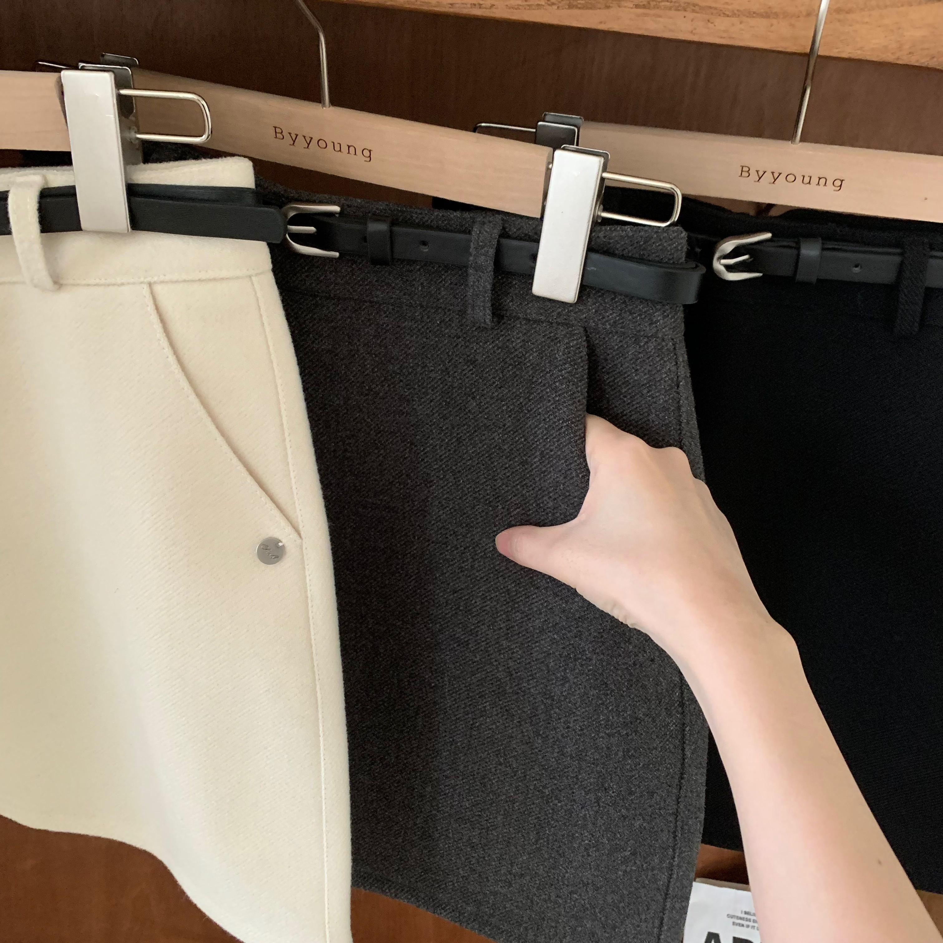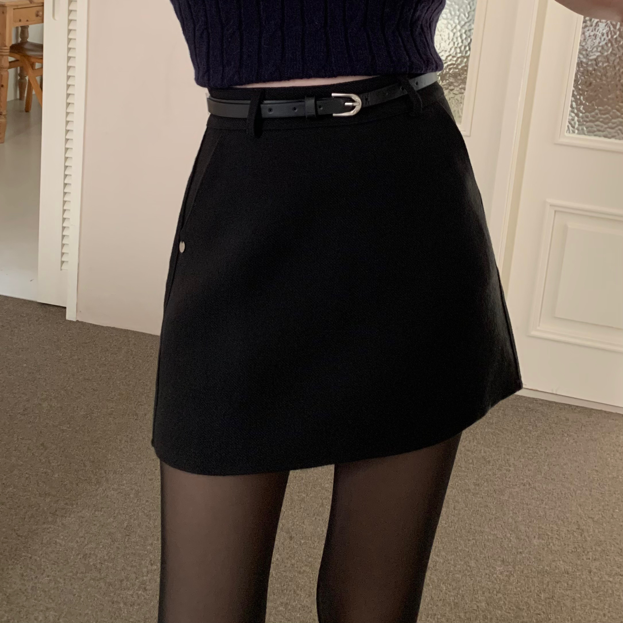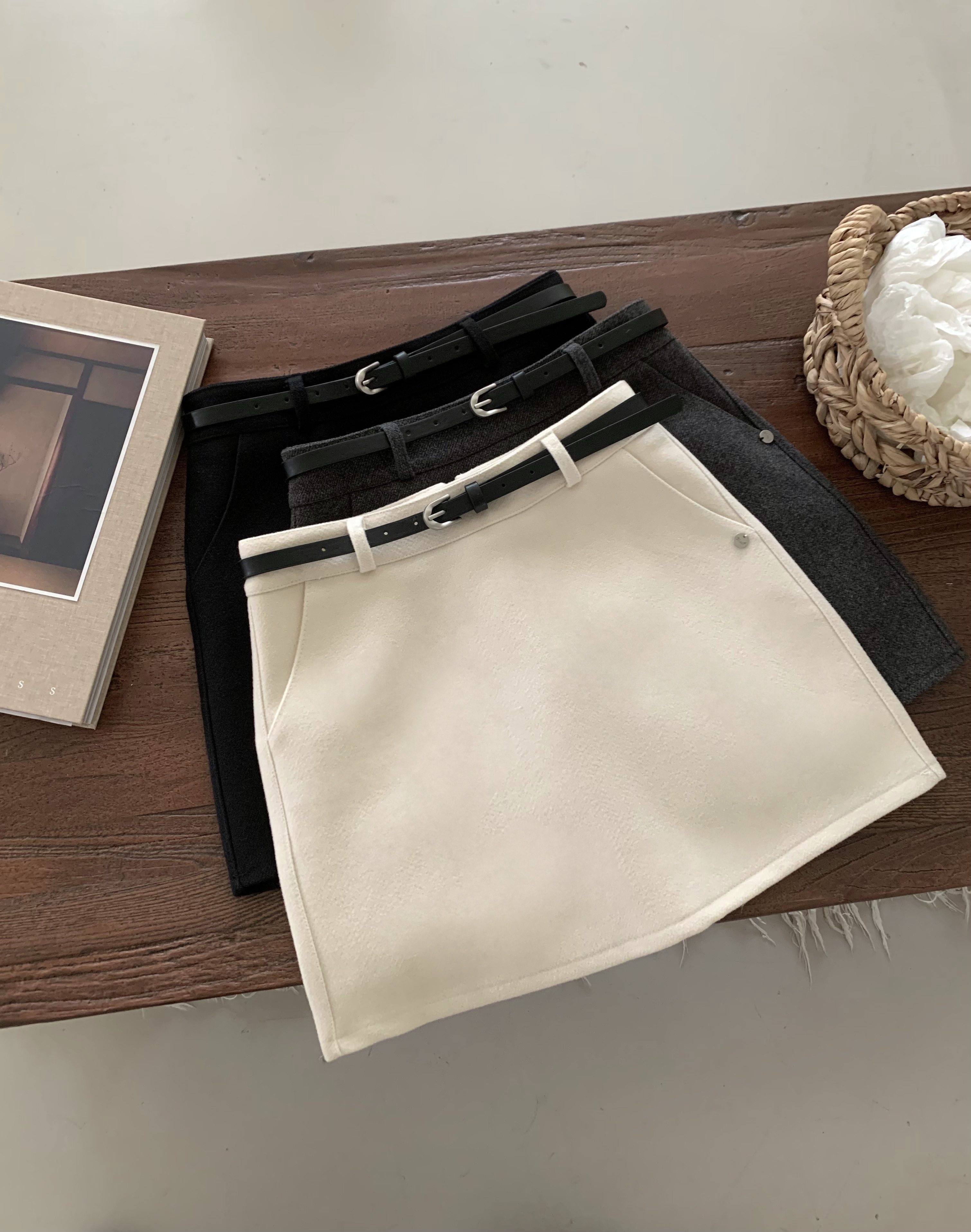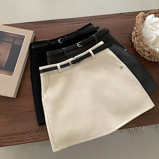 ベルト付き ウール ミニスカート