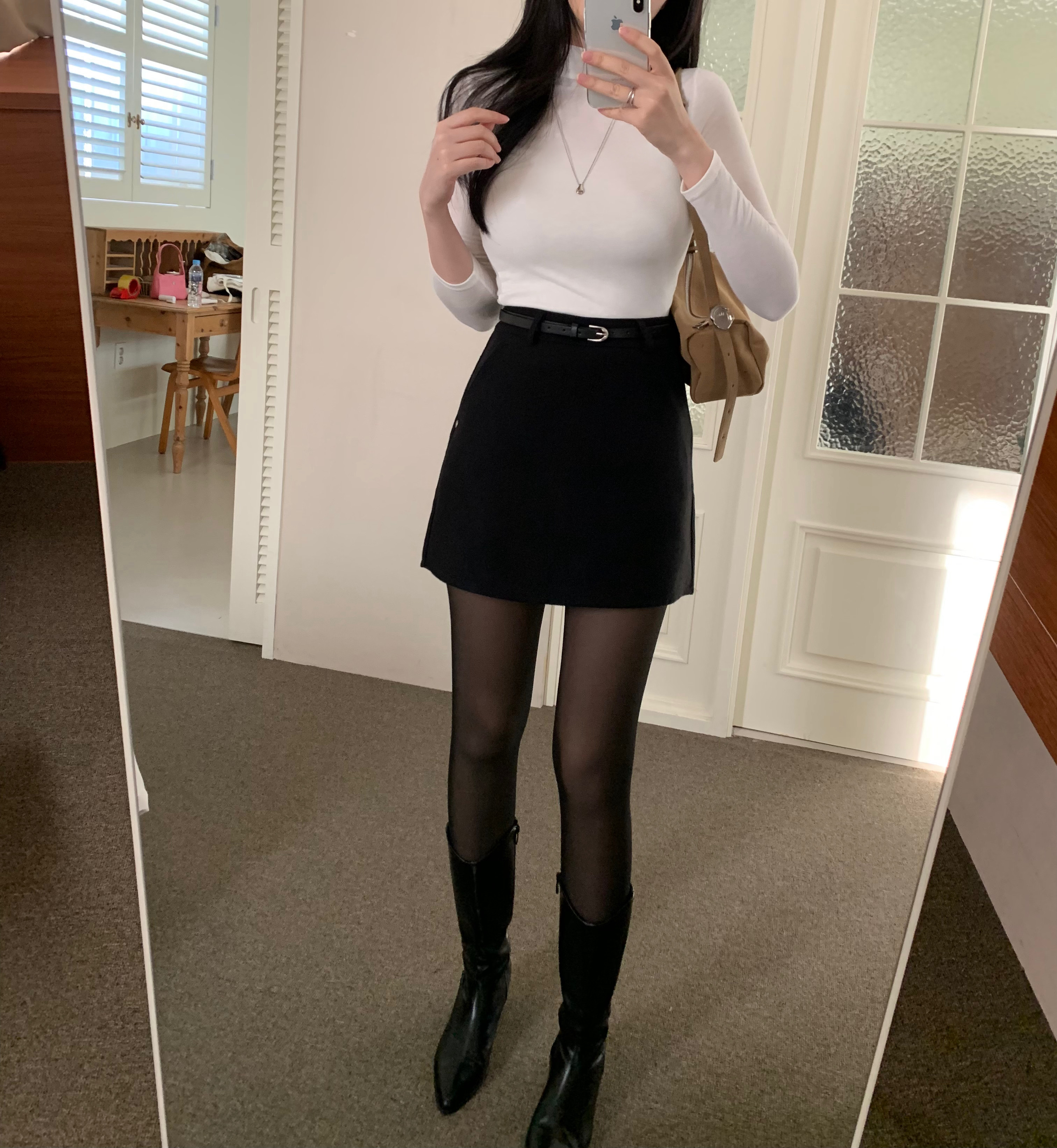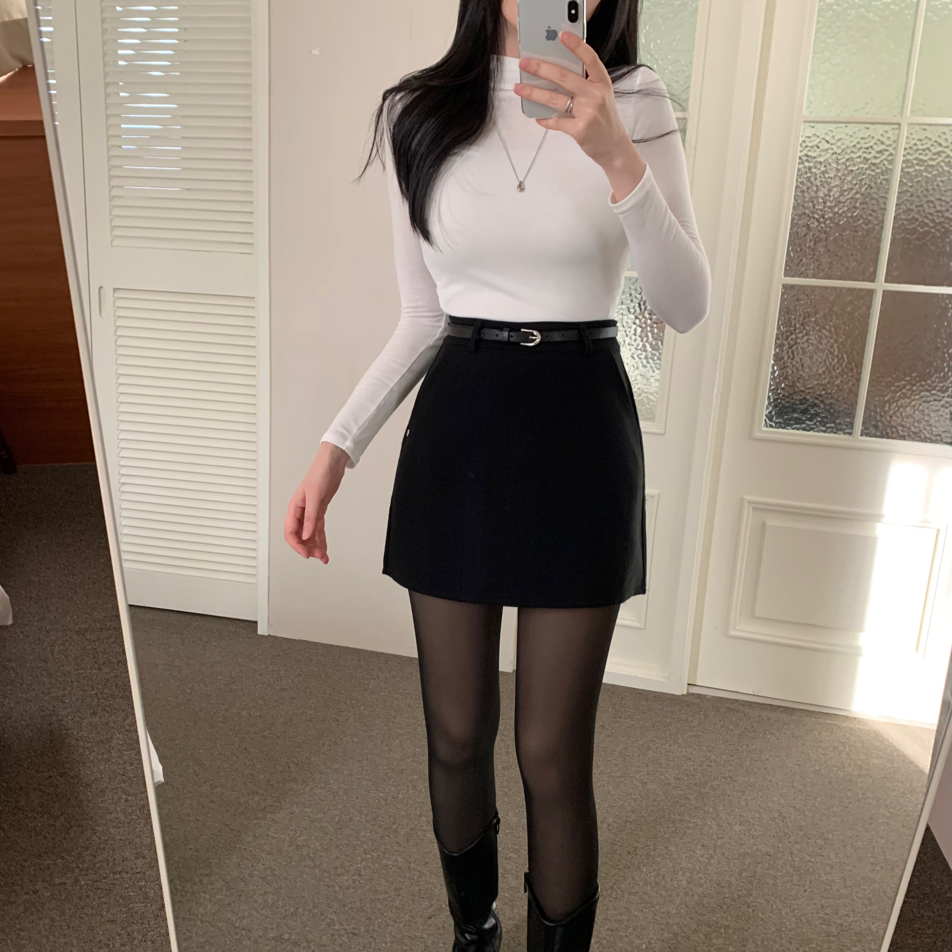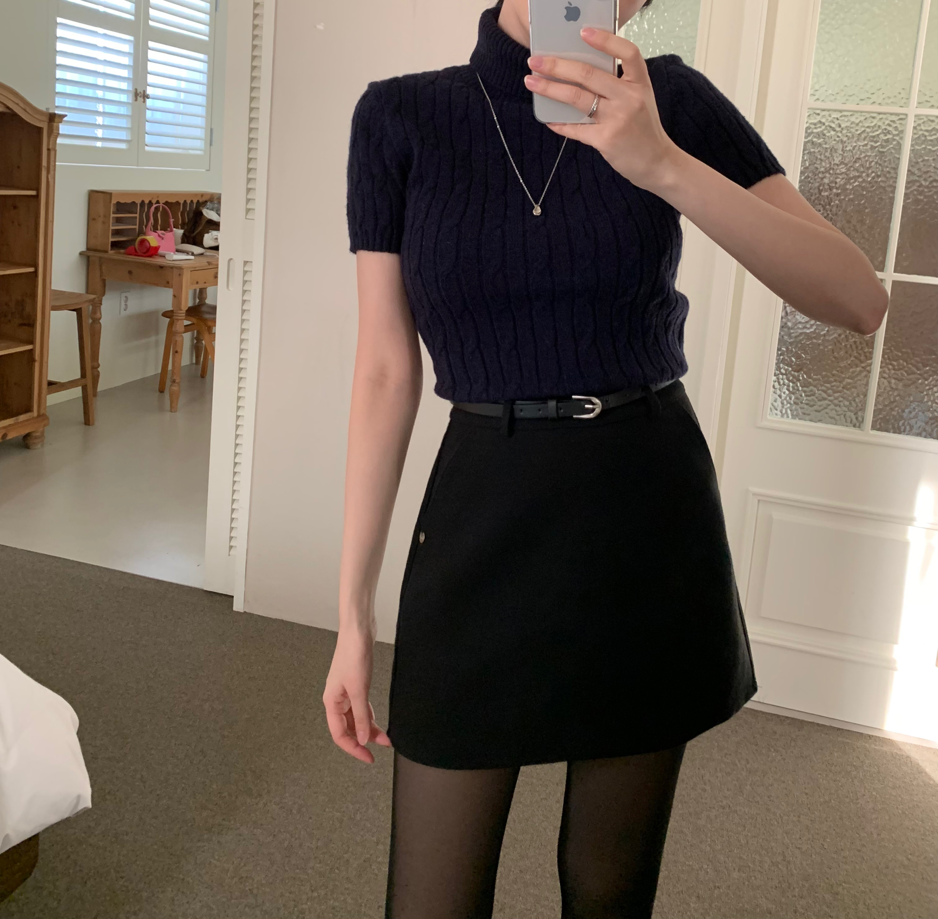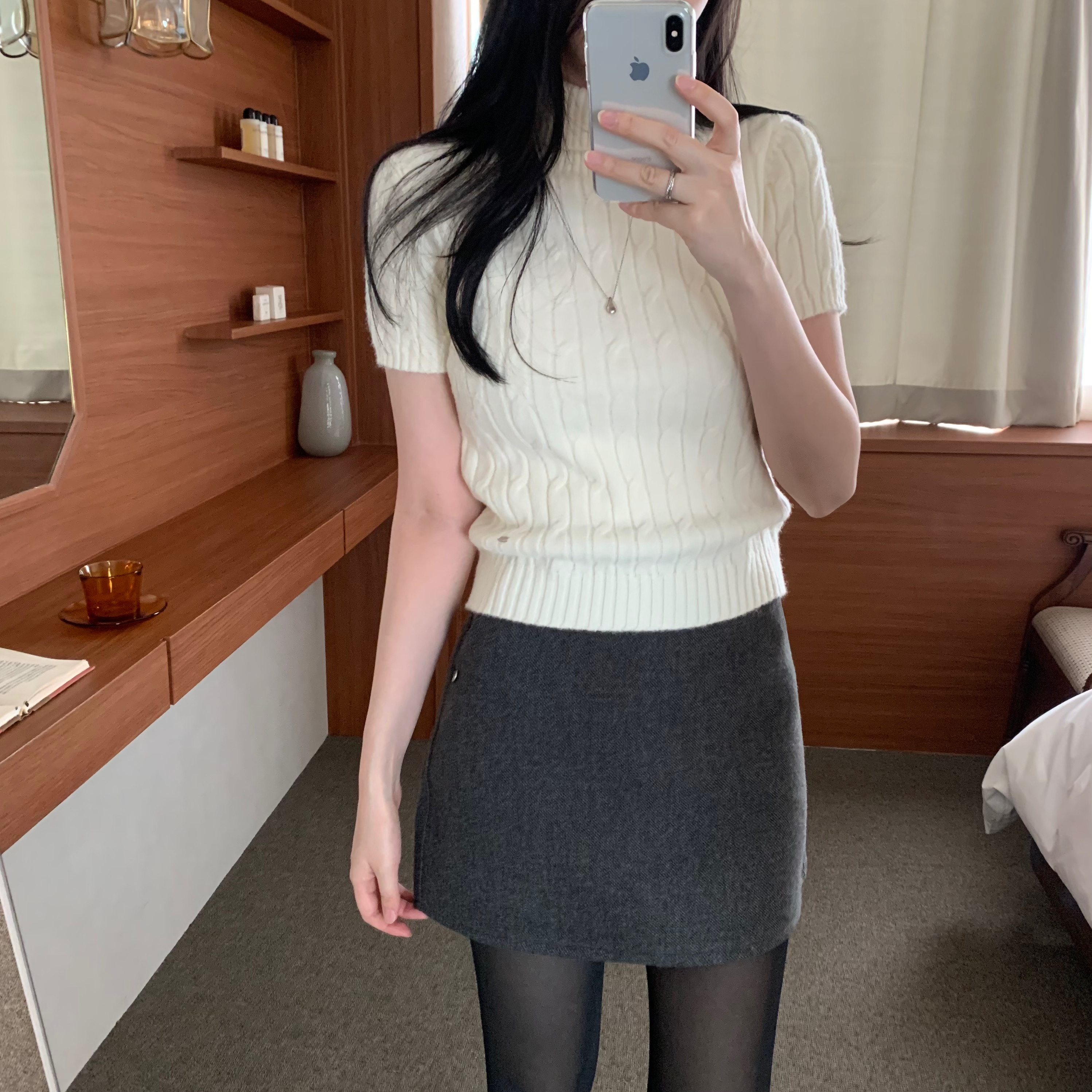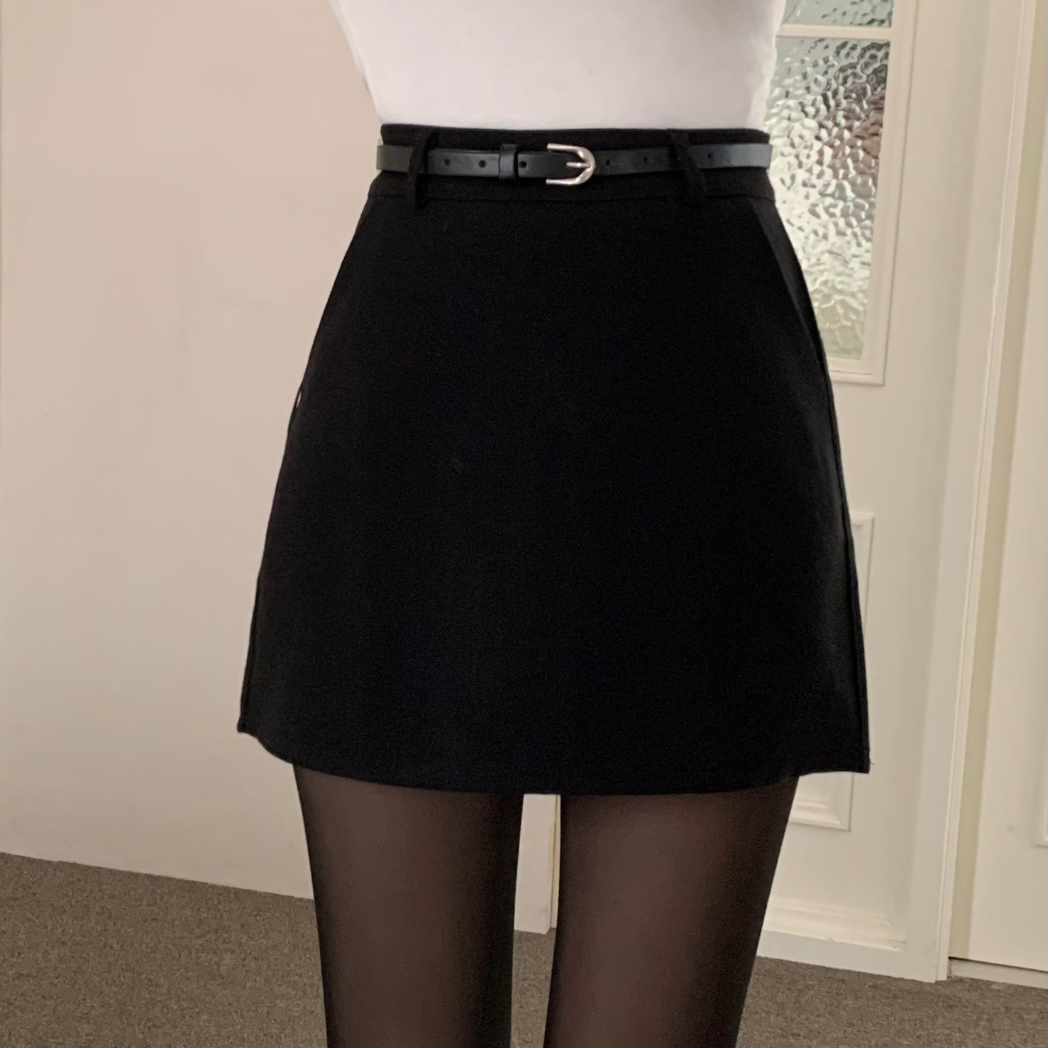 ベルト付き ウール ミニスカート