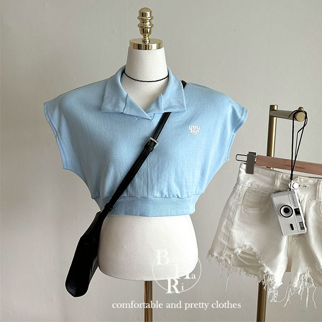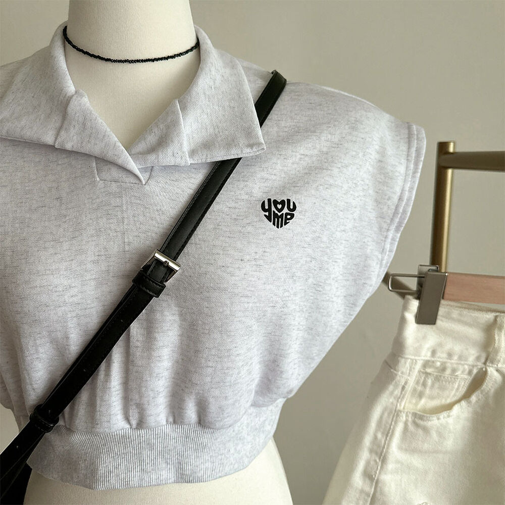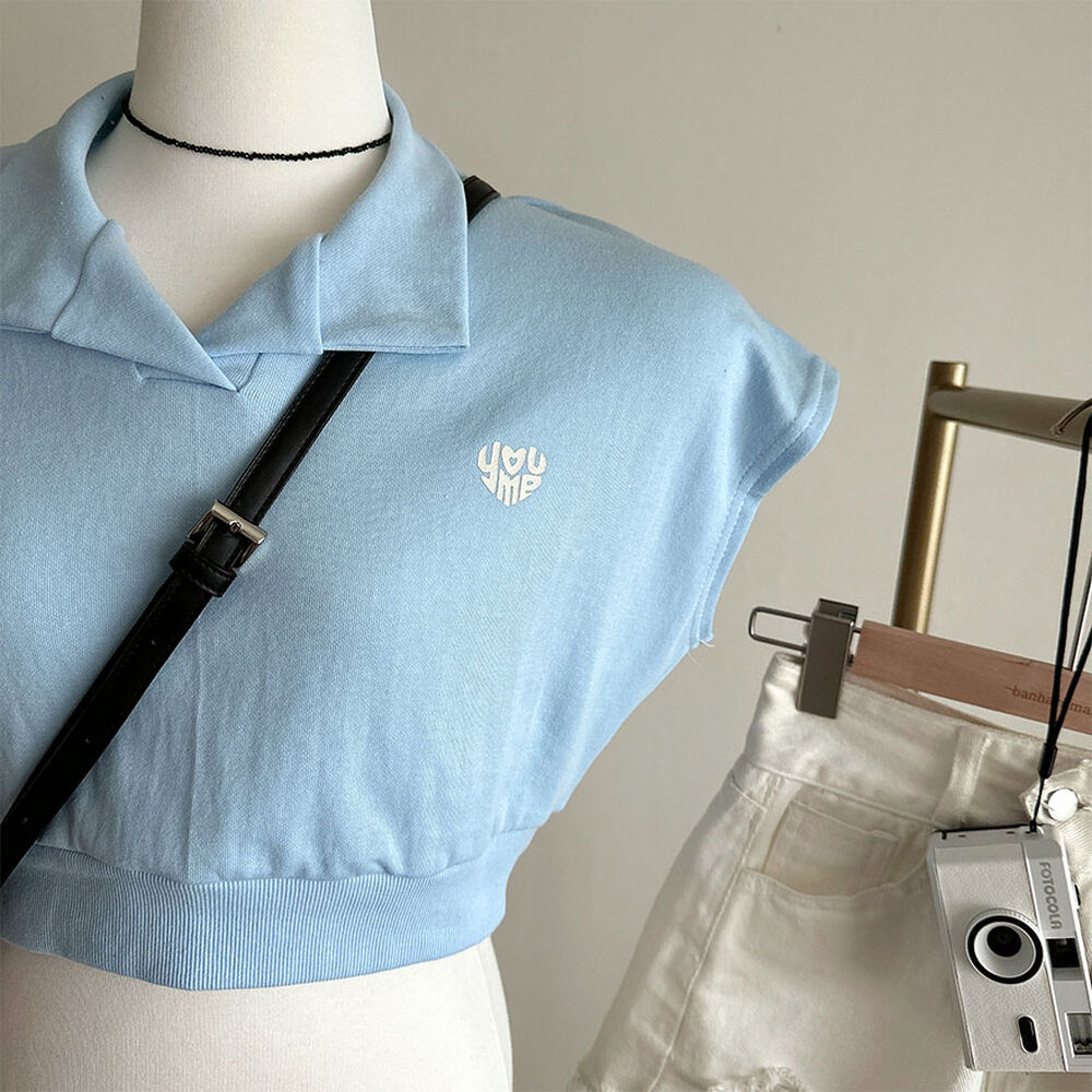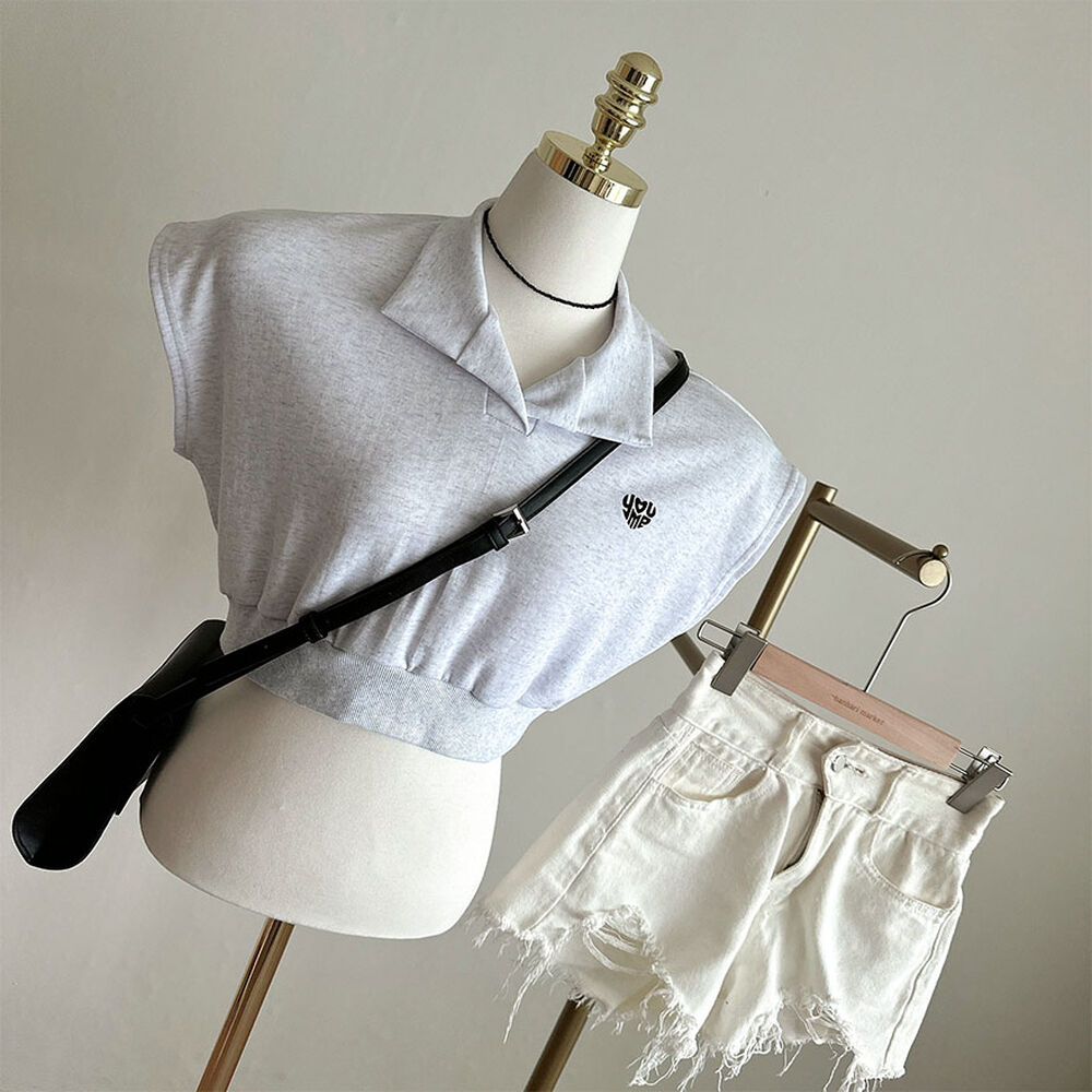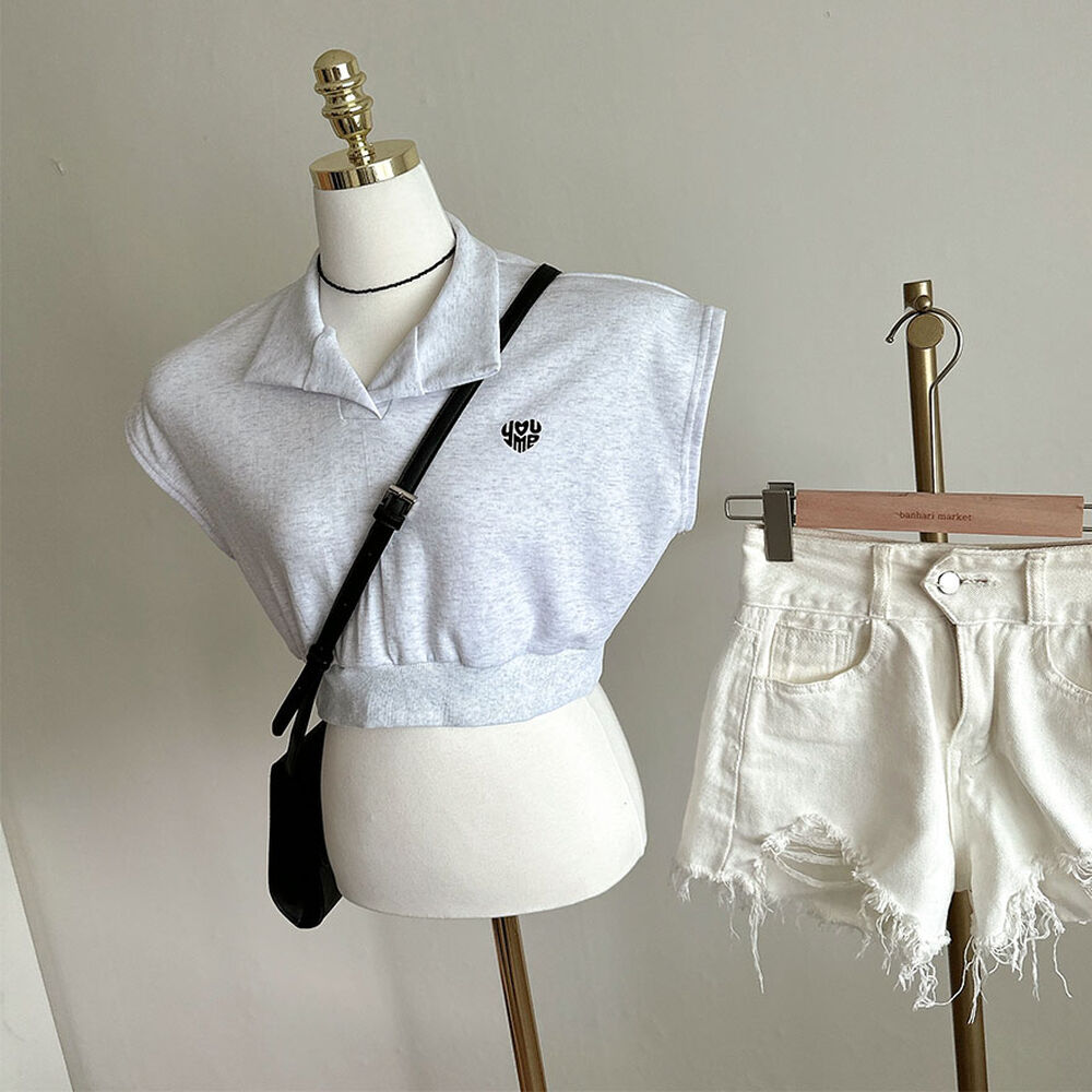 オープンカラーネッククロップドノースリーブTシャツ