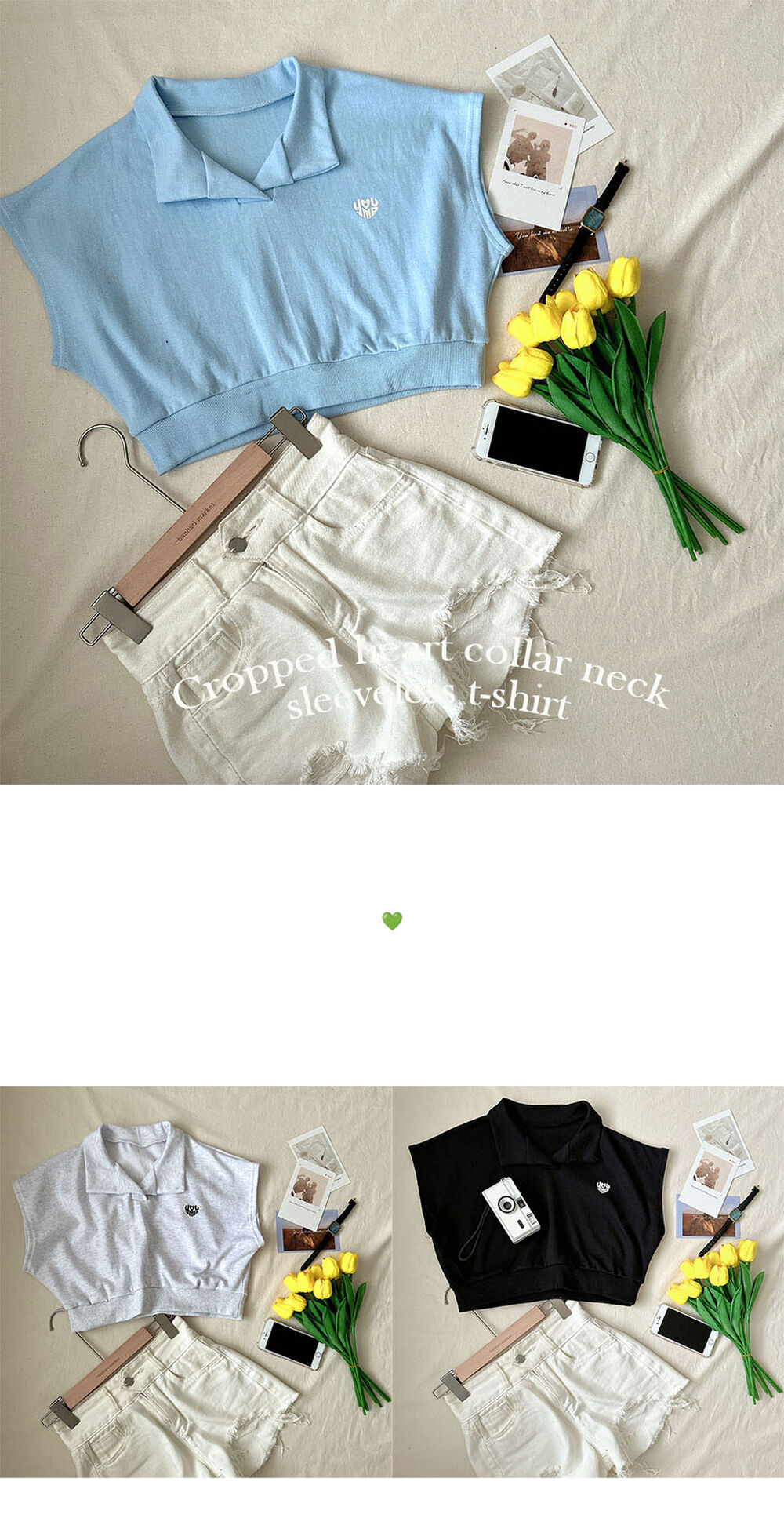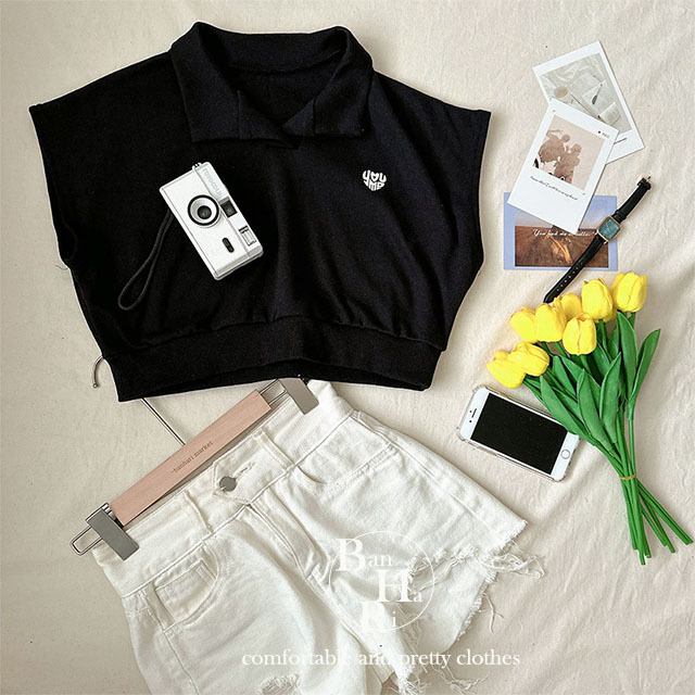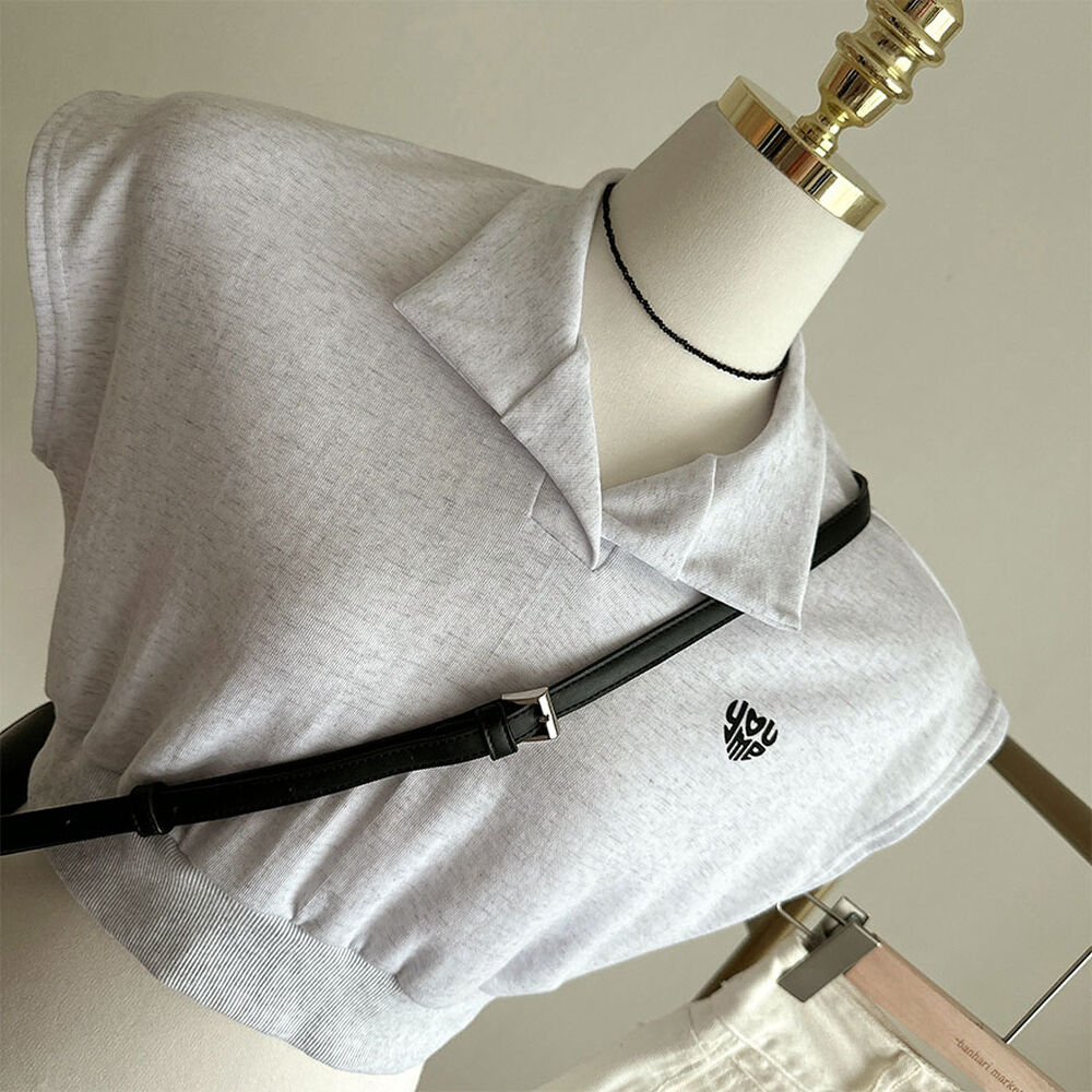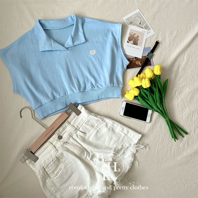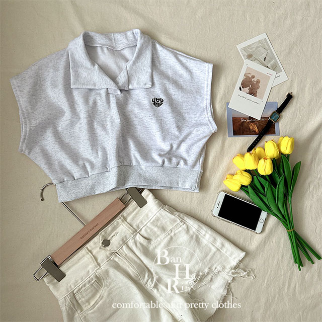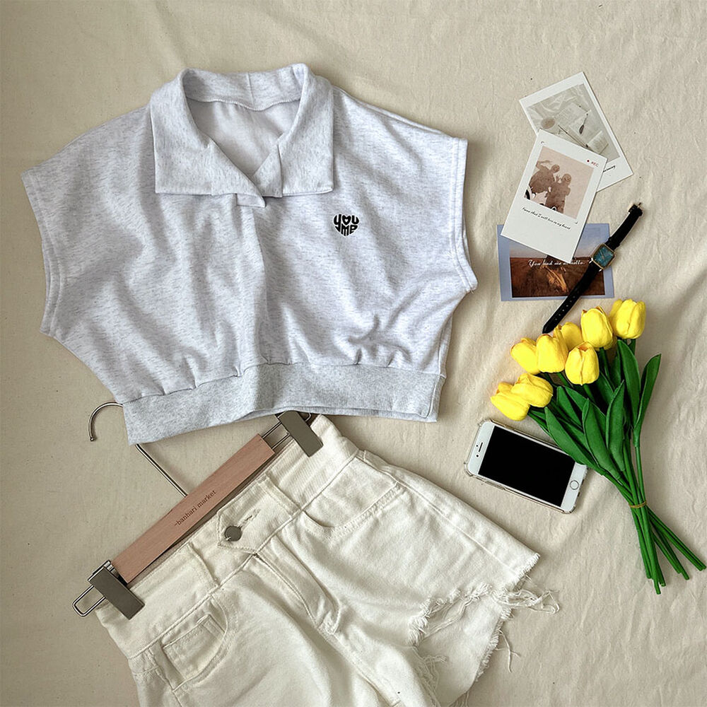 オープンカラーネッククロップドノースリーブTシャツ
