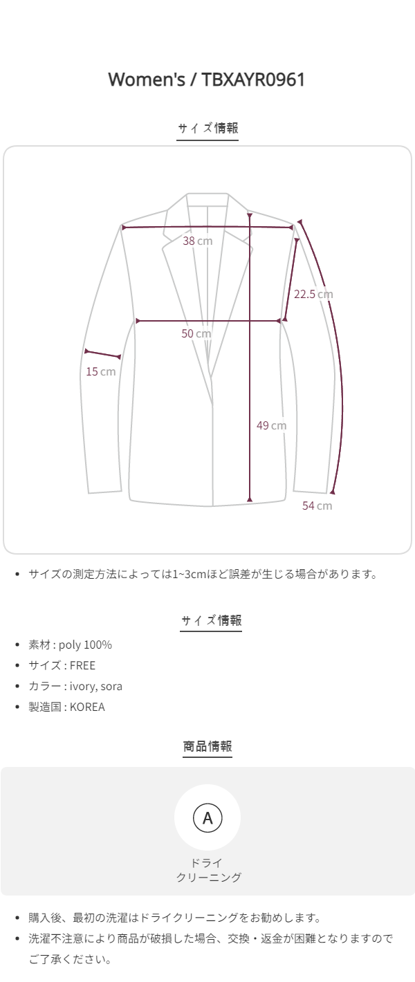 157cm / TOP 44 size / BOTTOM 26 size / 225~230mm