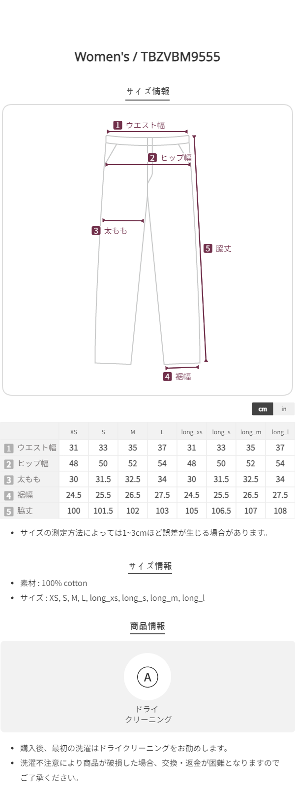 S-허리33/힙50/밑위29.5/허벅지31.5/밑단25.5/총장101.5/106.5