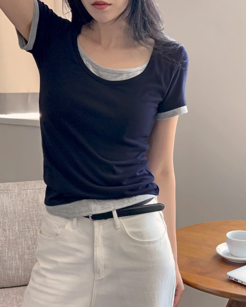 [original]スパンレイヤード一体型Tシャツ