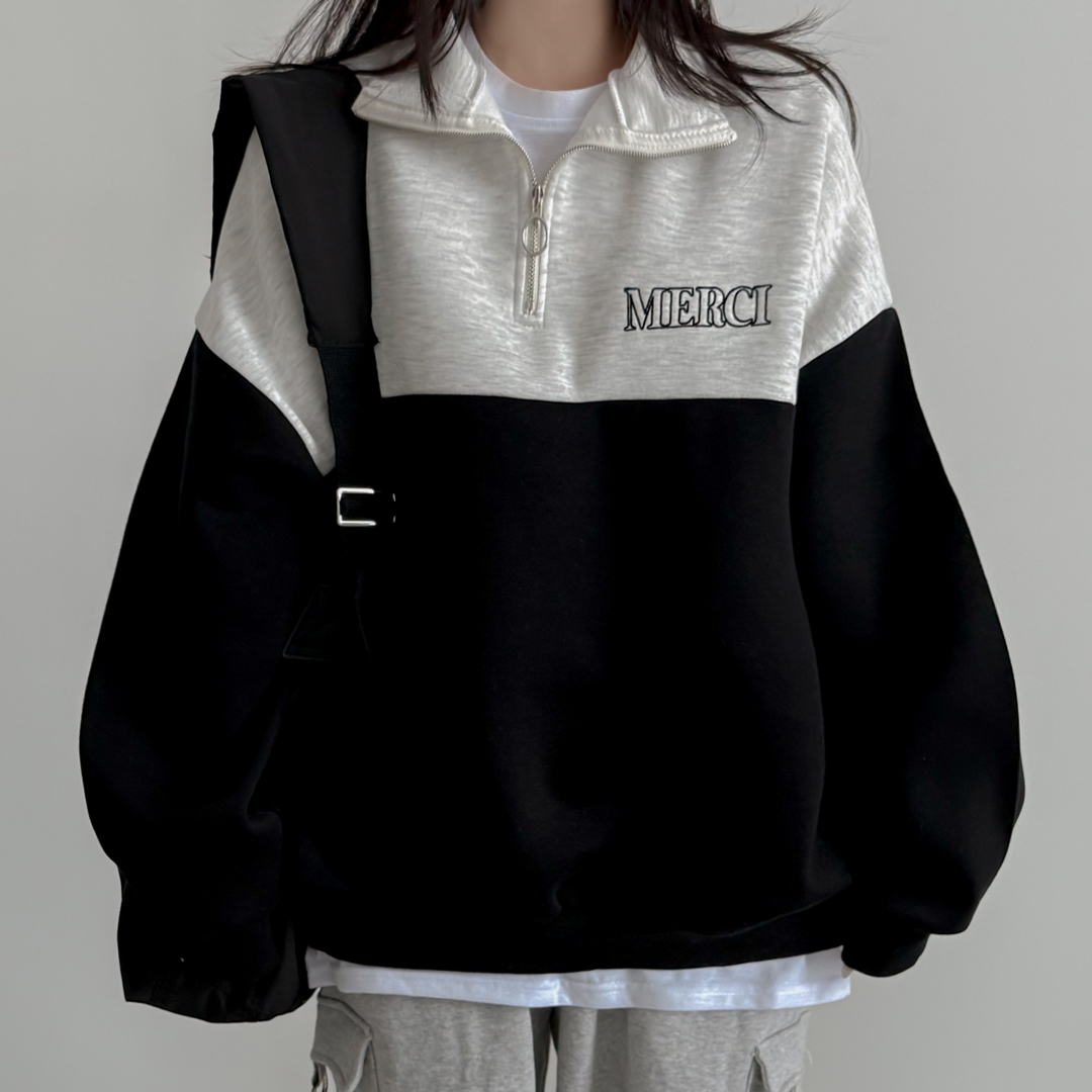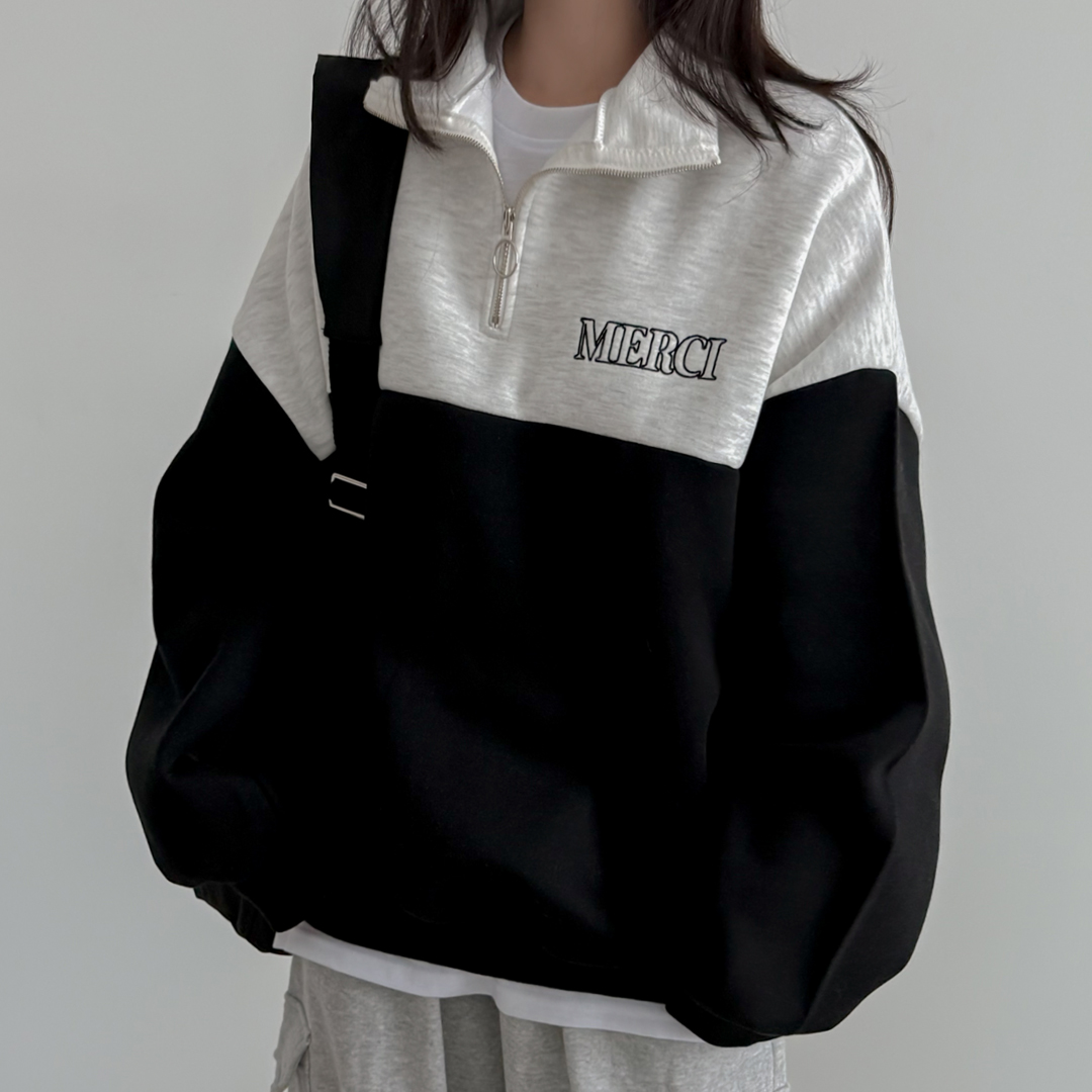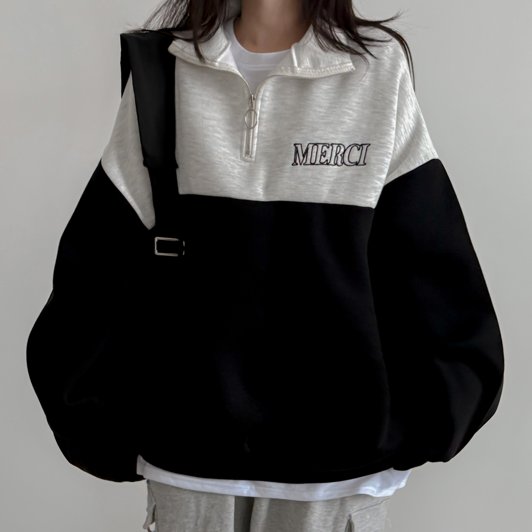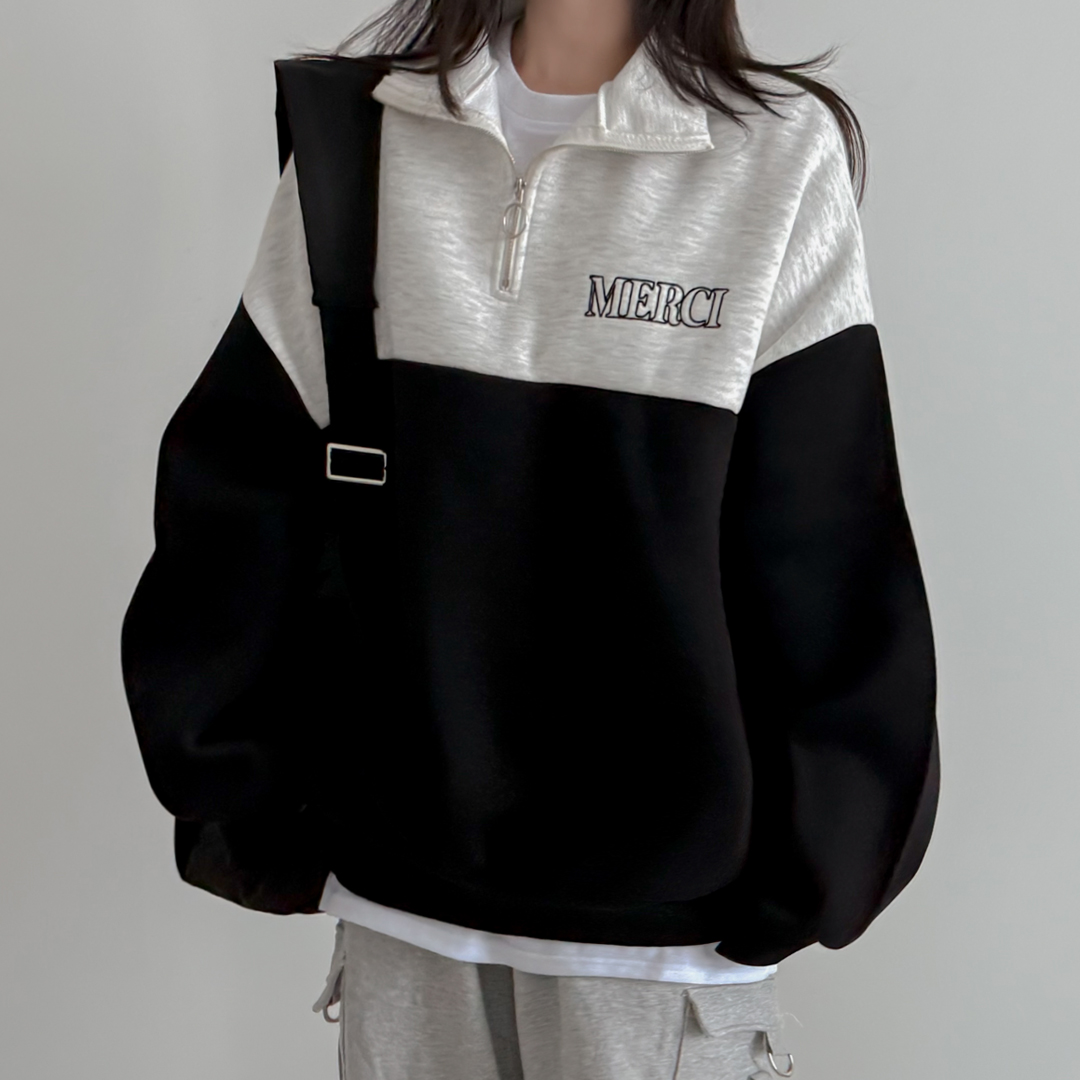 ハーフレタリングアノラックオーバーサイズスウェットシャツ