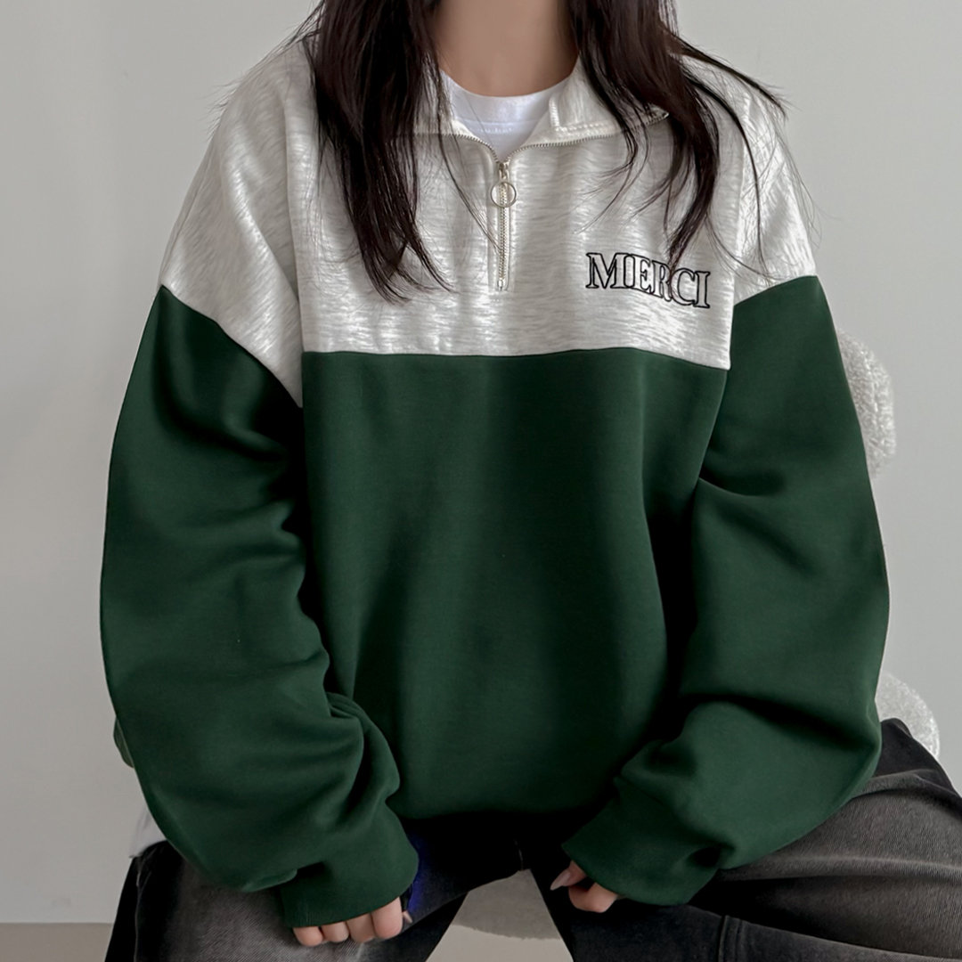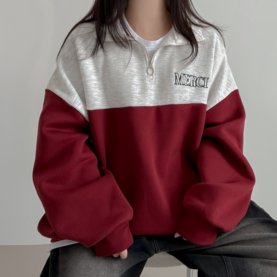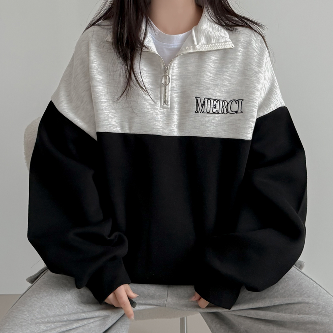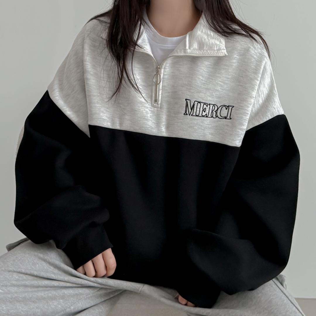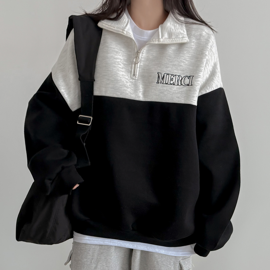 ハーフレタリングアノラックオーバーサイズスウェットシャツ