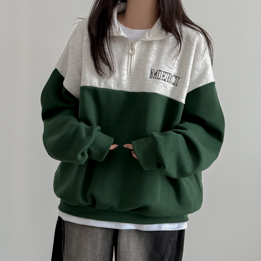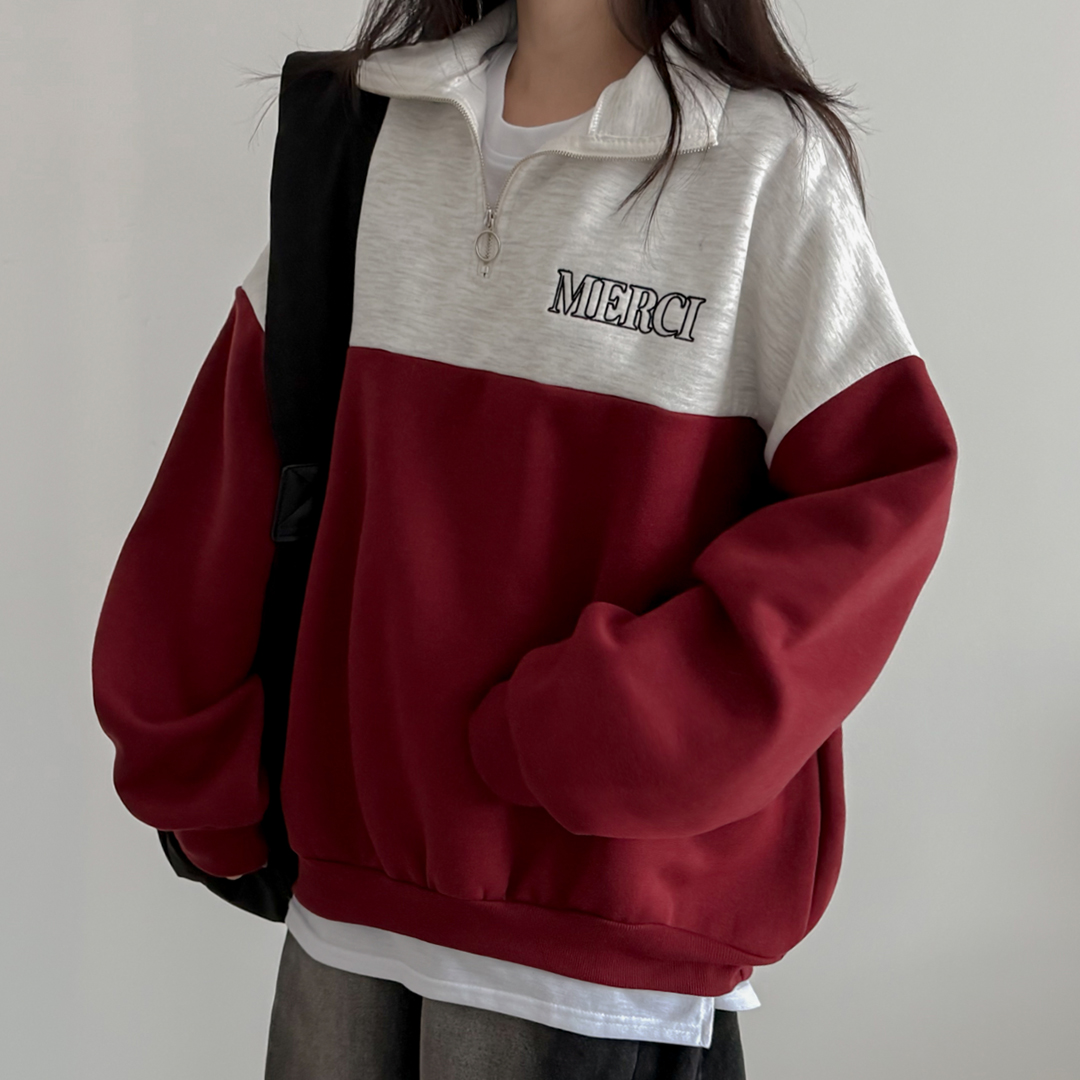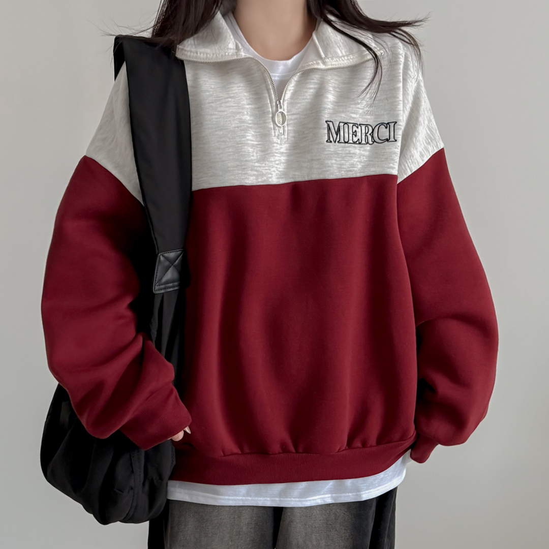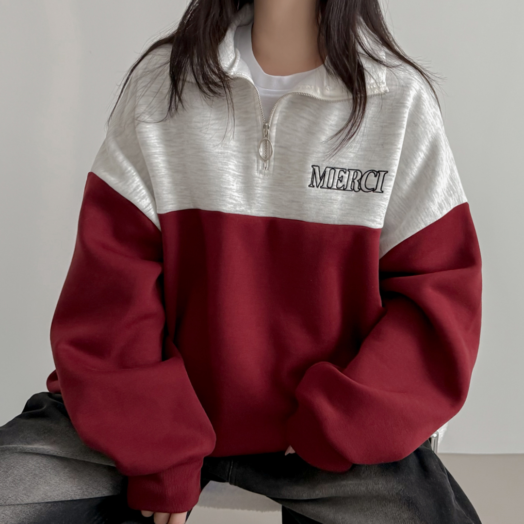 ハーフレタリングアノラックオーバーサイズスウェットシャツ
