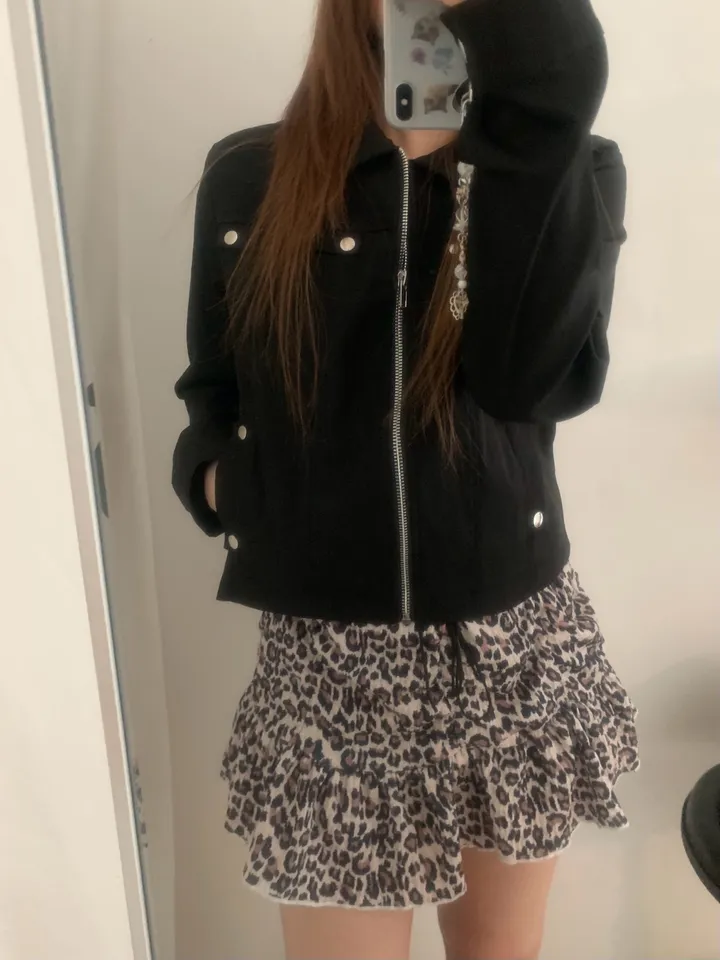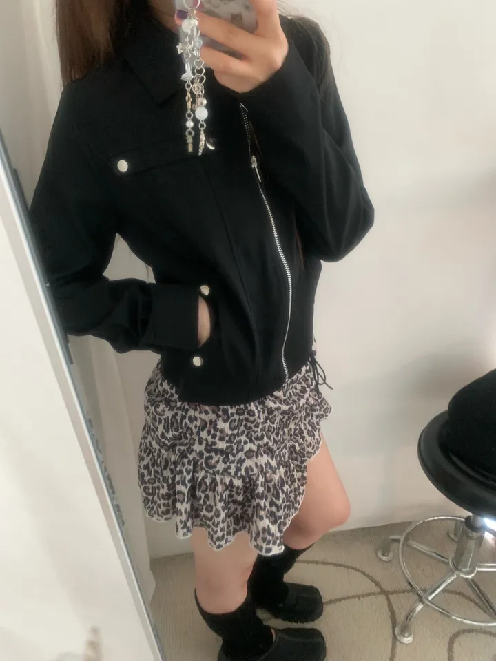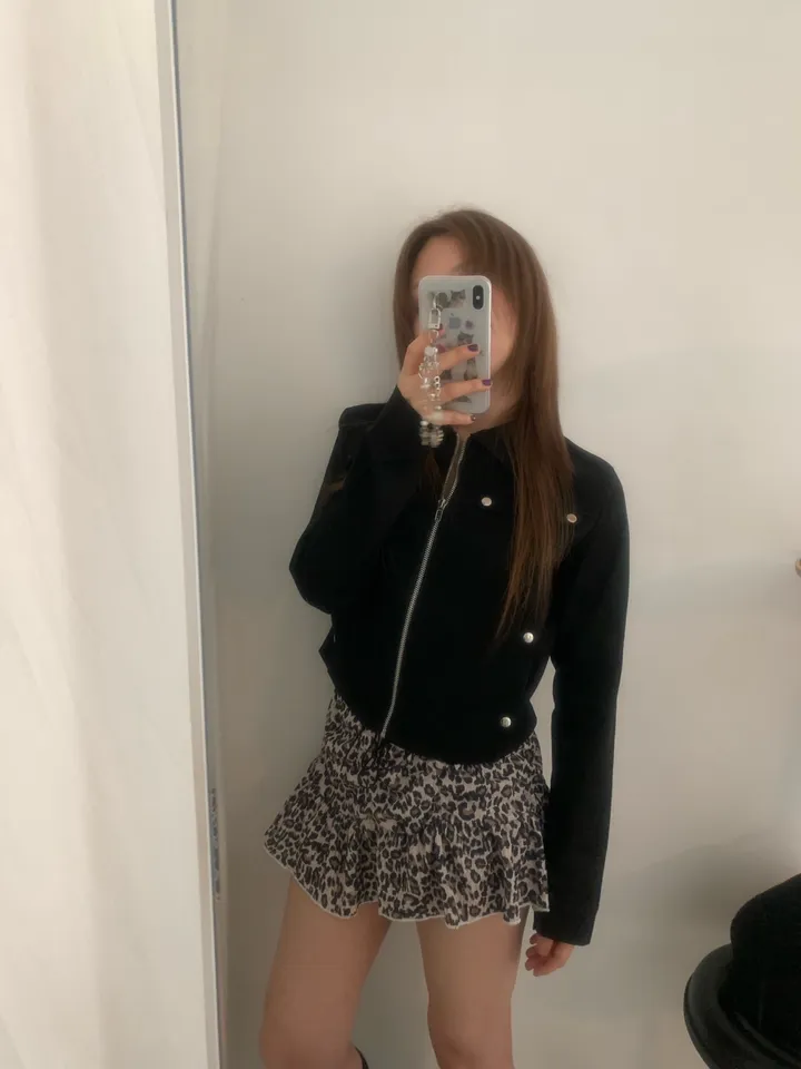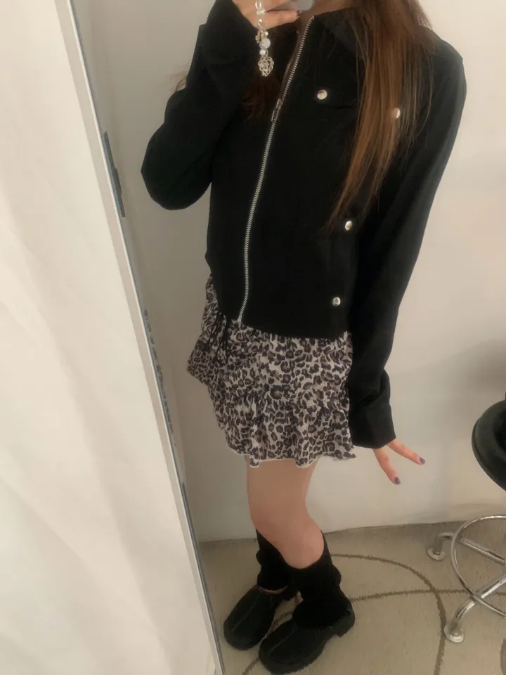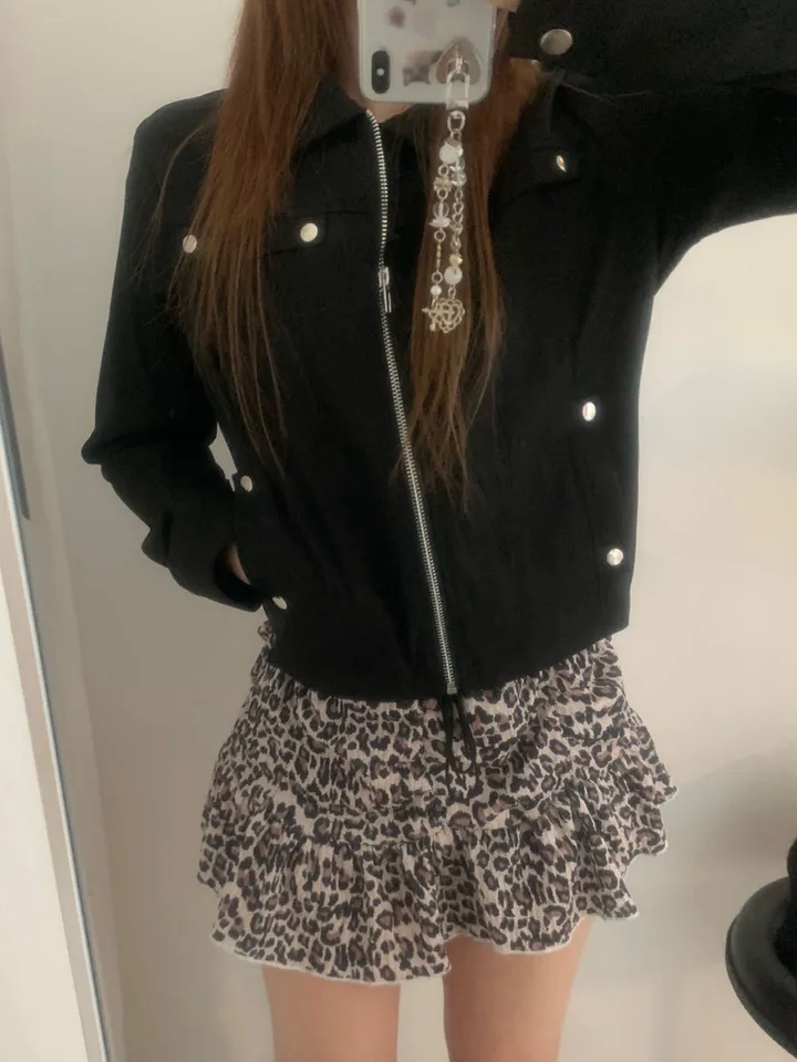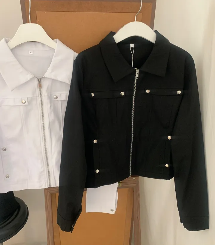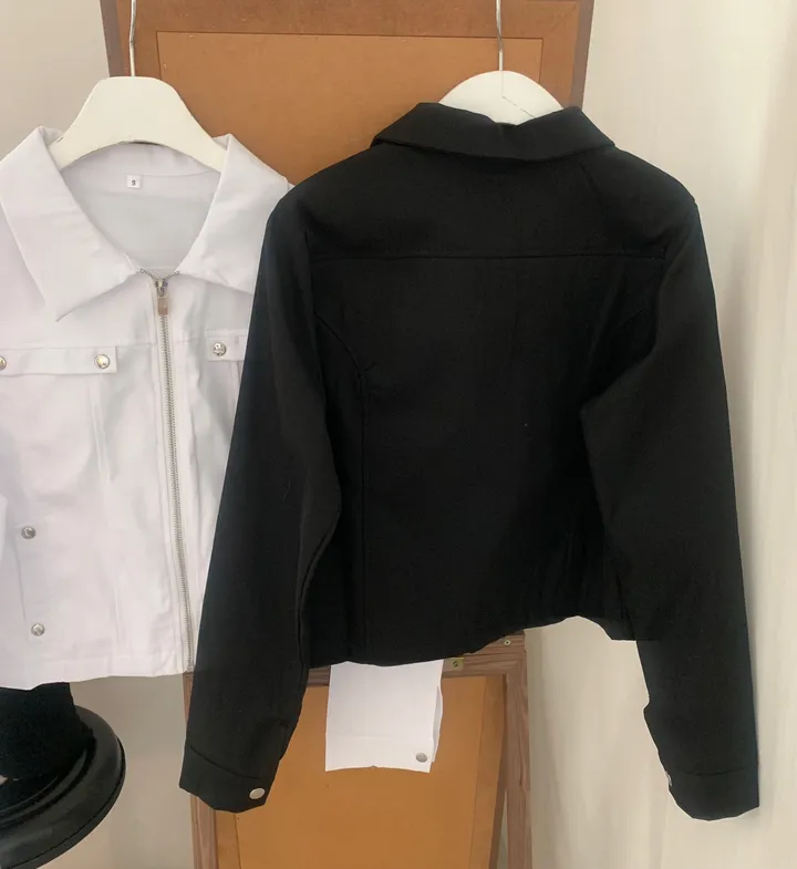 スナップボタンスタッドカラーオープンクロップドジャケット