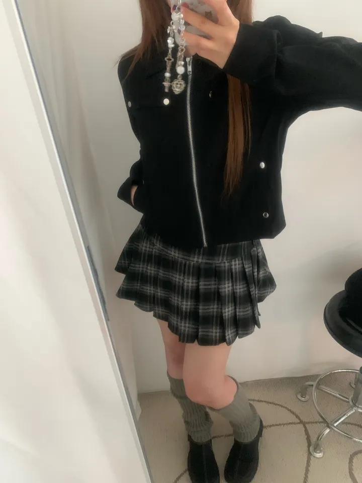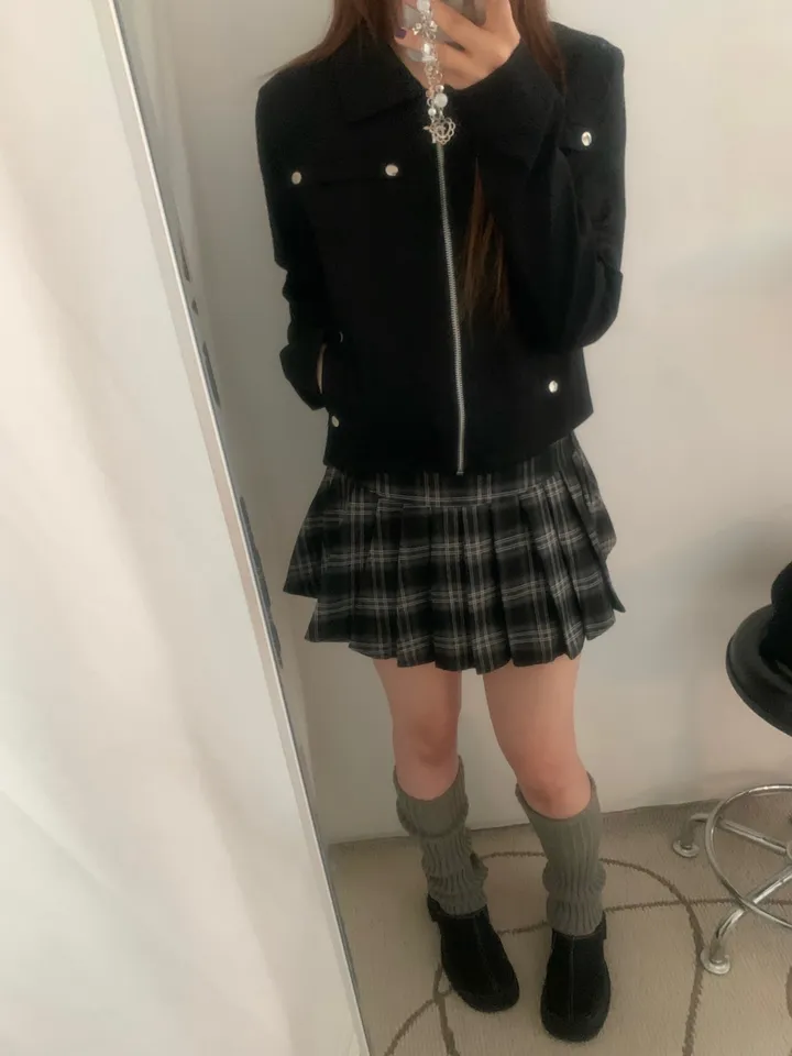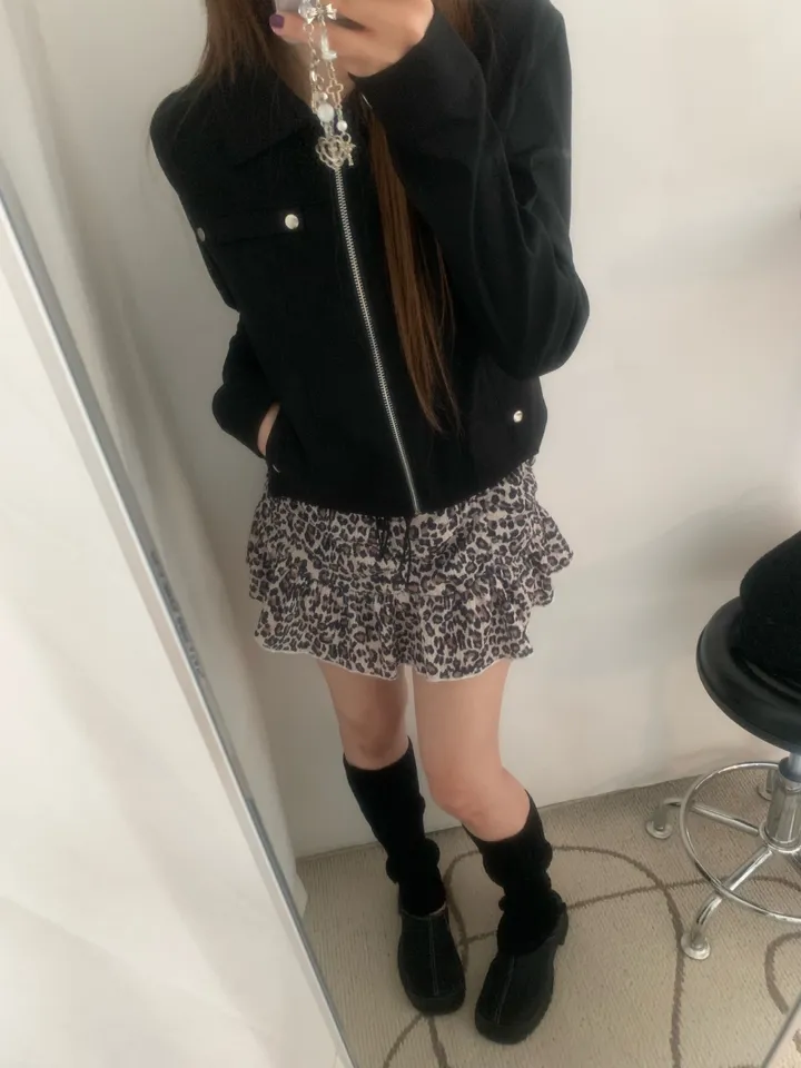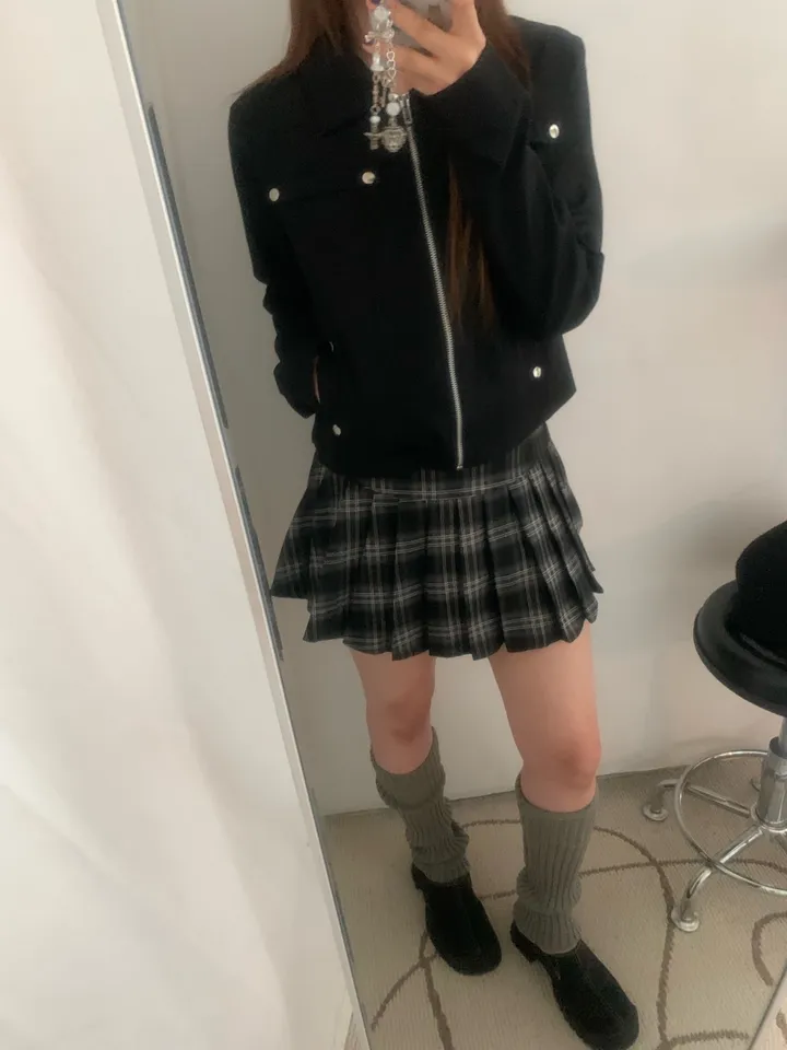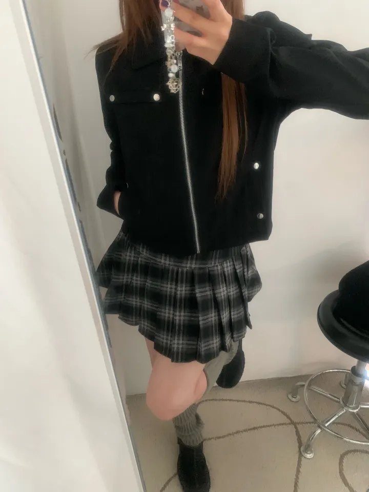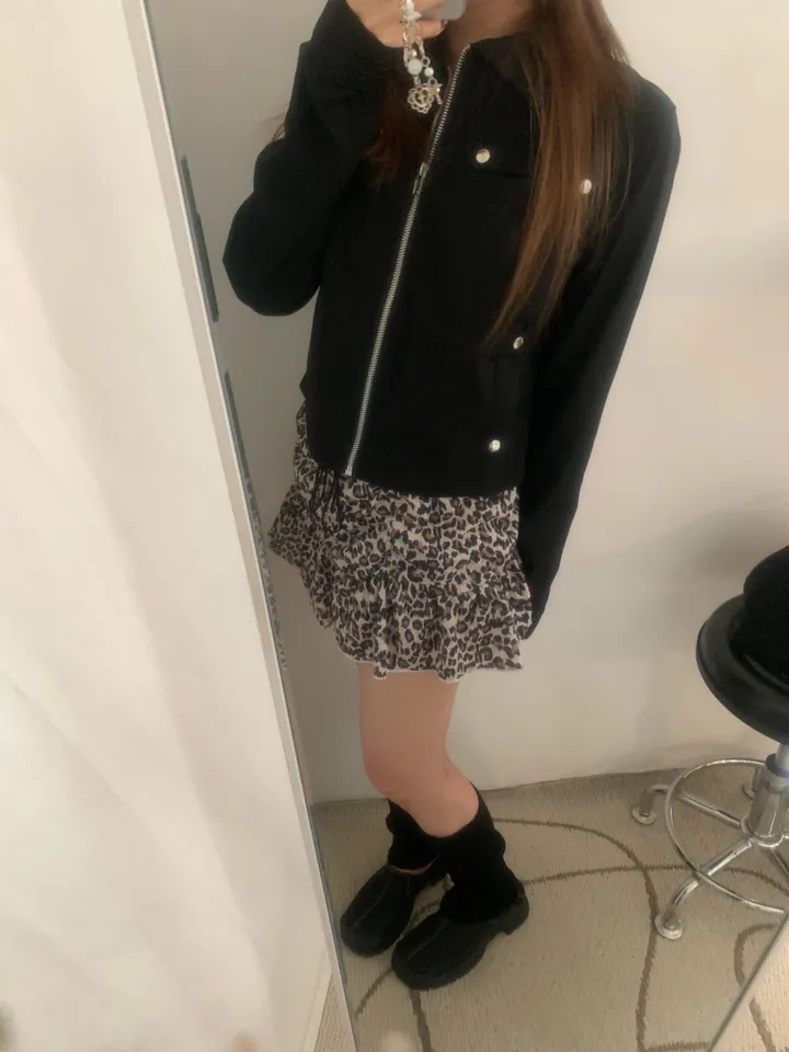 スナップボタンスタッドカラーオープンクロップドジャケット