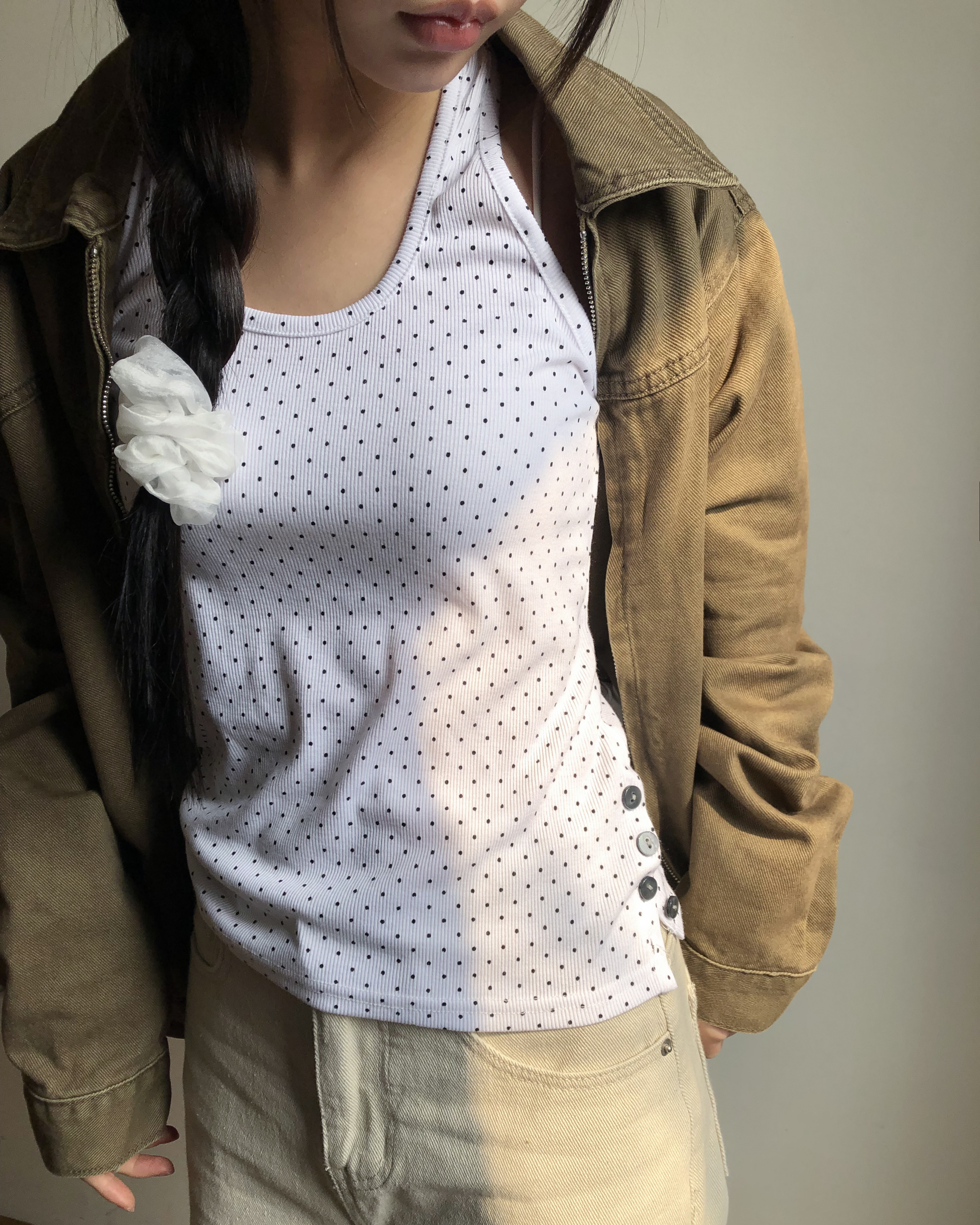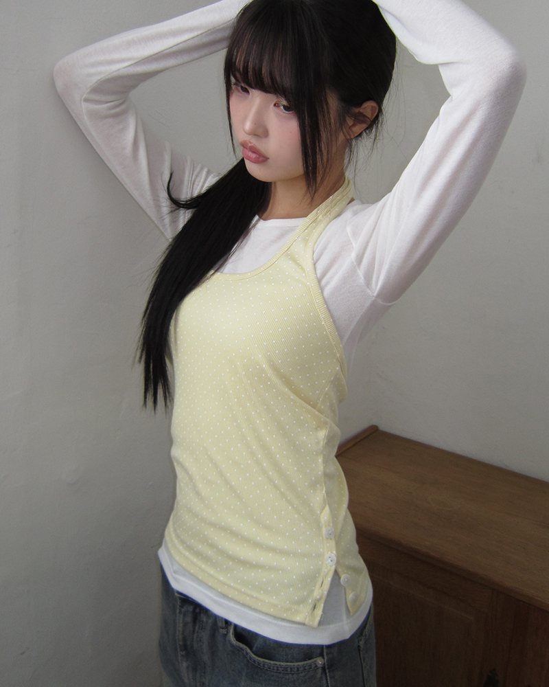 ドット柄ホールターネックキャミソール