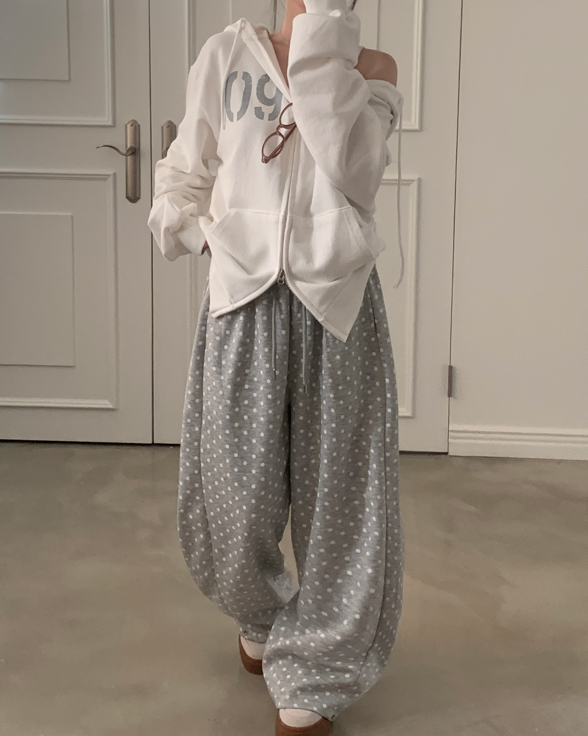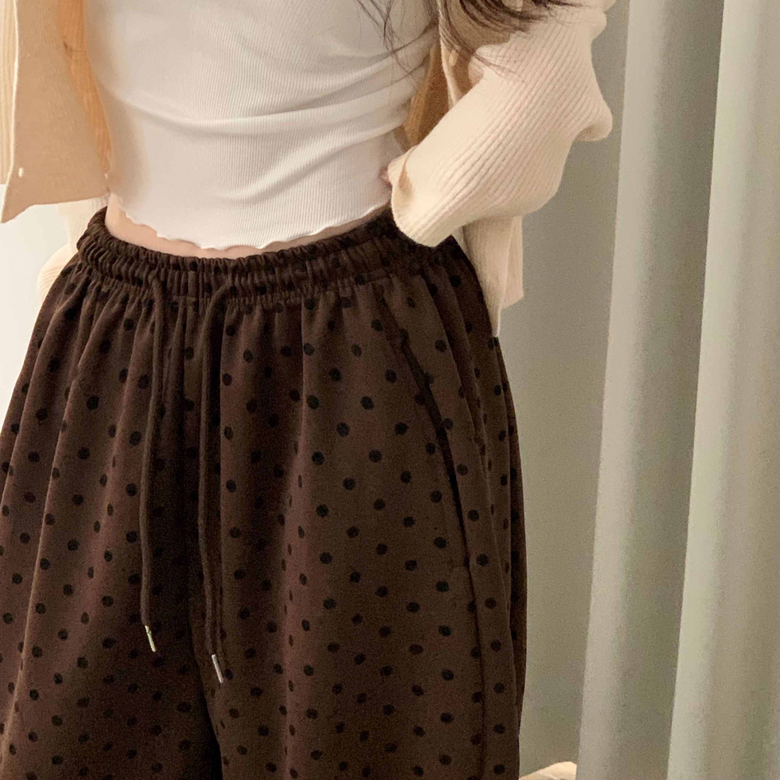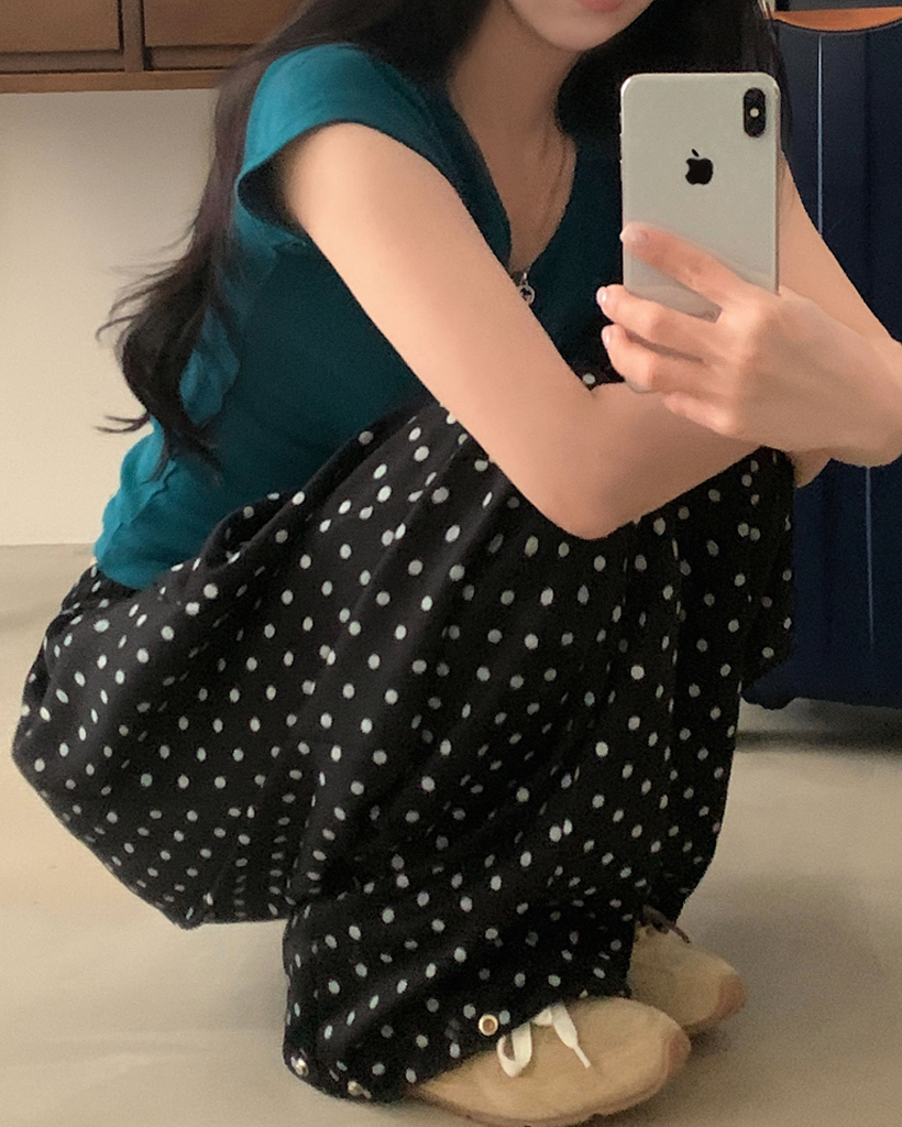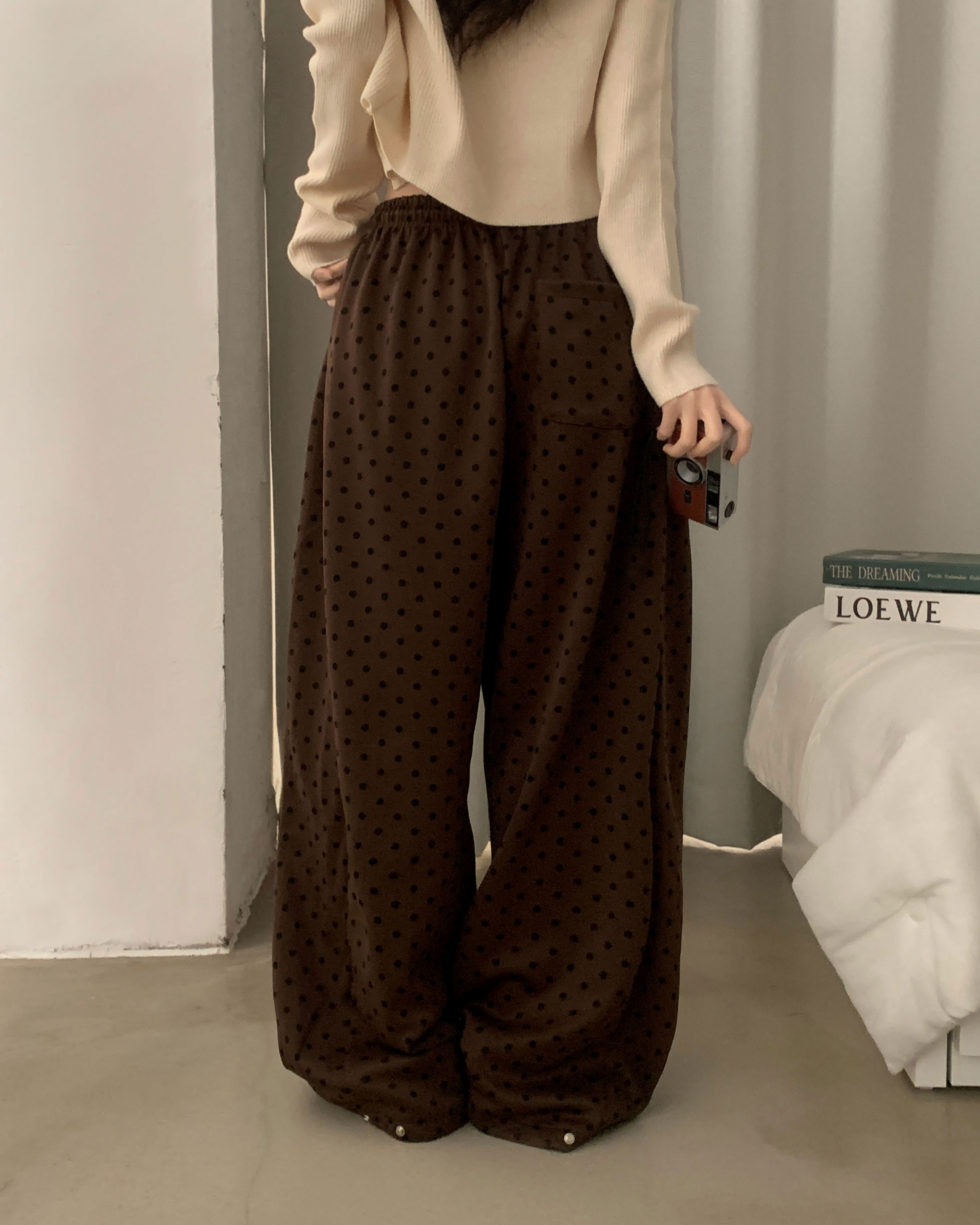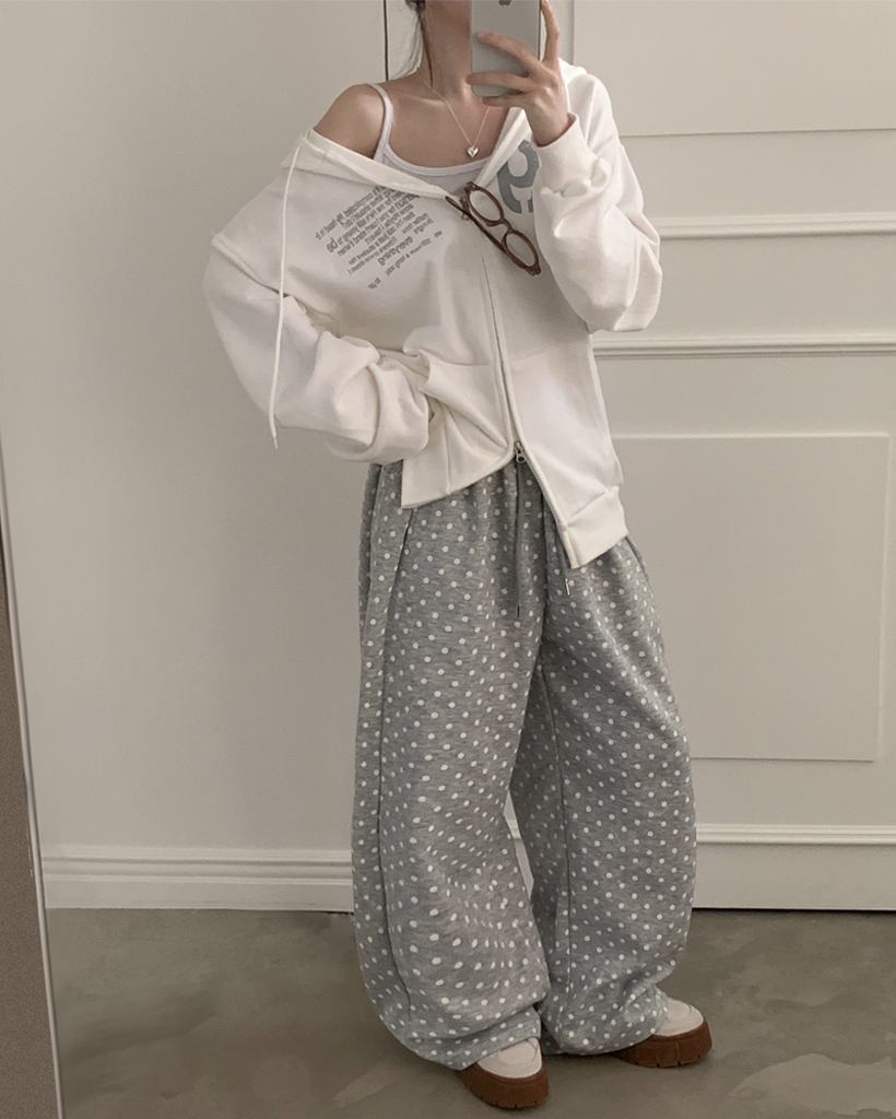 (4color) ドット ワイド スウェット パンツ