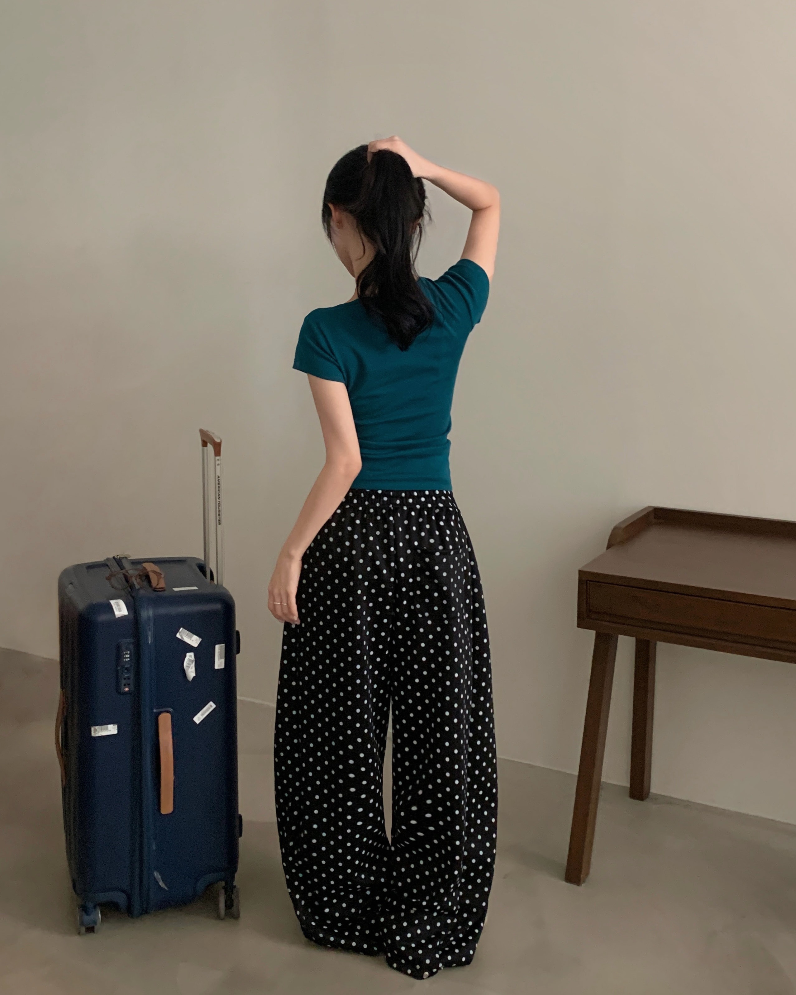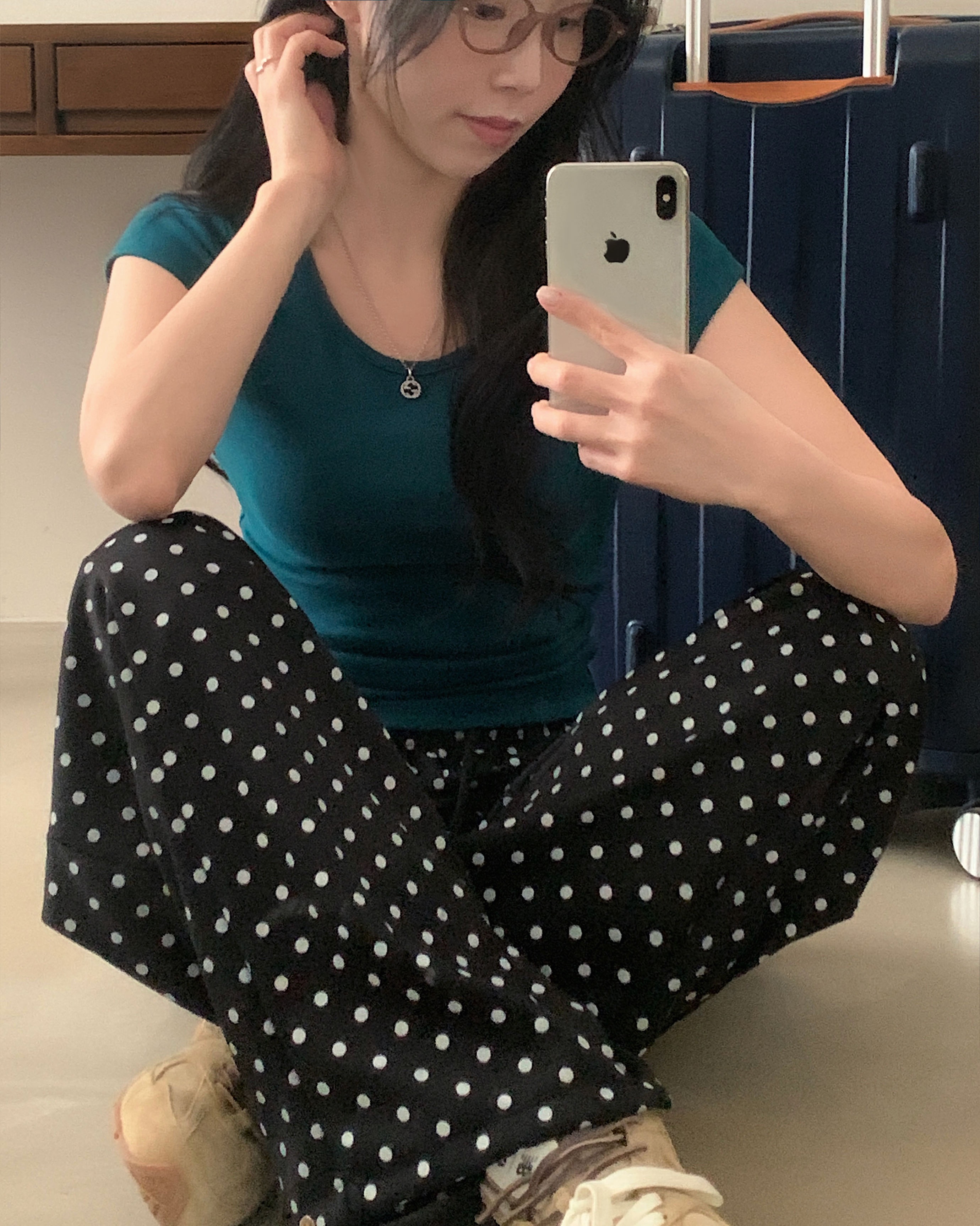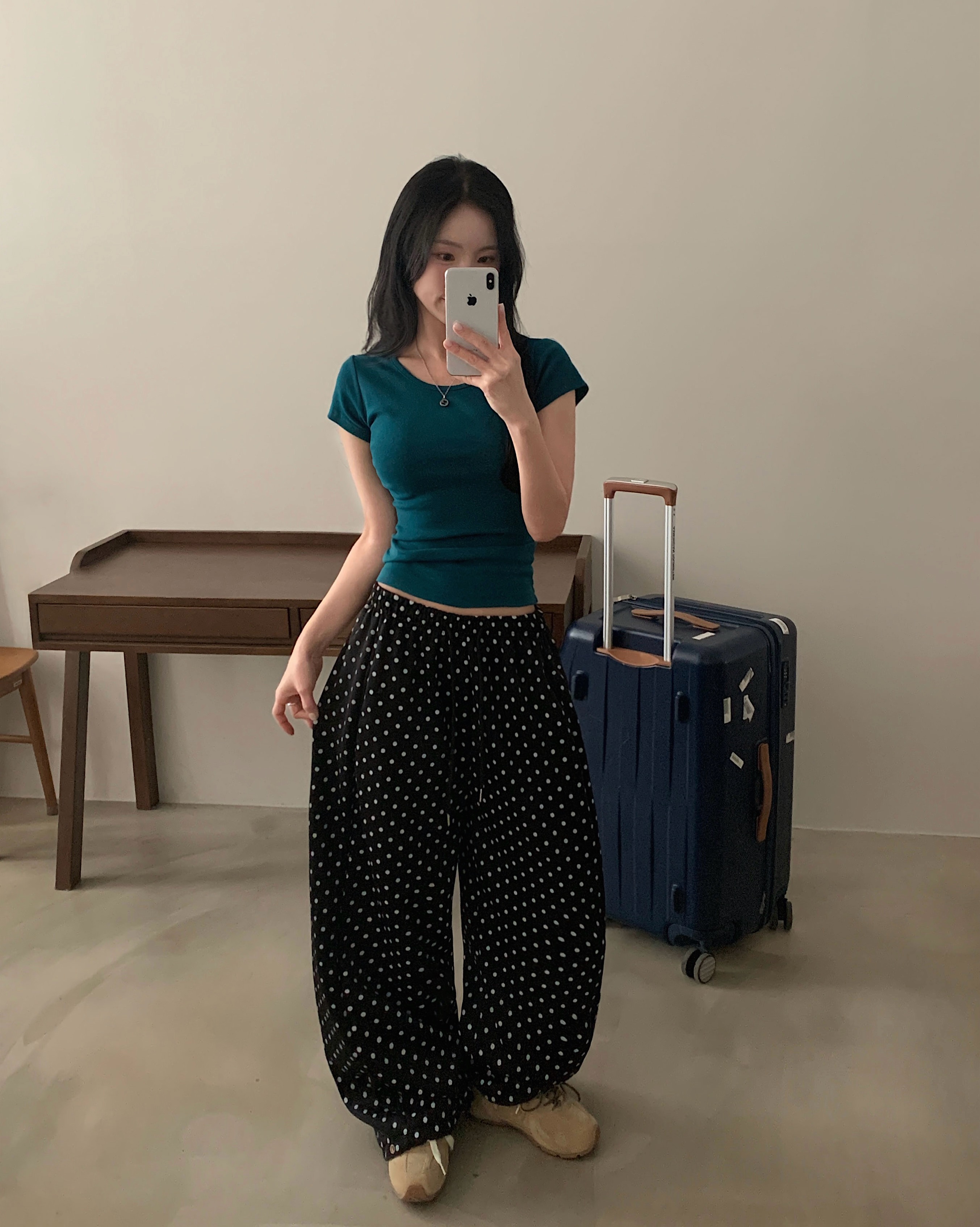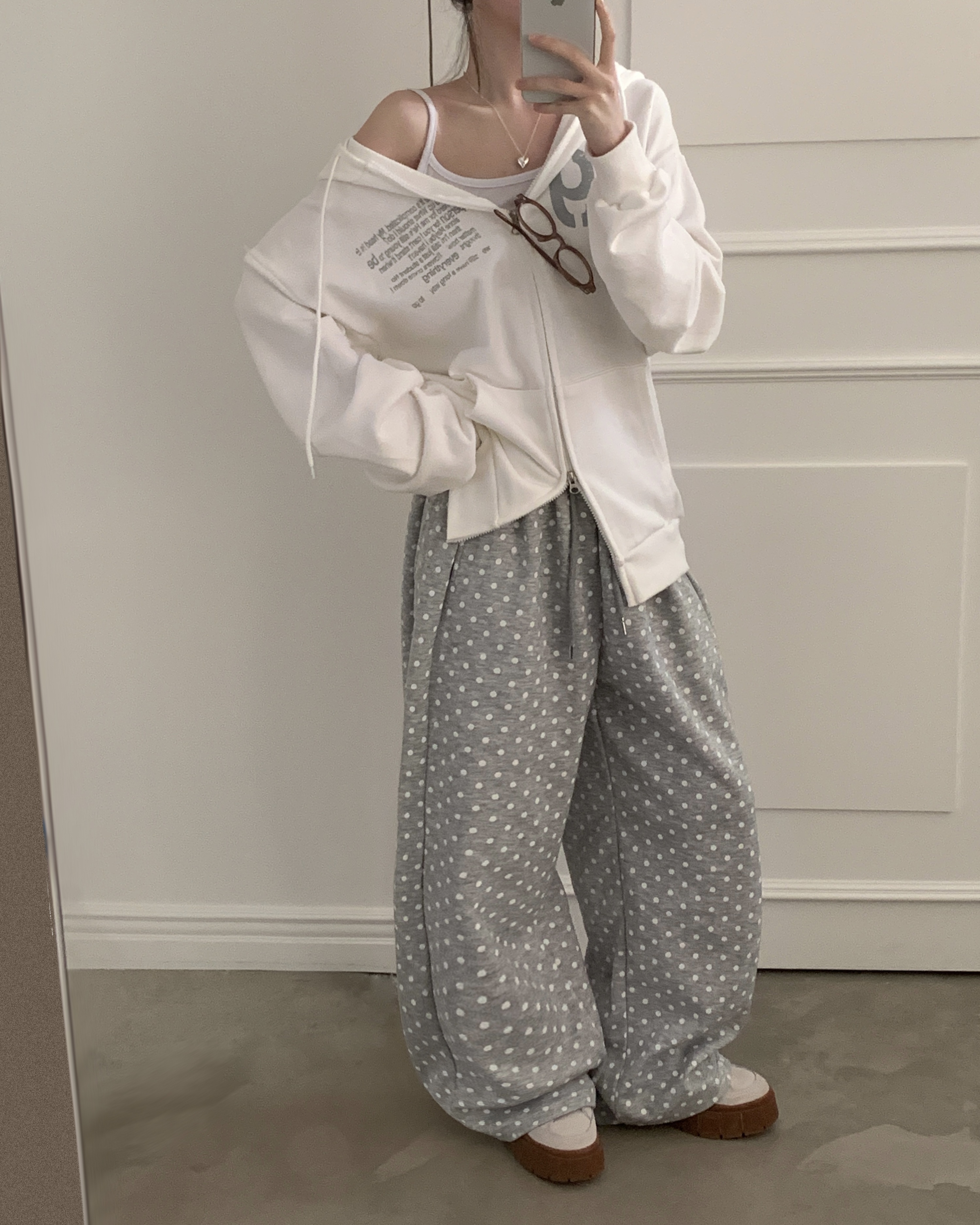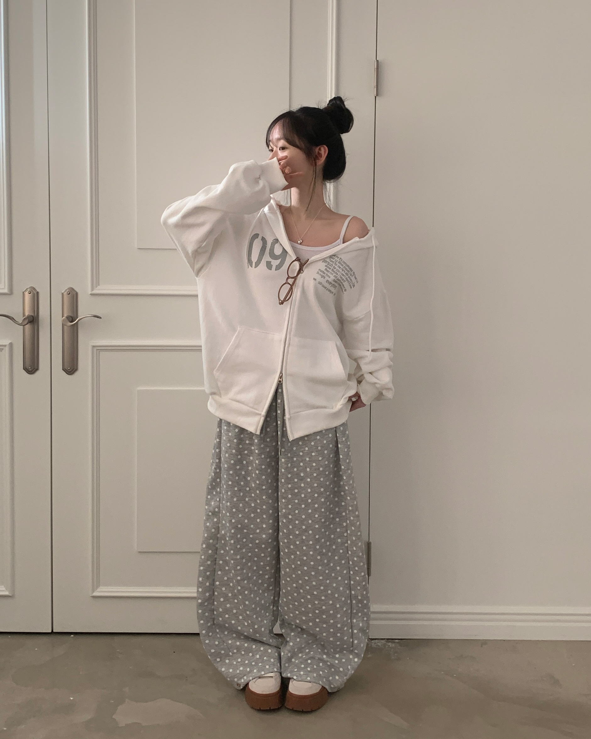 (4color) ドット ワイド スウェット パンツ
