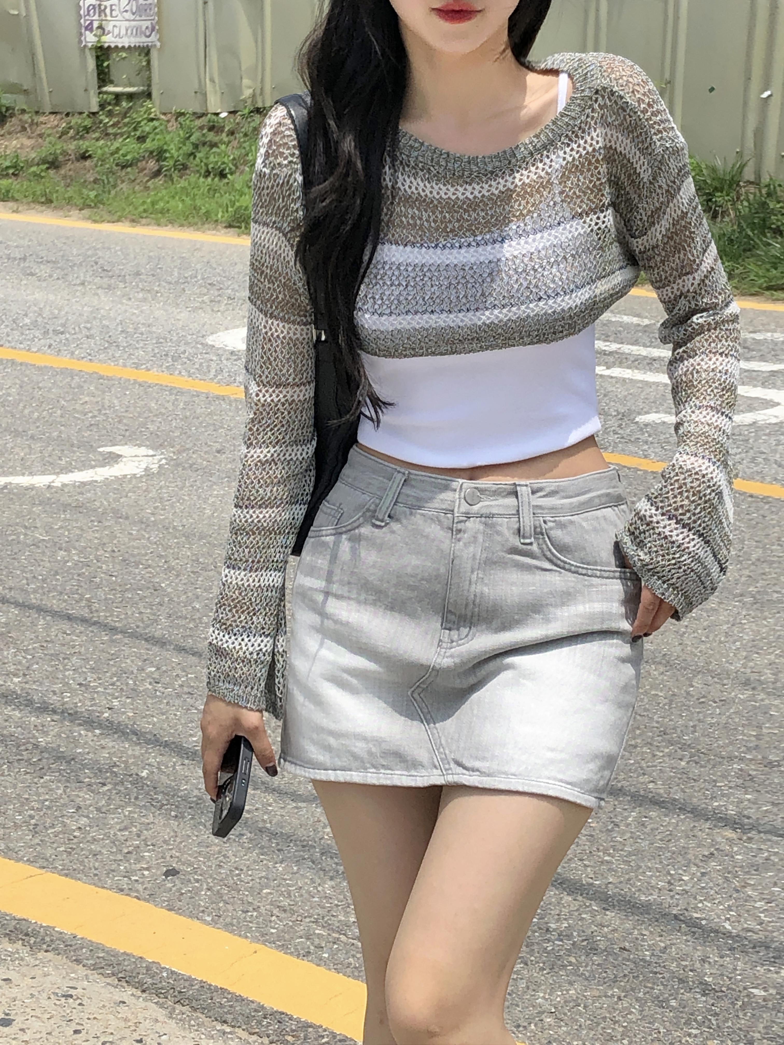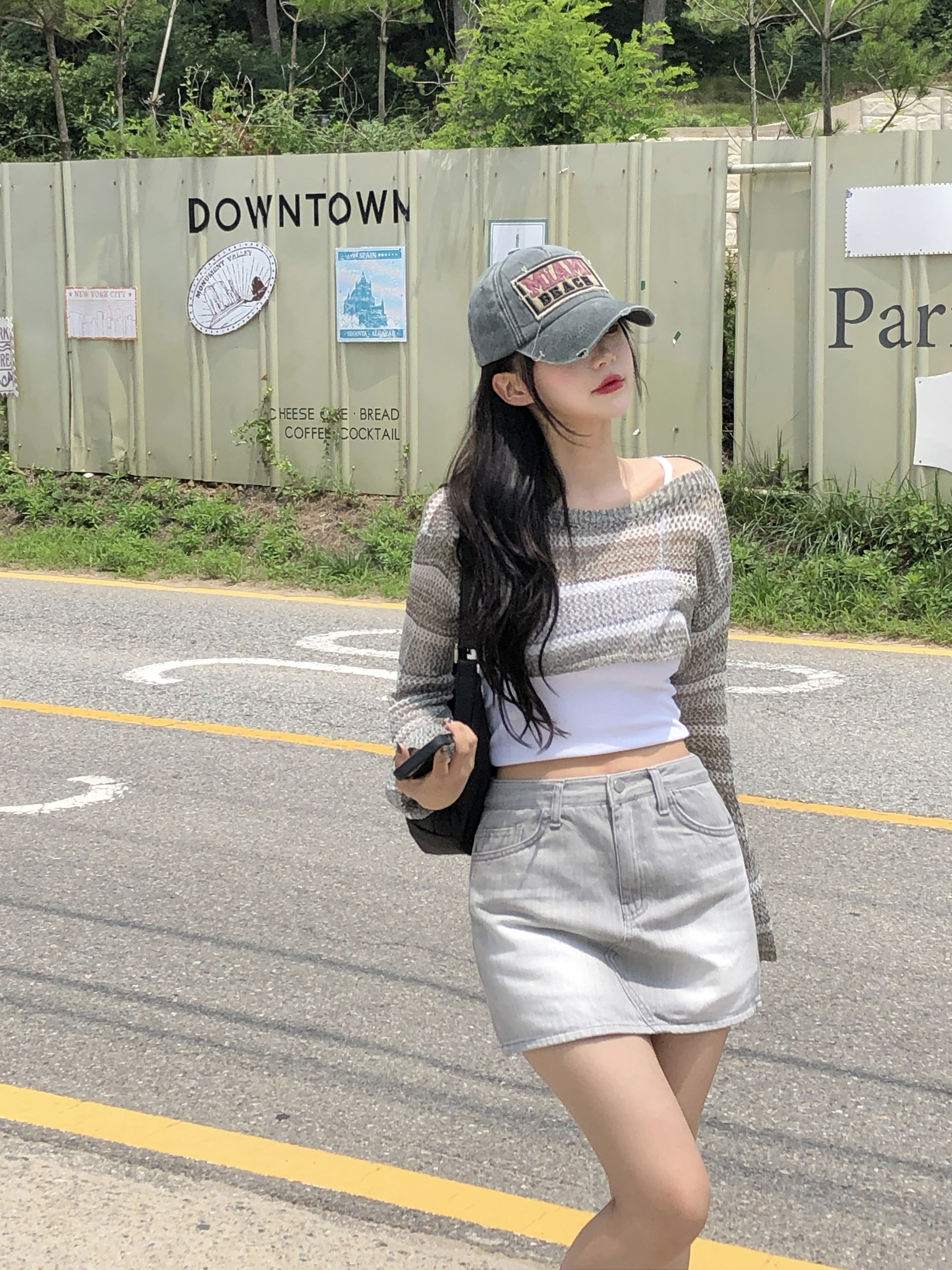 세이디 스트라이프 볼레로 크롭니트 (카키)