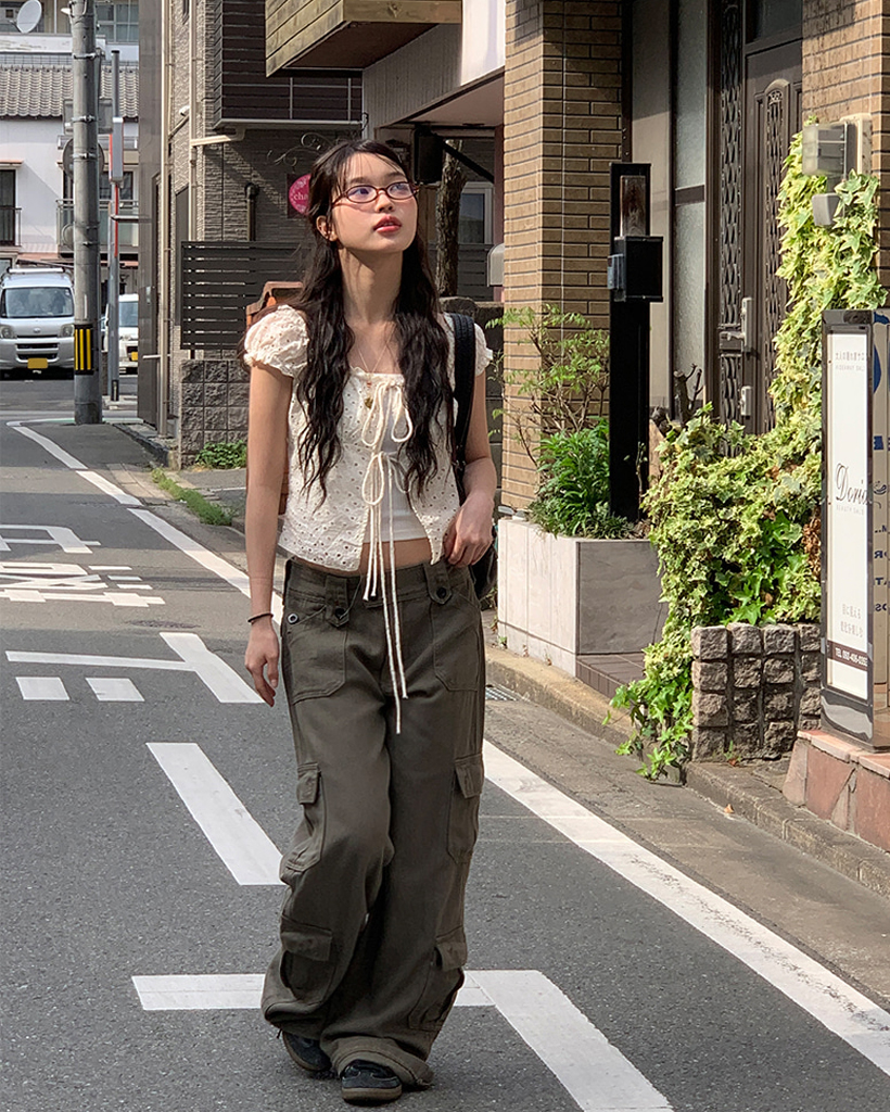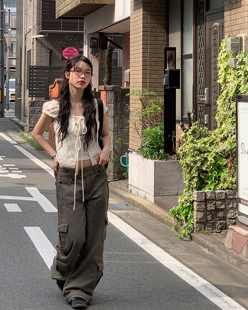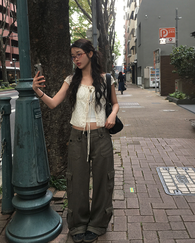 [モデル絶賛] Y2Kフラップポケットカーゴワイドパンツ (2color)