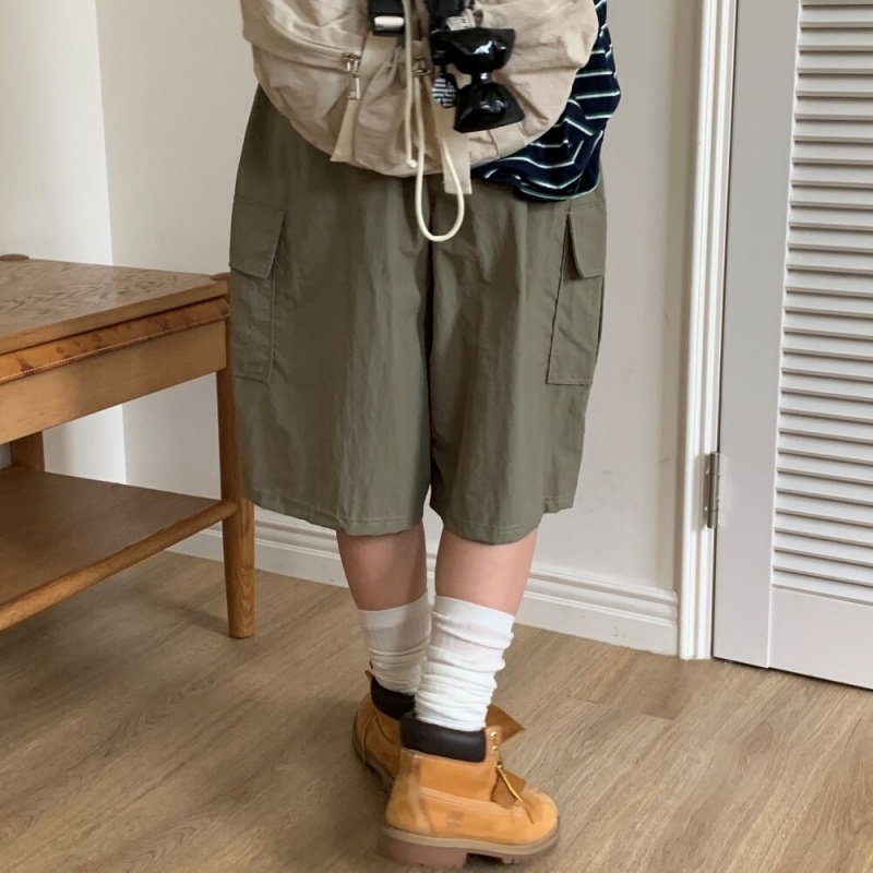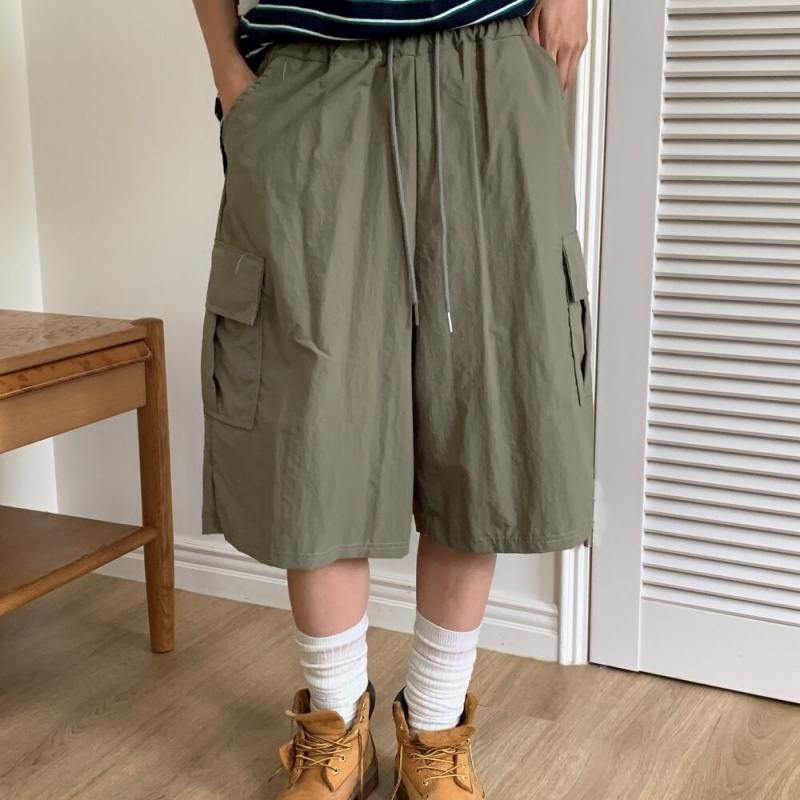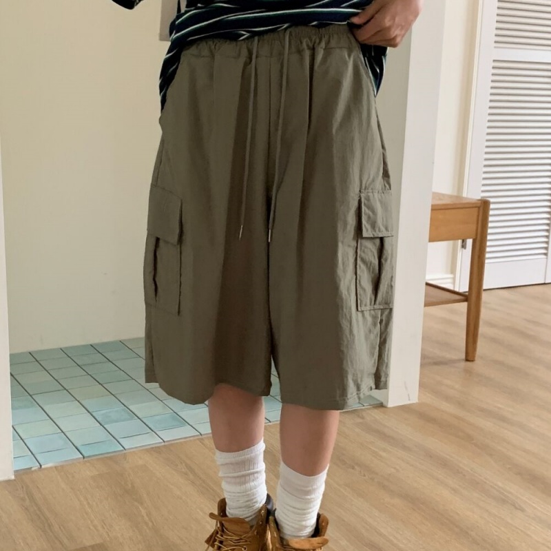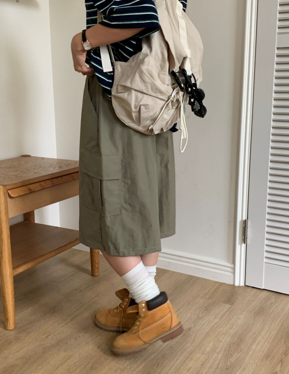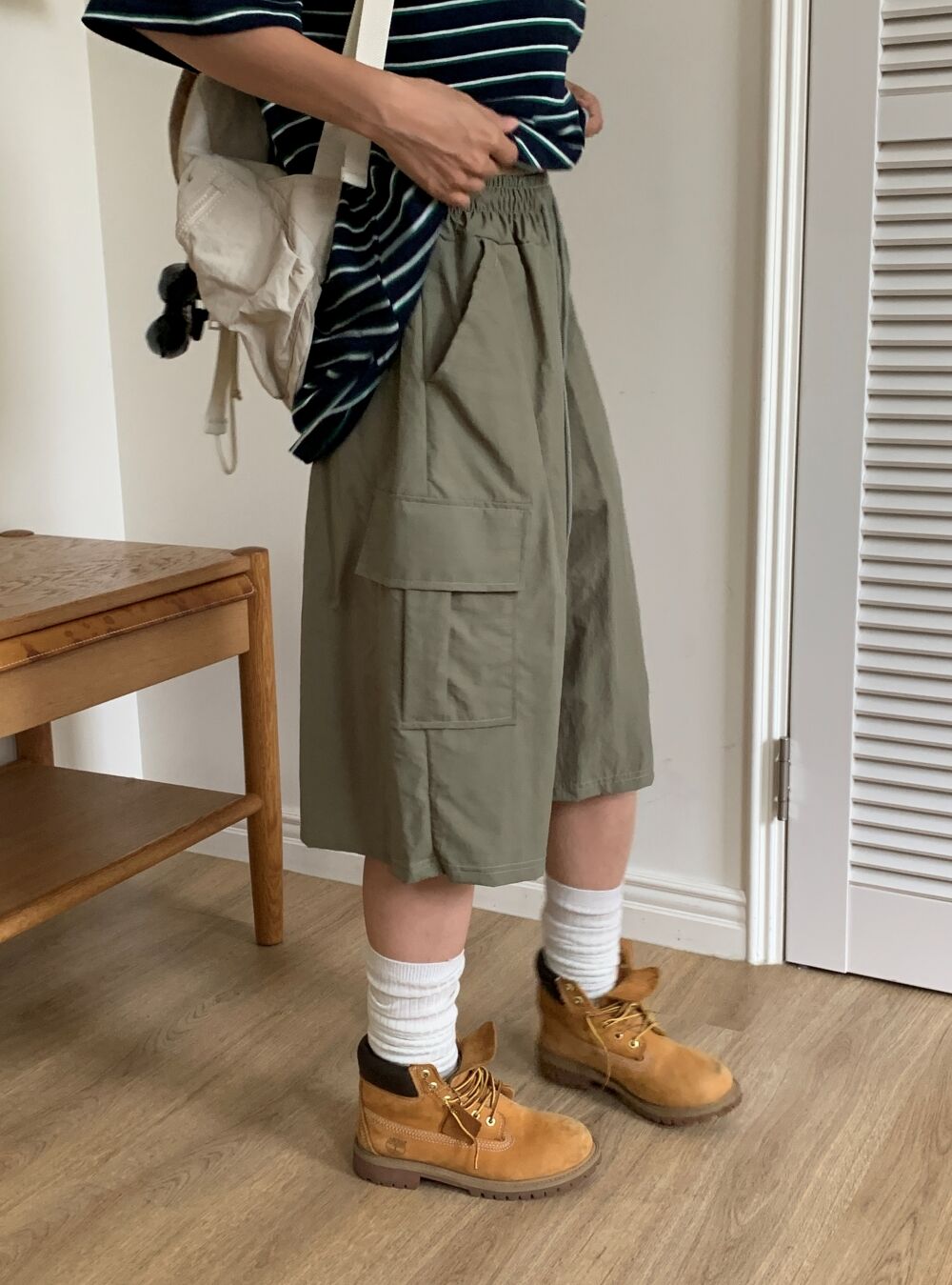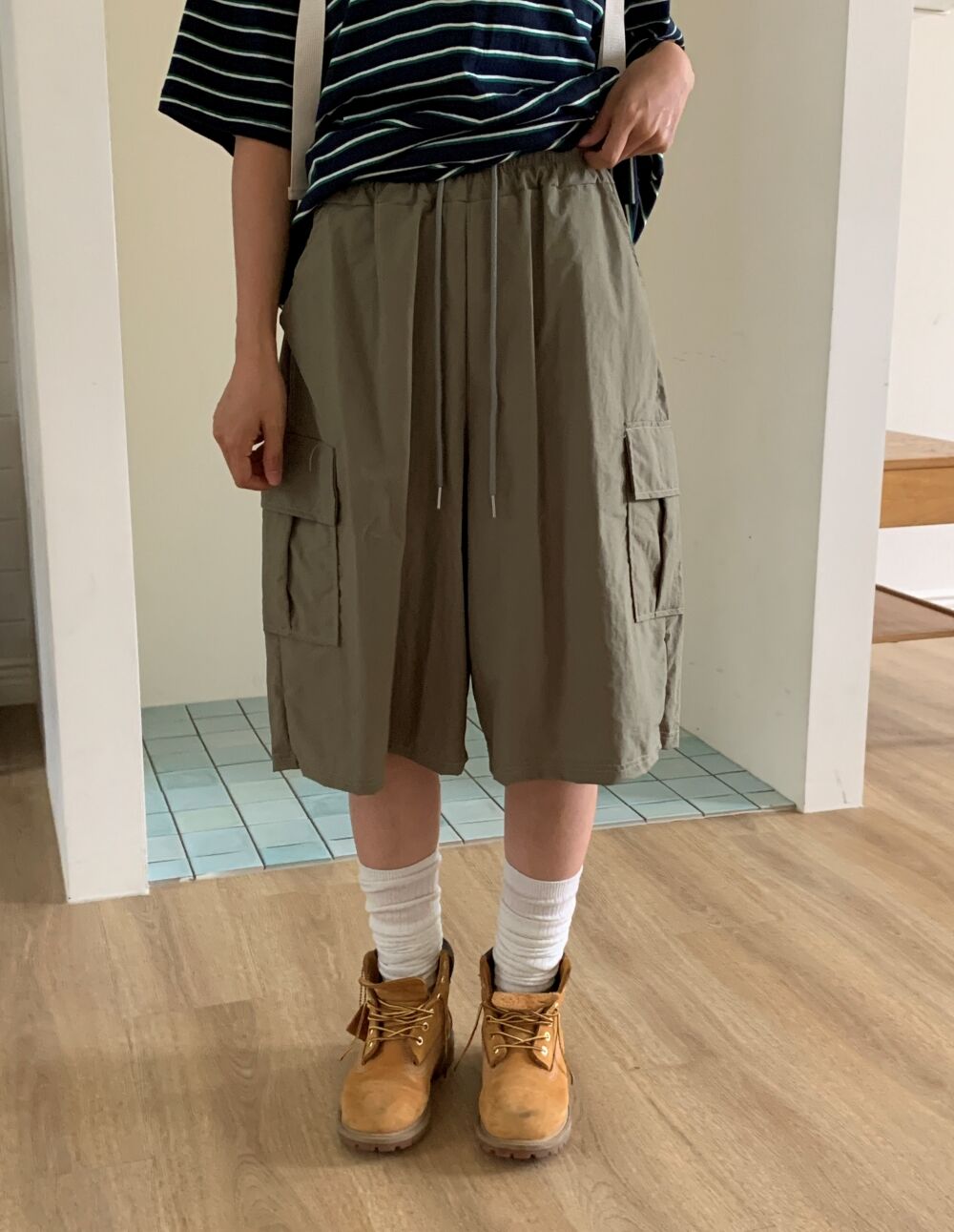 ウエストゴムカーゴナイロンワイドショートパンツ/ハーフパンツ