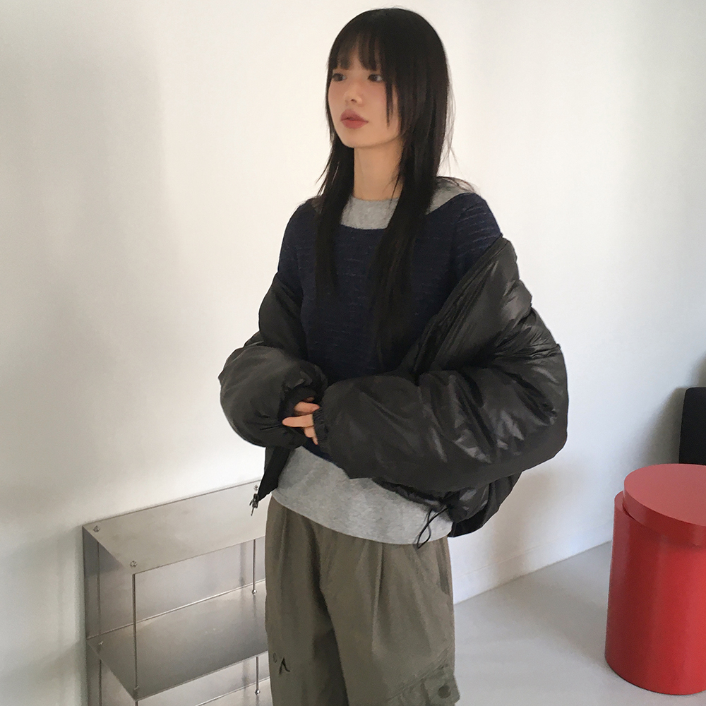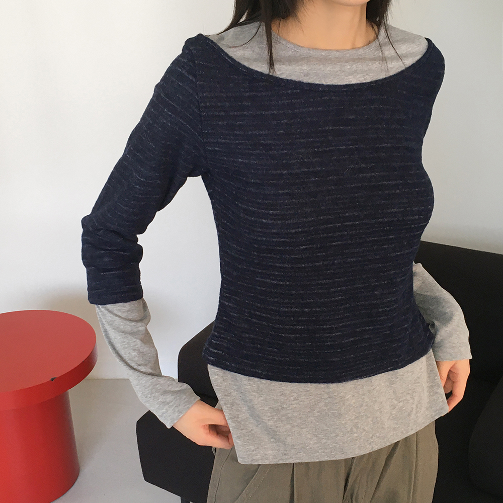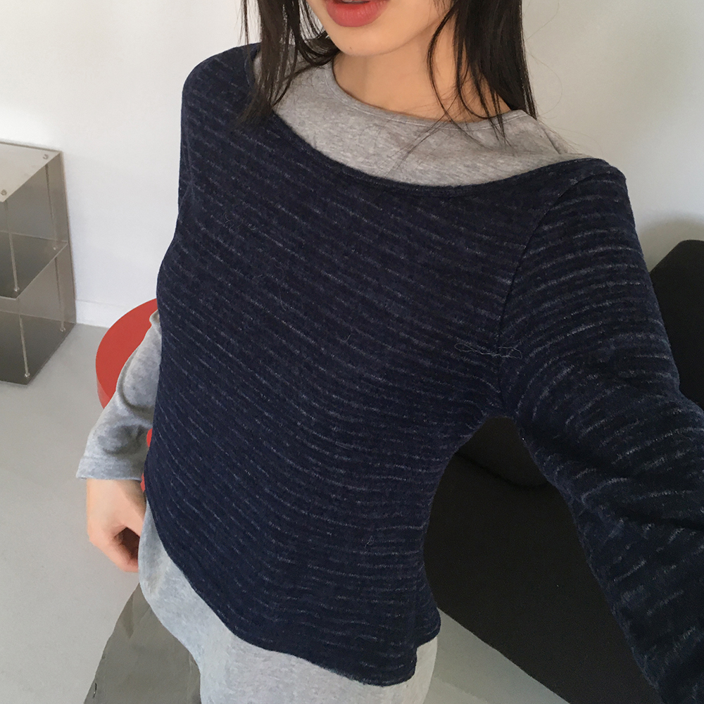 表起毛ストライプレイヤードフリース
