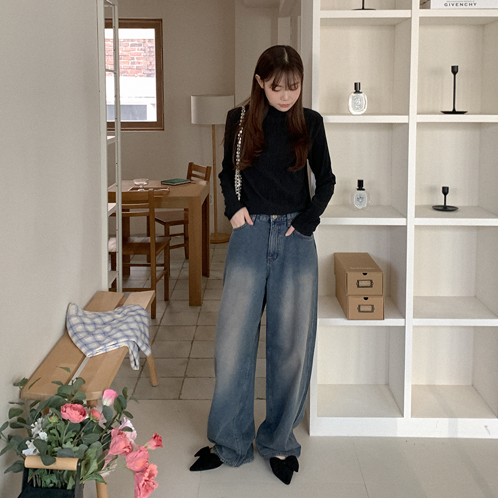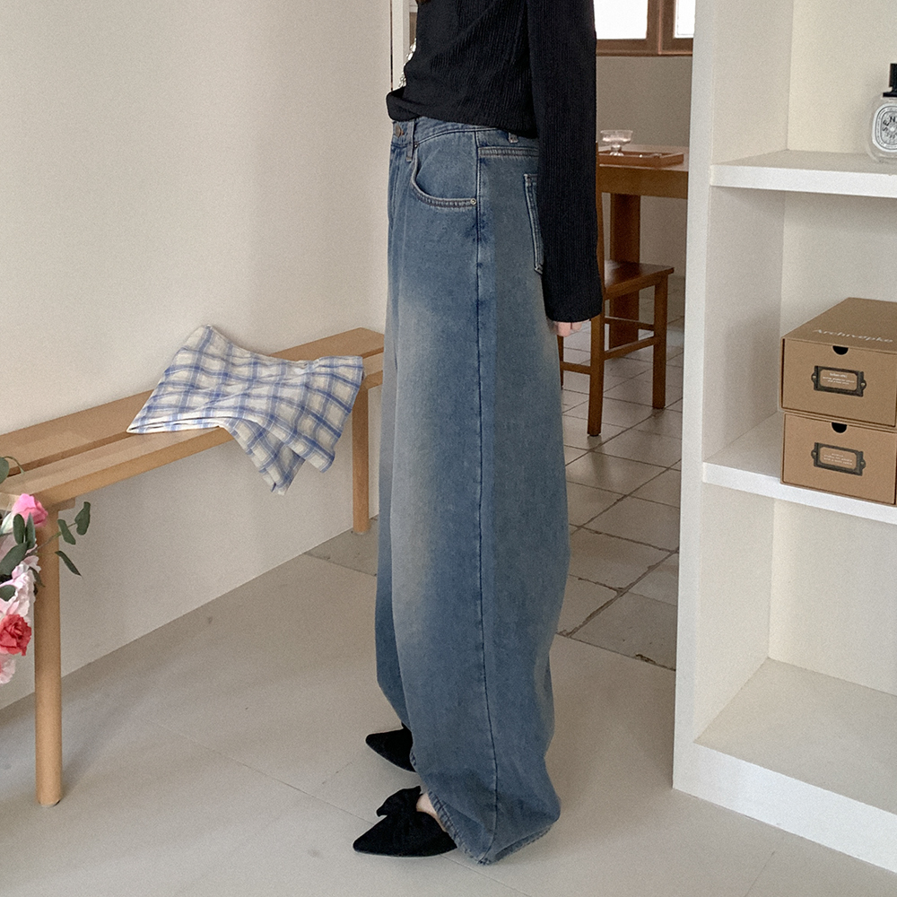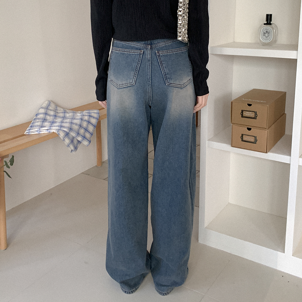 裏起毛ワイドデニムパンツ