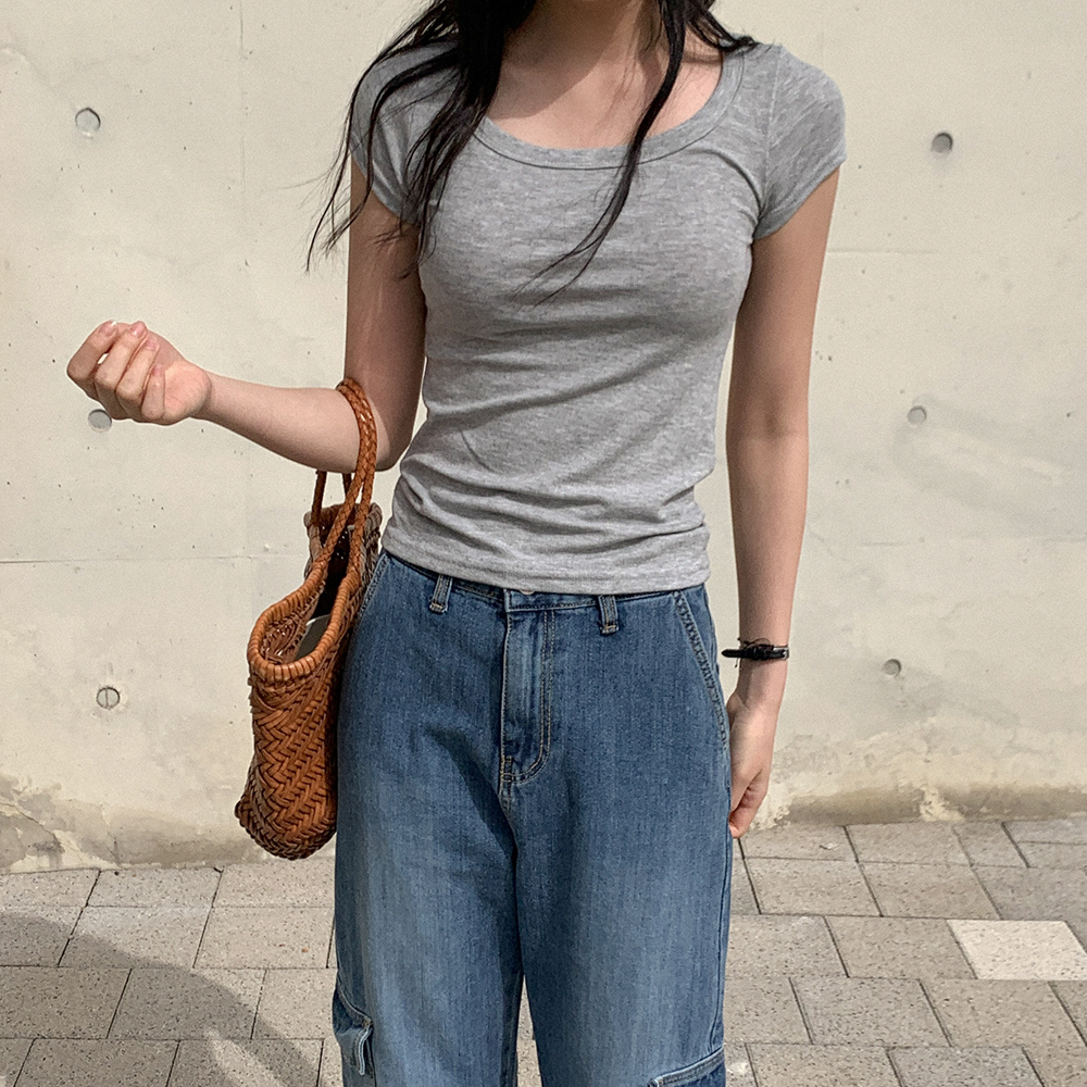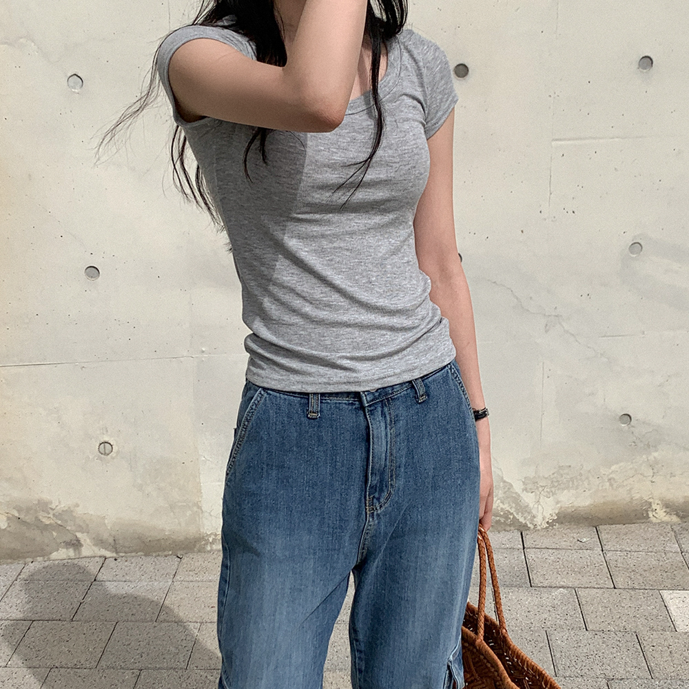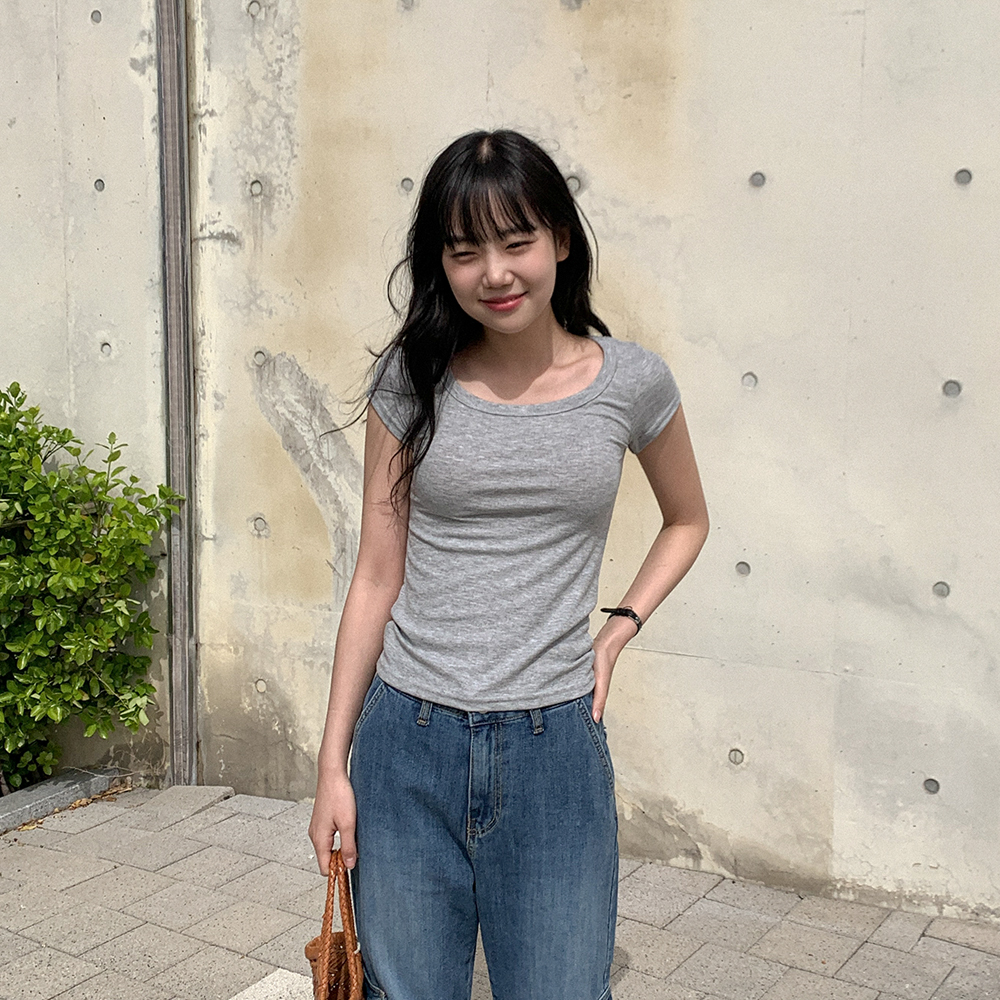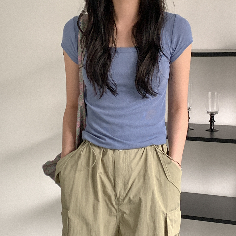 リブスクエアネック半袖Tシャツ