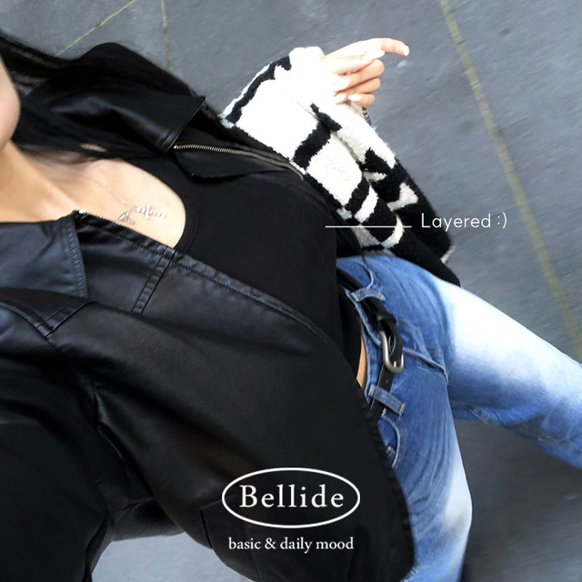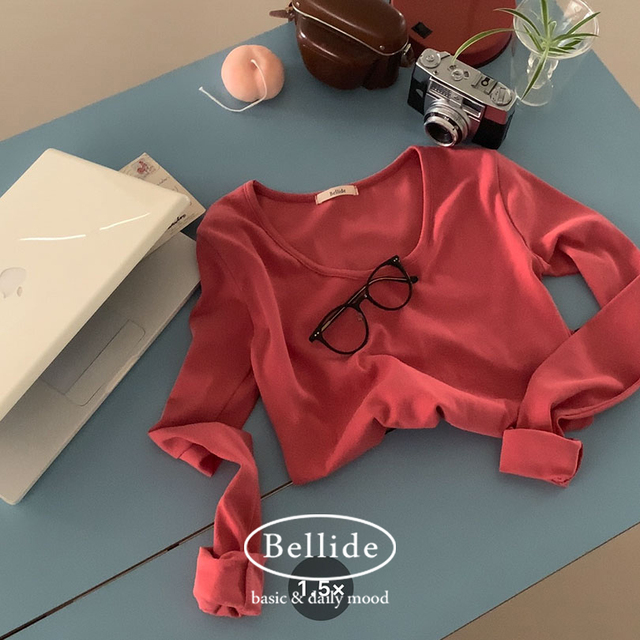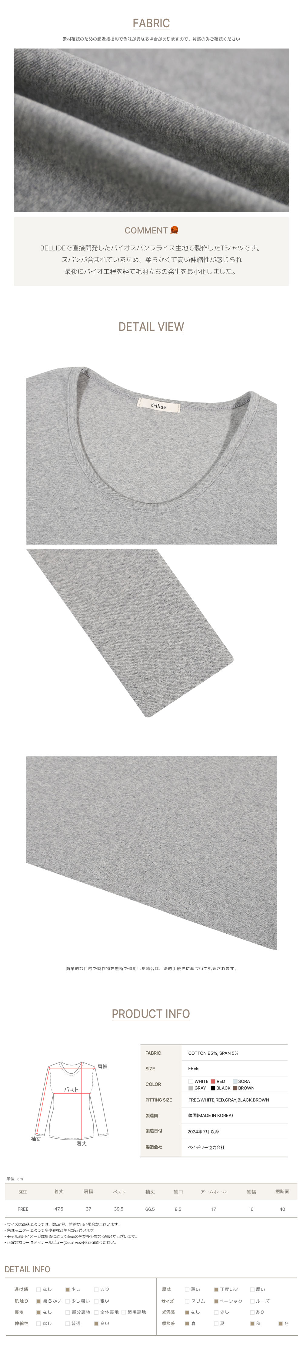 [BELLIDE MADE]ブリン、 スリムUネック長袖Tシャツ
